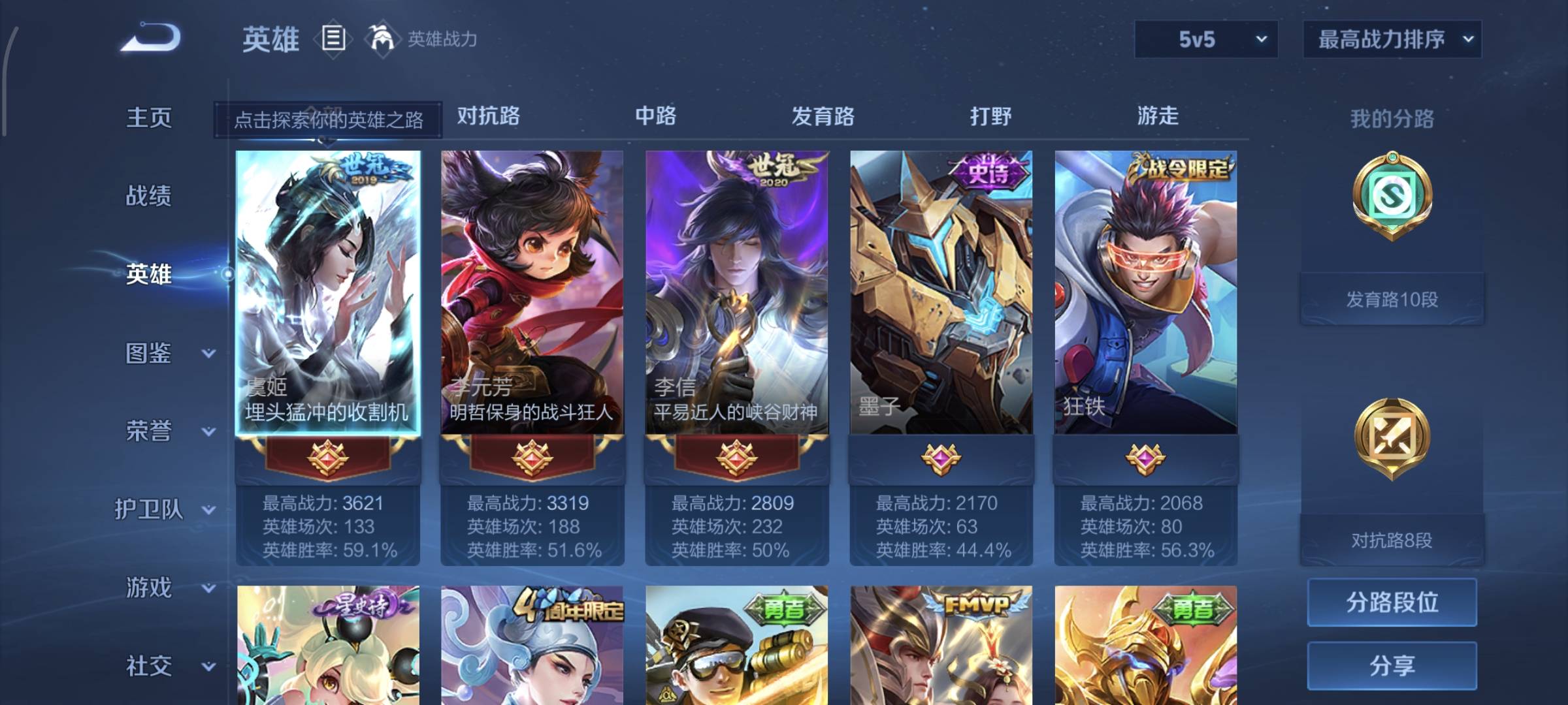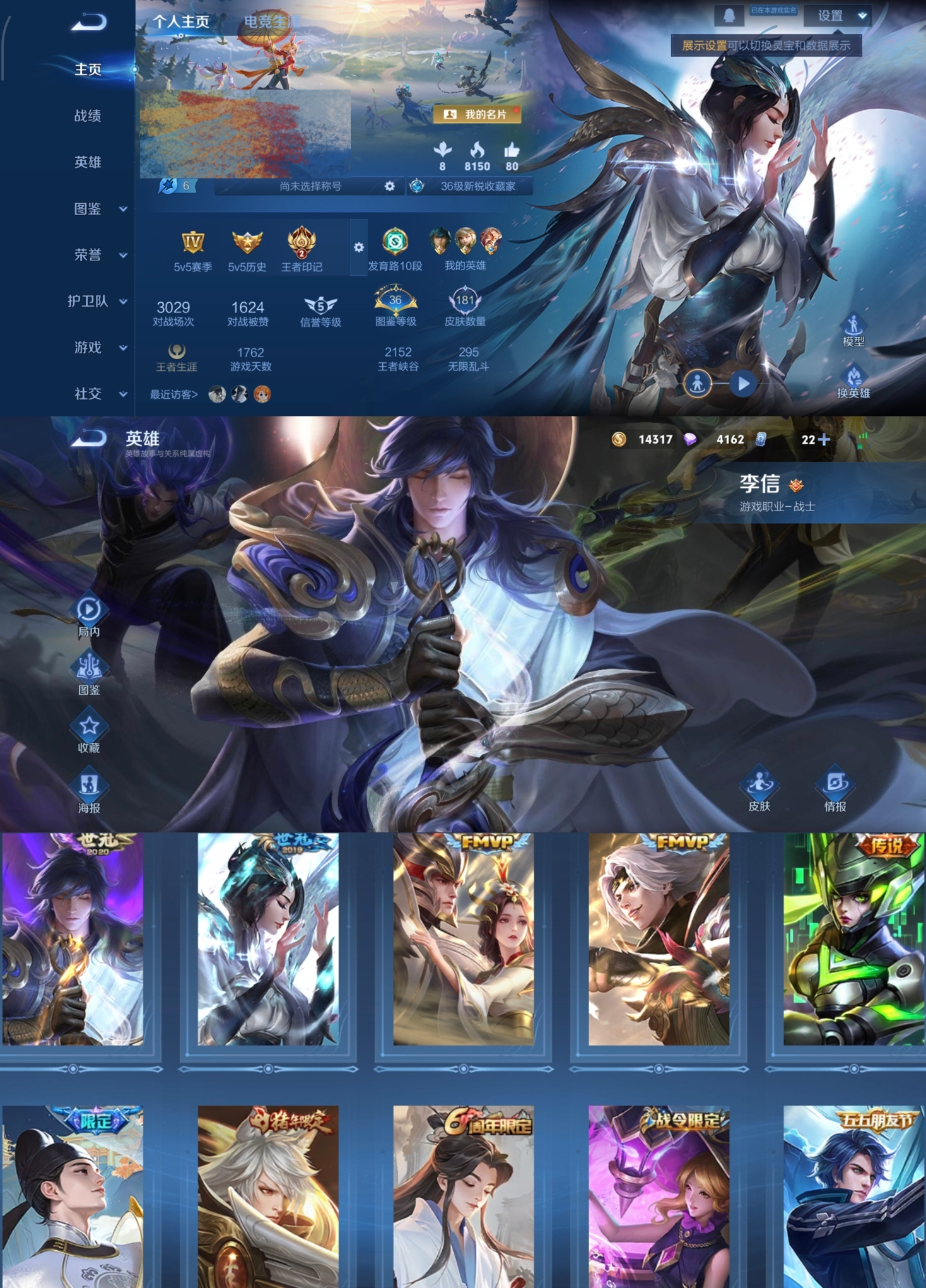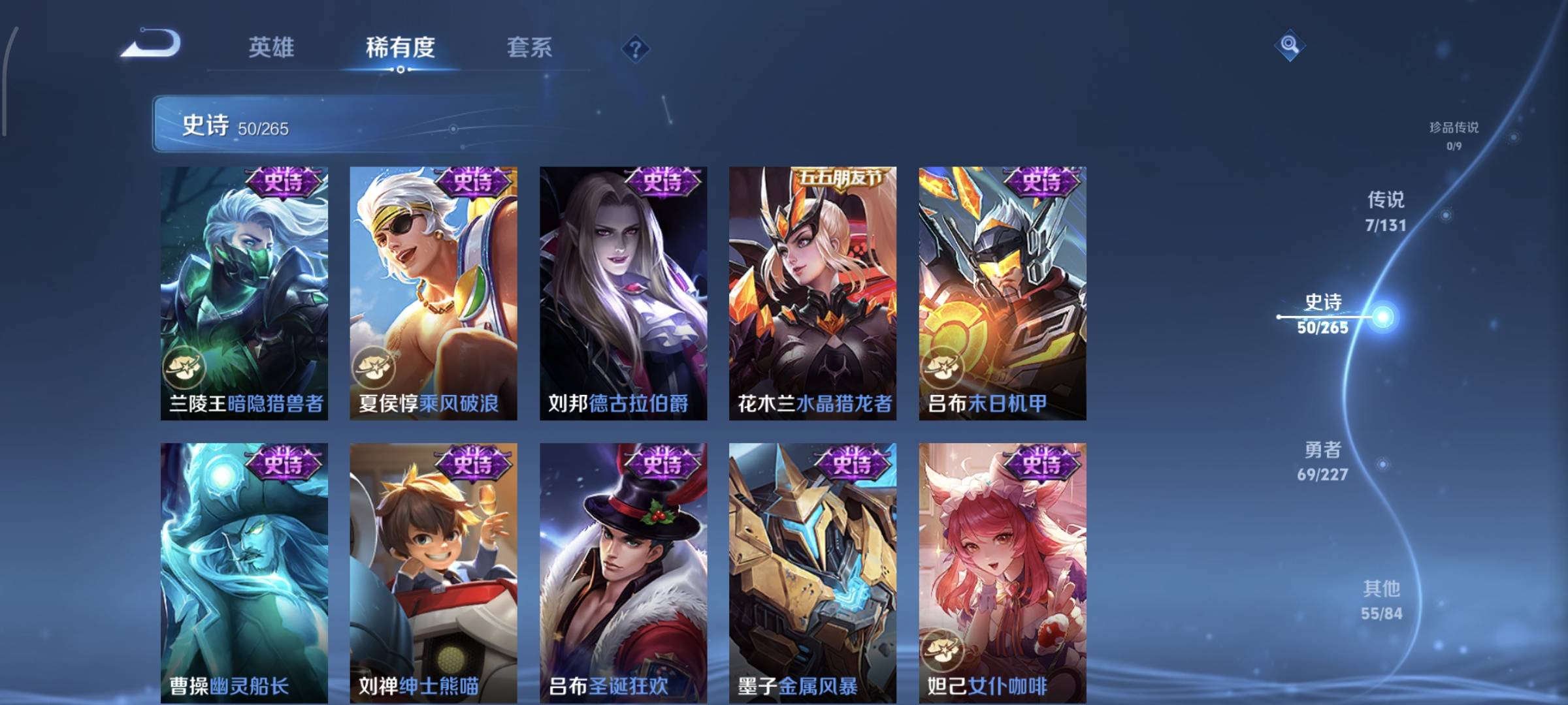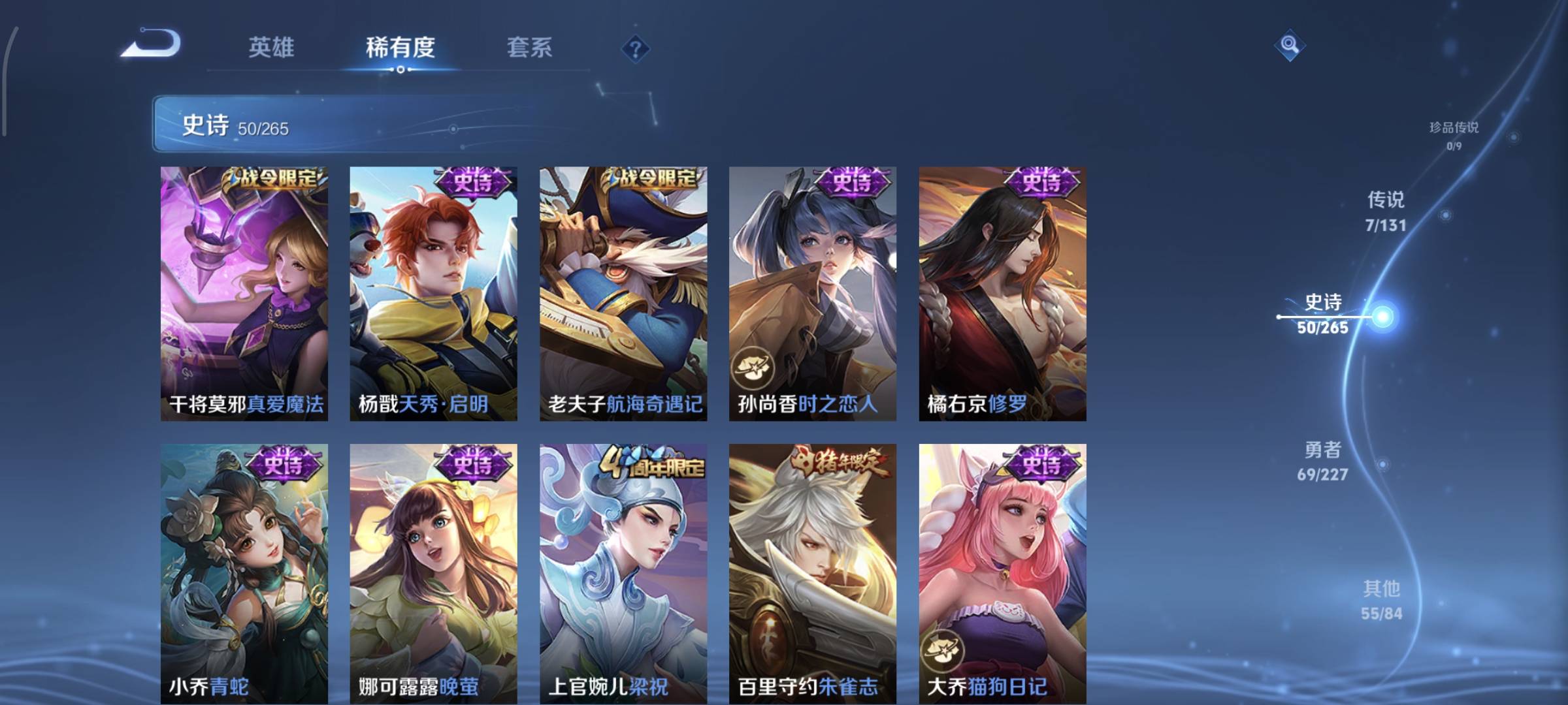 贵族等级:v7皮肤数:183传说品质7 生肖限定1 英雄数:123