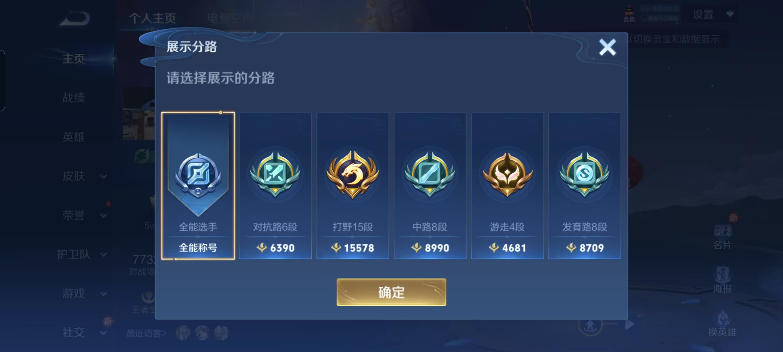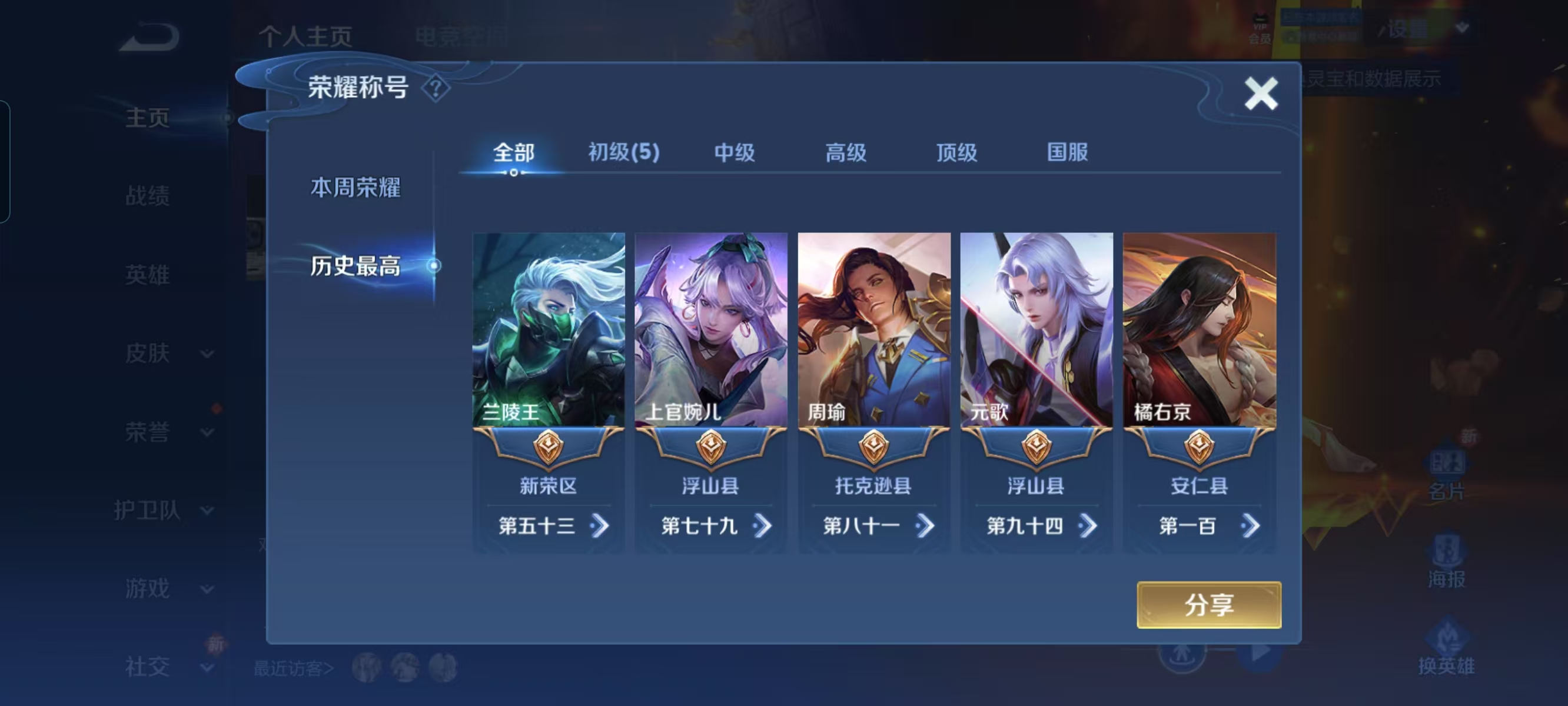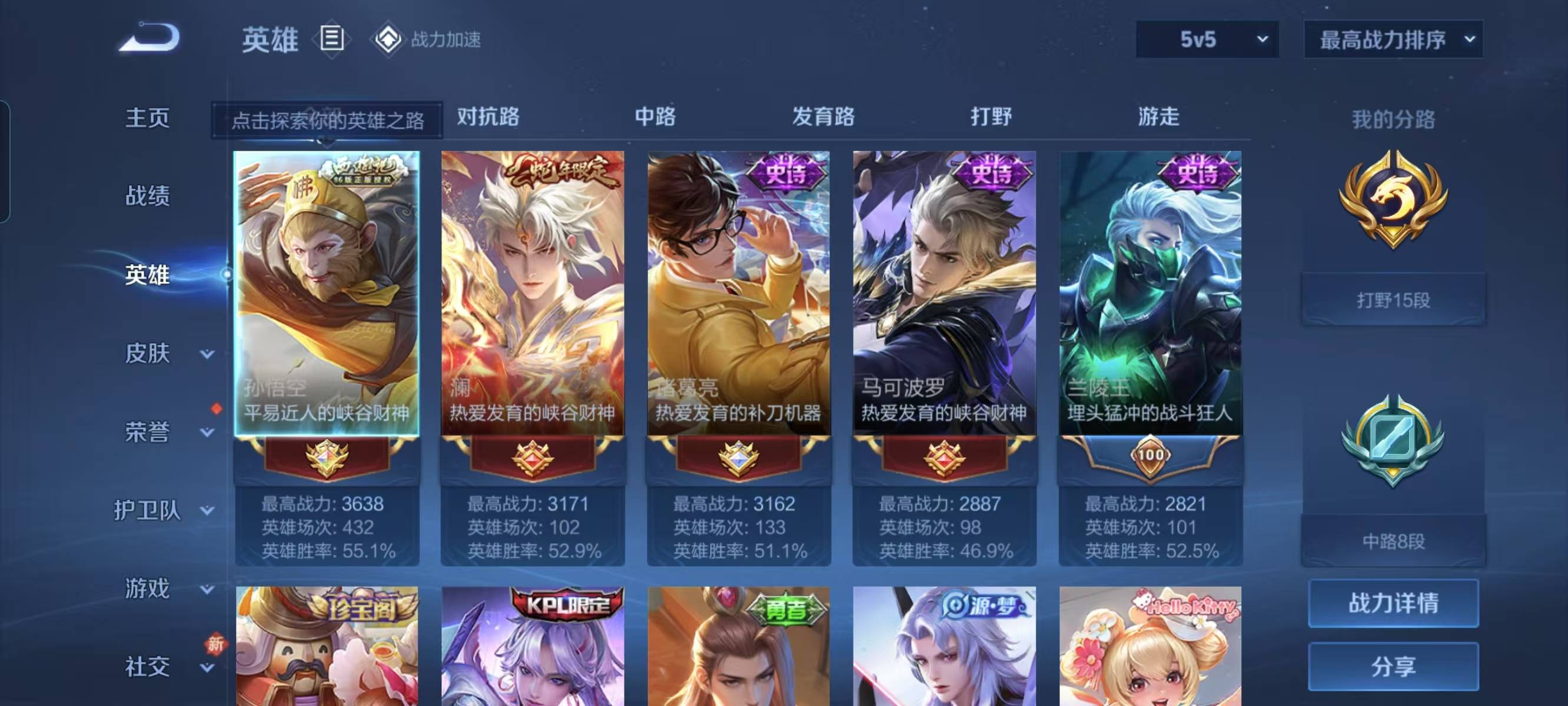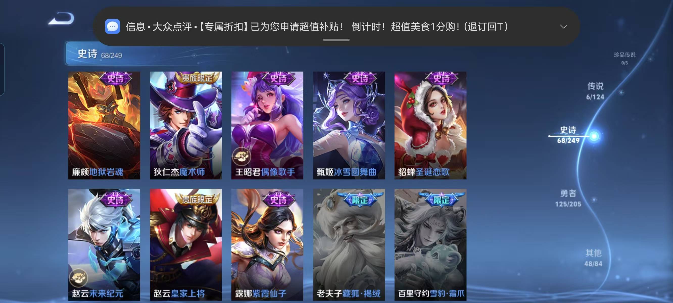贵族等级:v7皮肤数:247传说品质6 生肖限定6 情人节限定2 英雄数:121