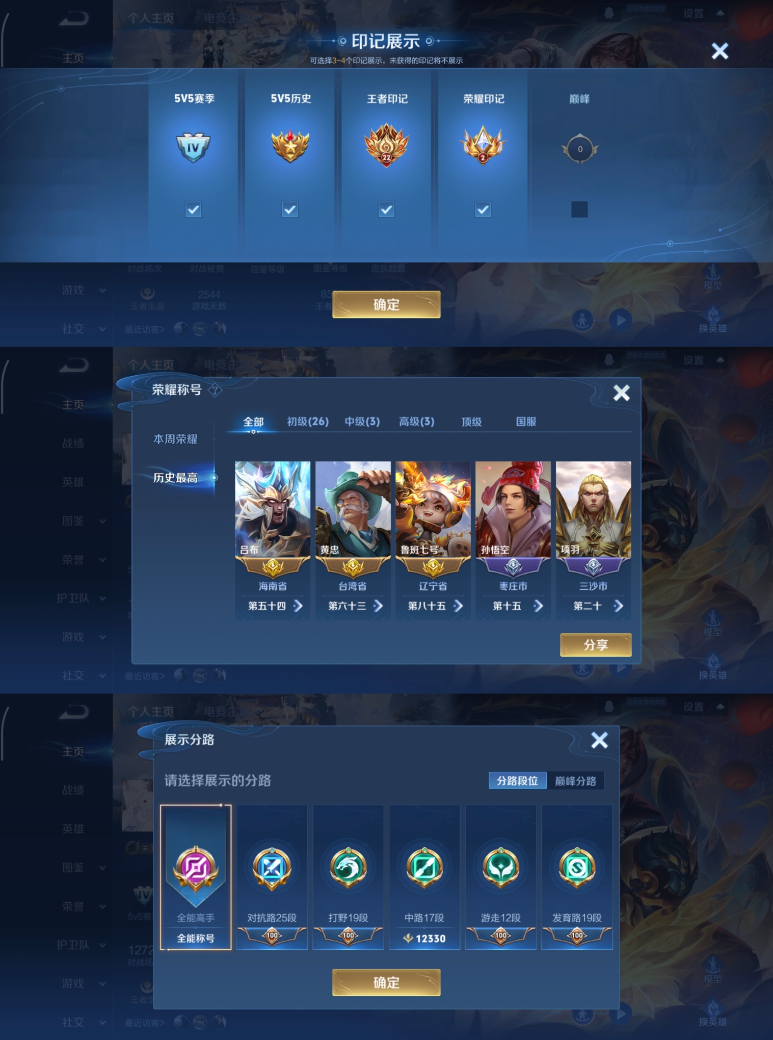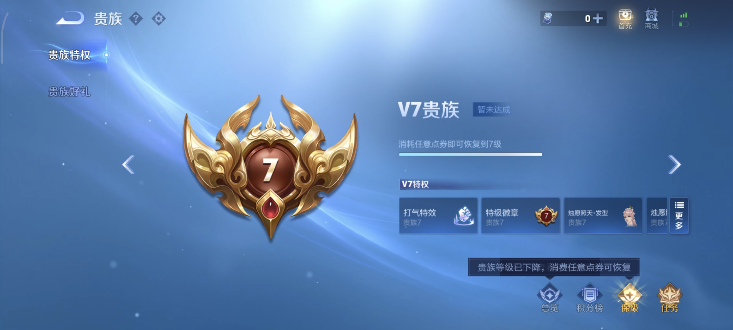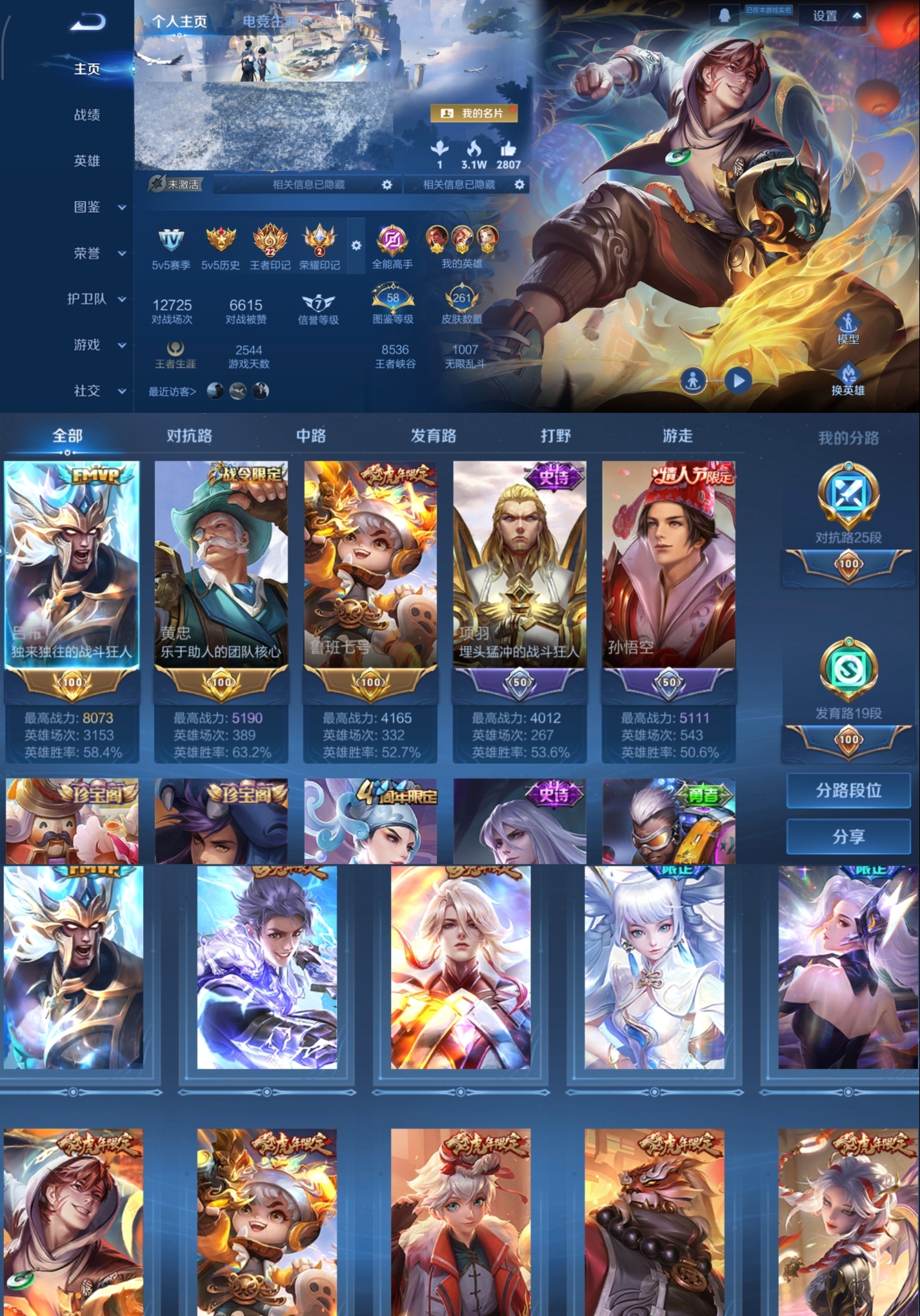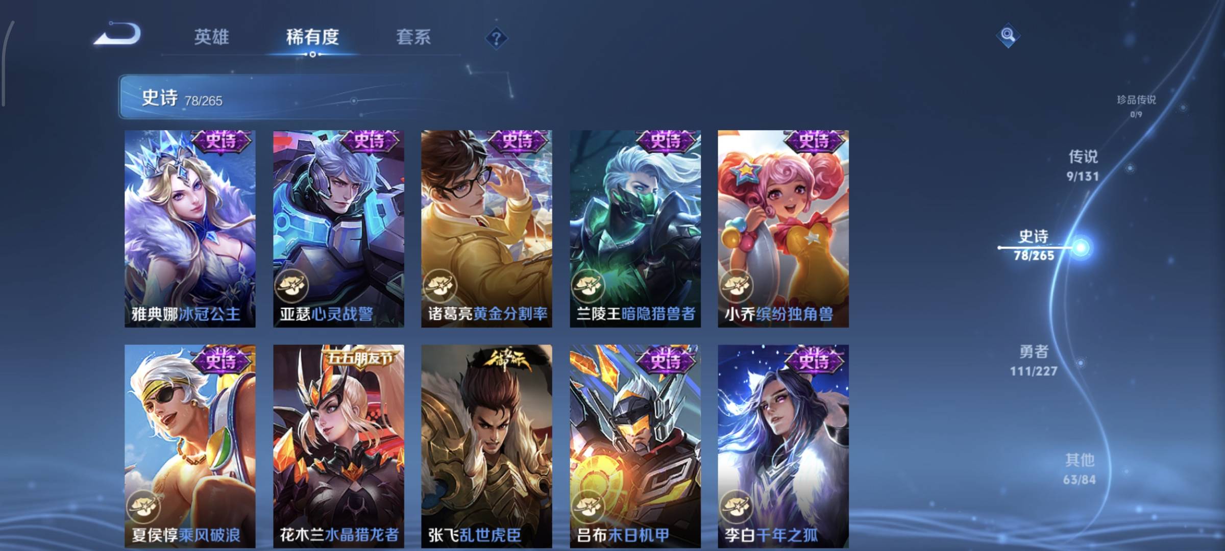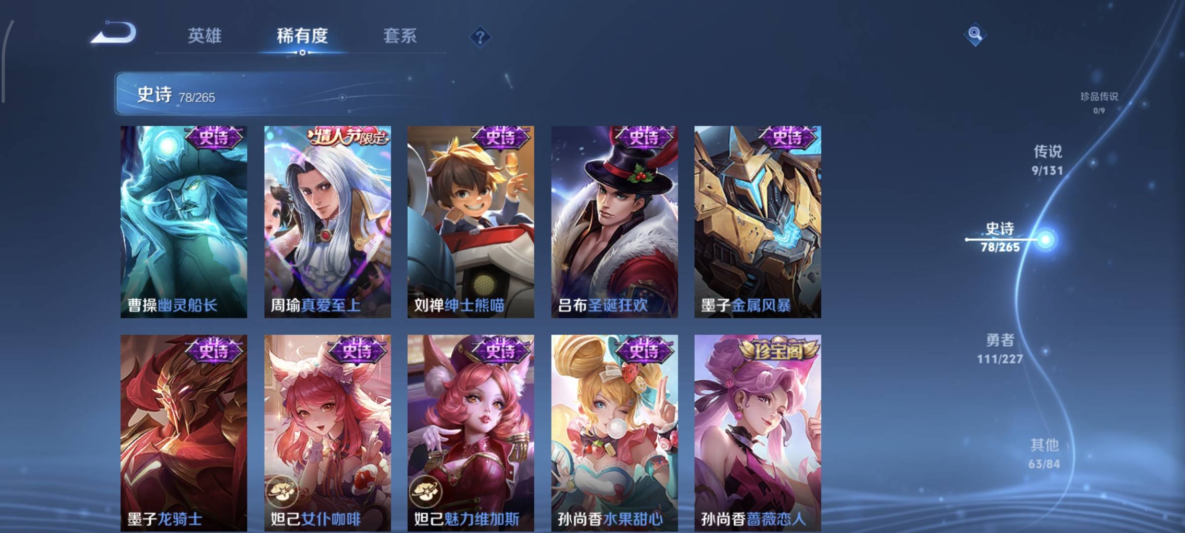 贵族等级:v7皮肤数:263情人节限定3 生肖限定9 传说品质9 英雄数:125