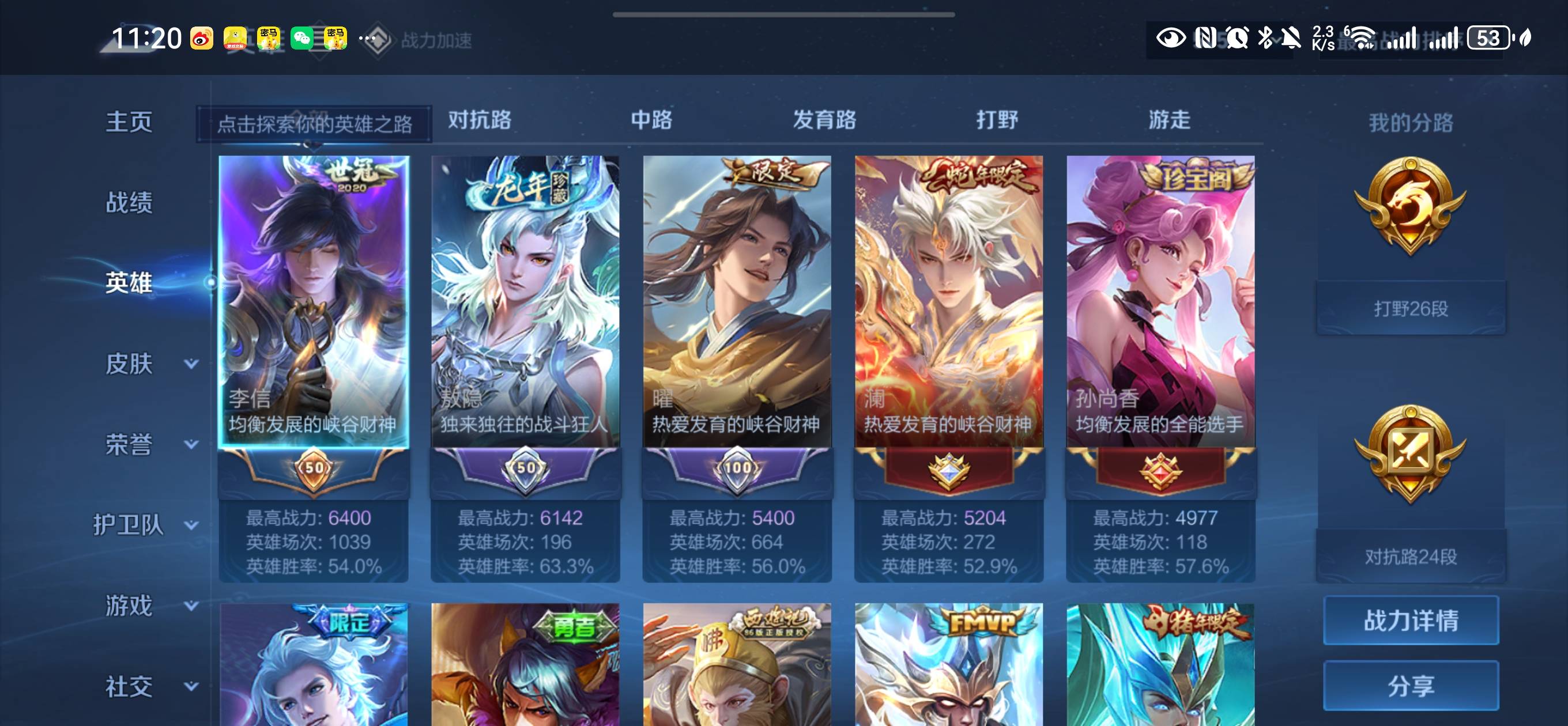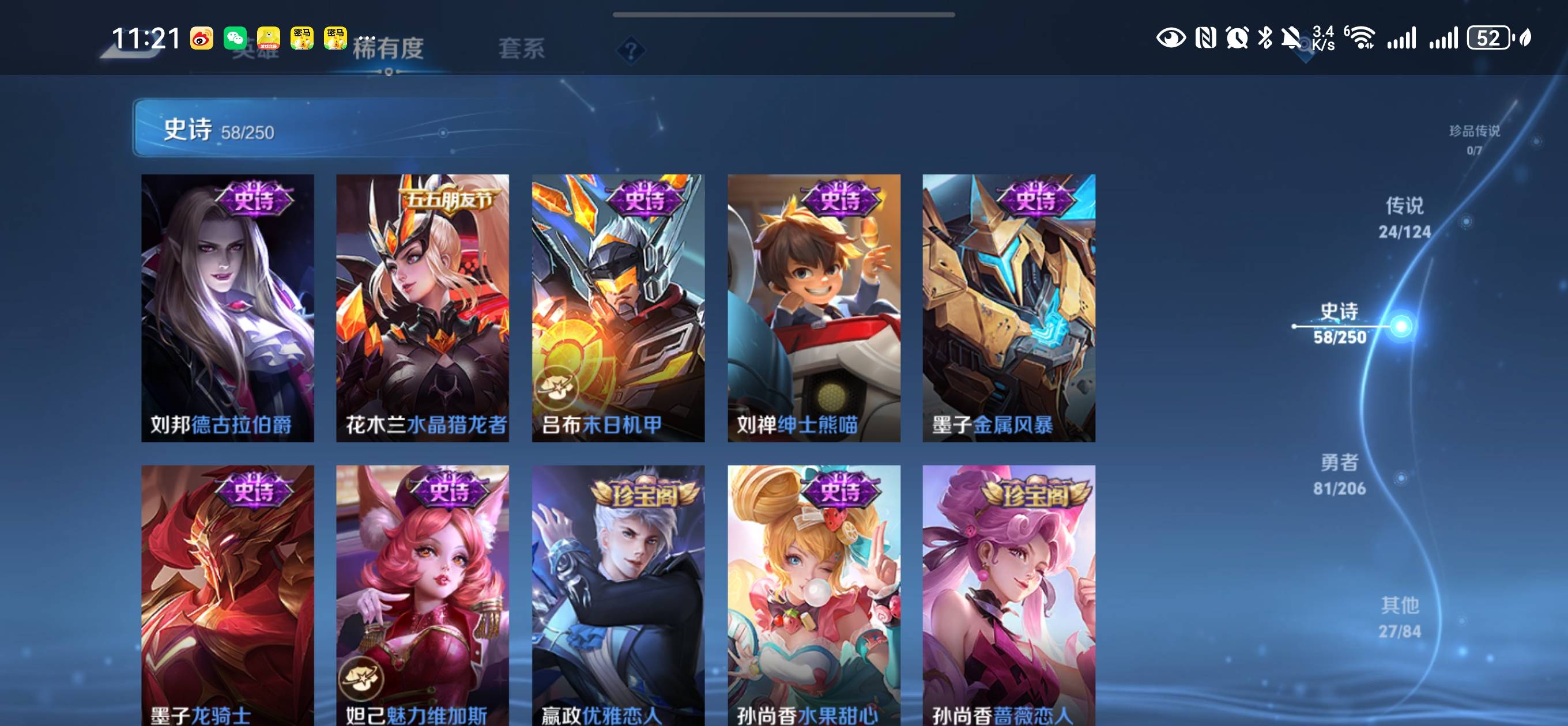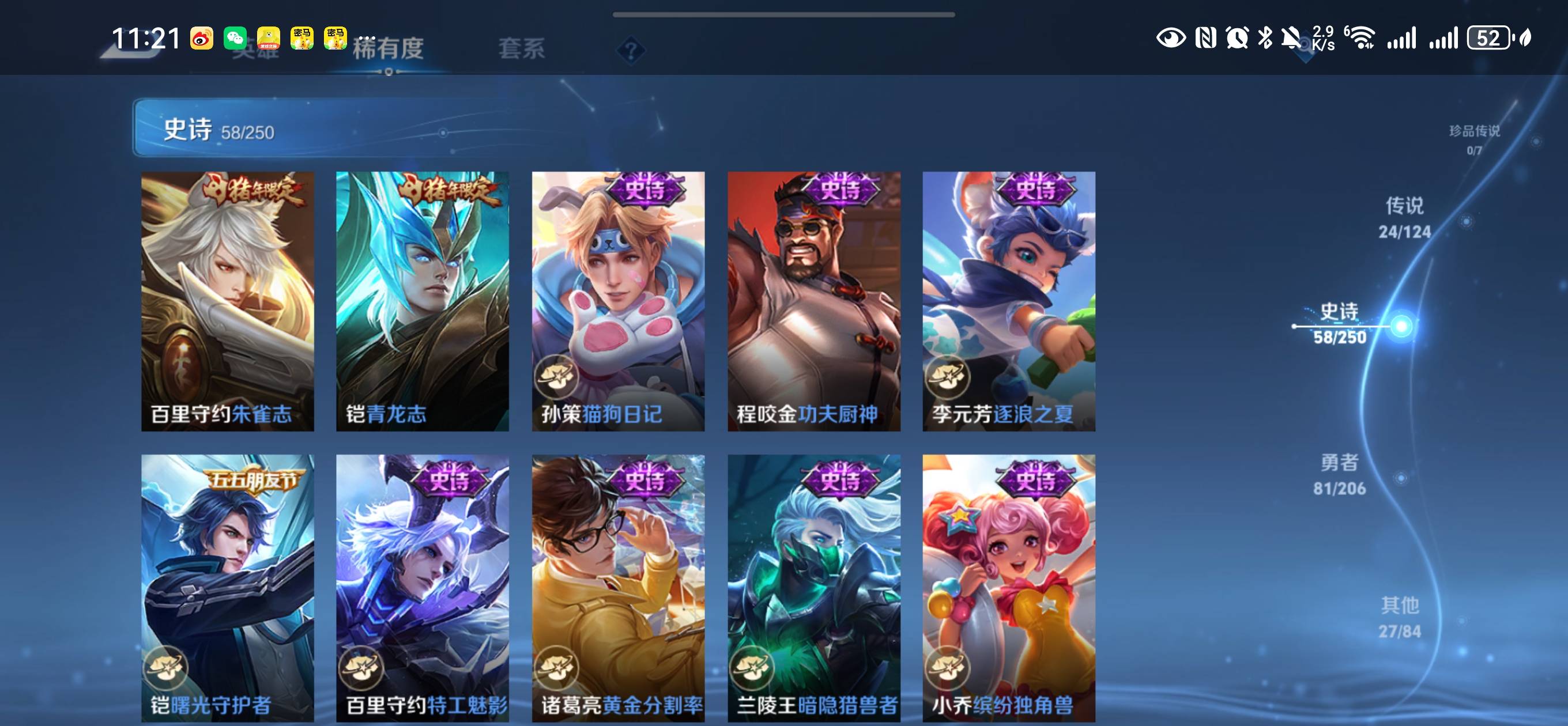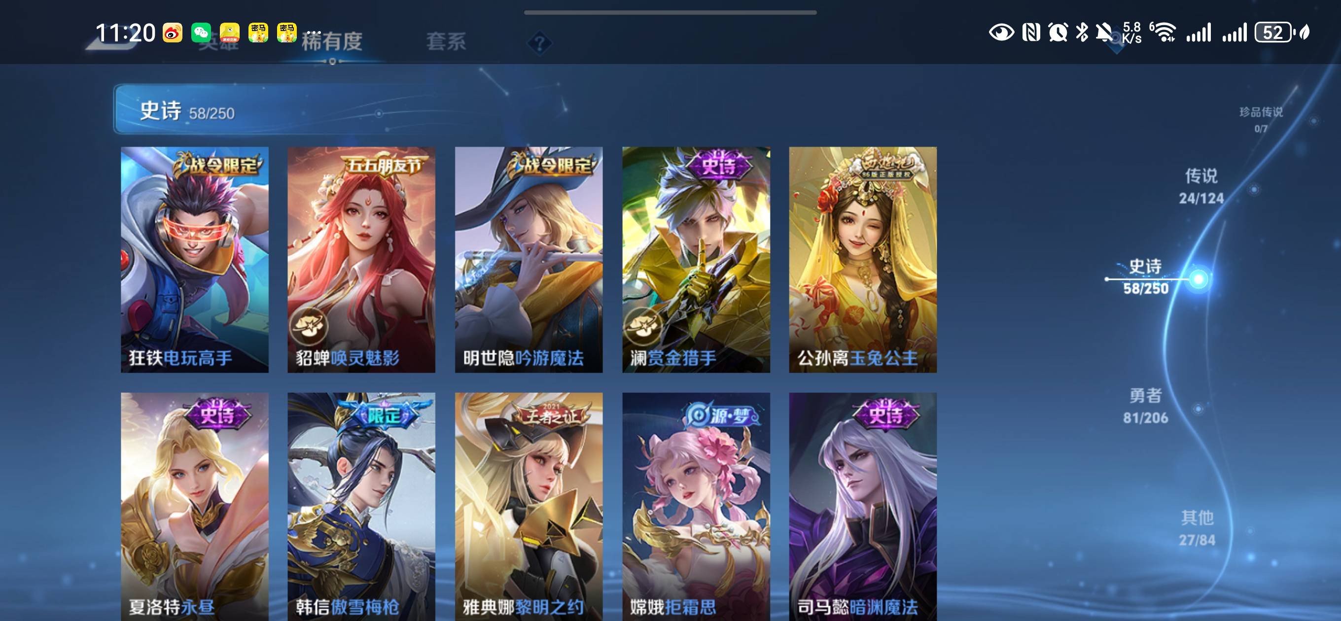 贵族等级:v8皮肤数:190传说品质24 生肖限定5 情人节限定1 英雄数:124