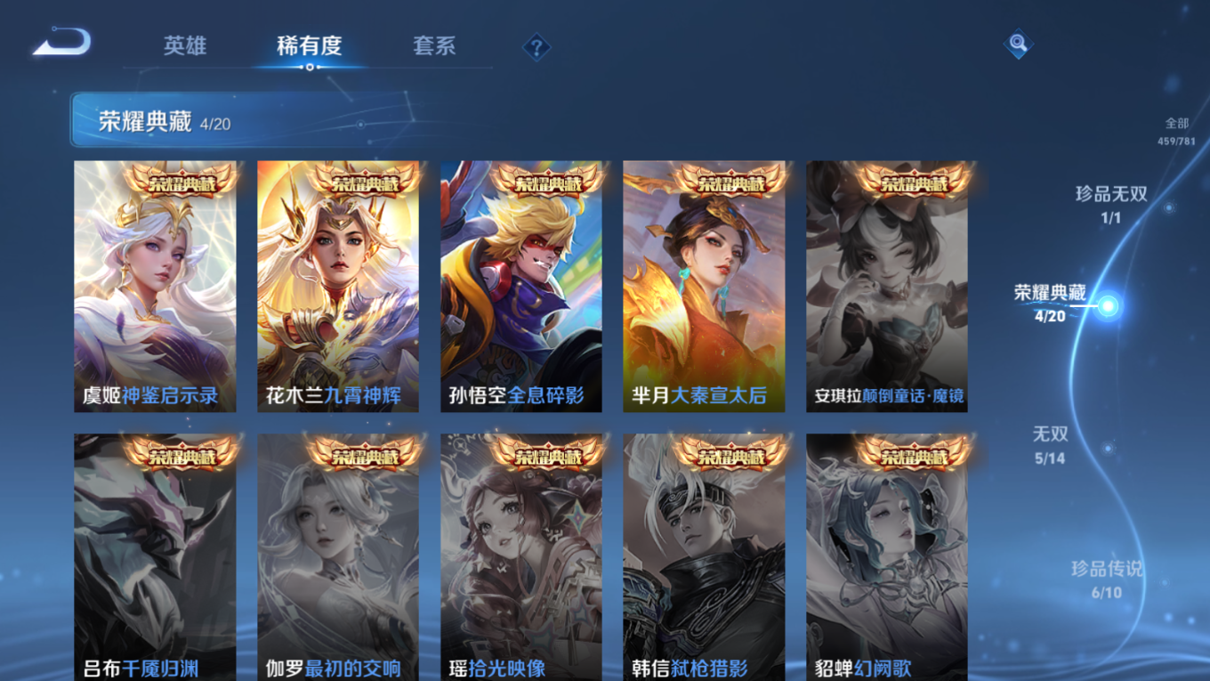 荣耀典藏_孙悟空_全息碎影荣耀典藏_花木兰_九霄神辉荣耀典藏_芈月_大秦宣太后荣耀典藏_虞姬_神鉴启示录