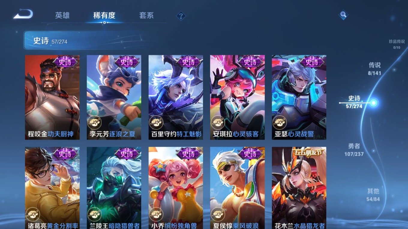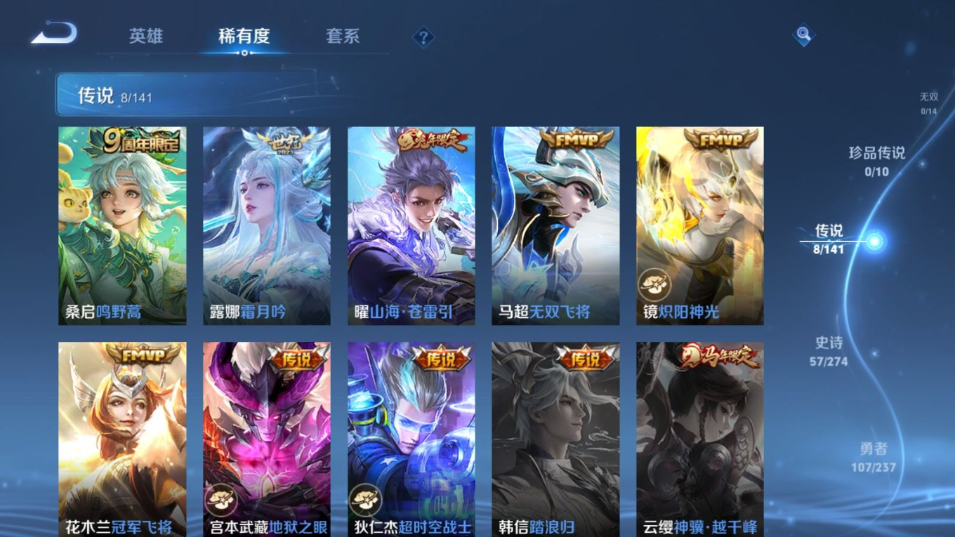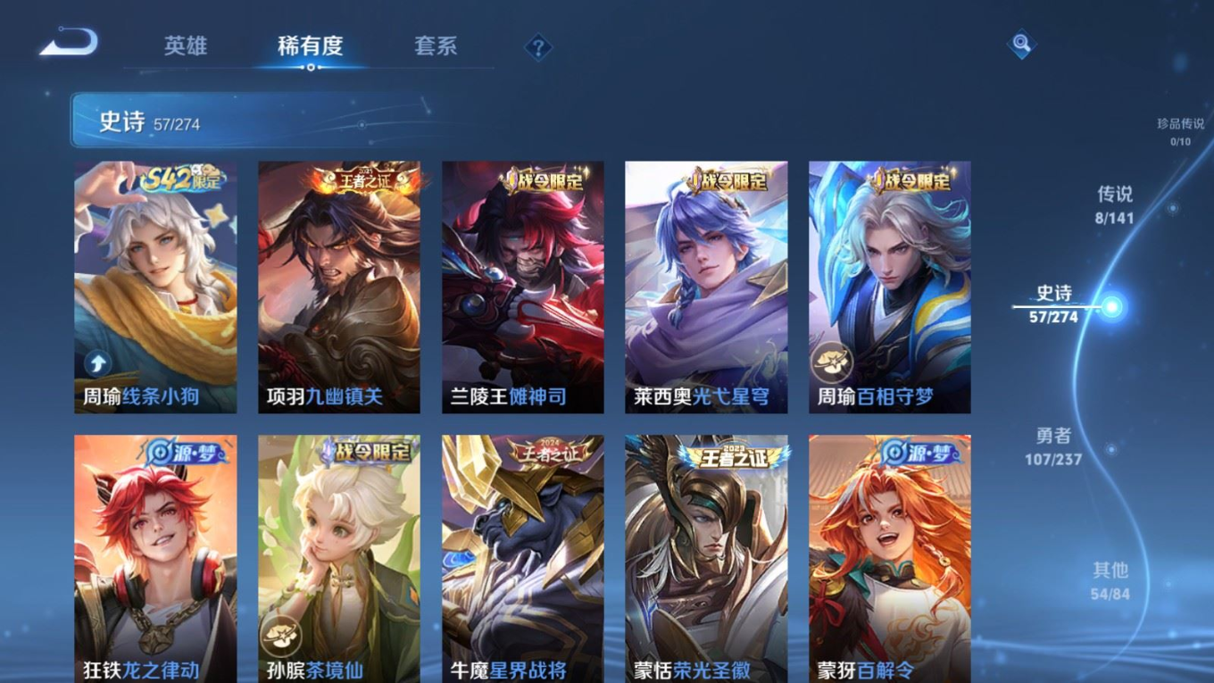 贵族等级:v7皮肤数:227情人节限定2 传说品质8 生肖限定2 荣耀典藏1 英雄数:126