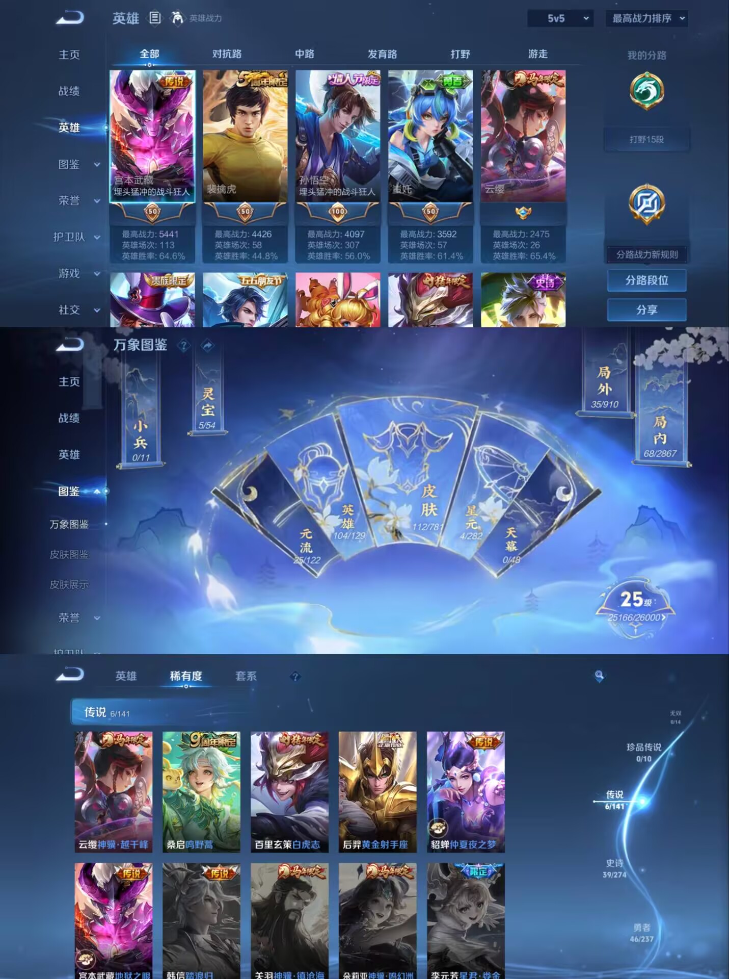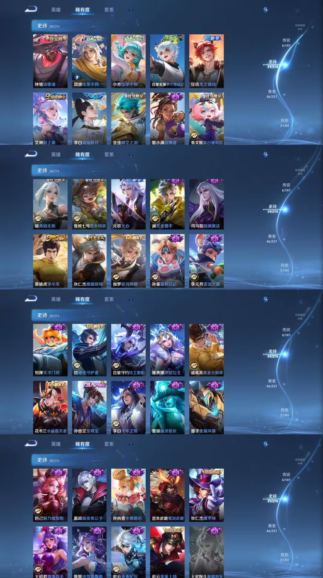 贵族等级:v7皮肤数:112传说品质6 情人节限定1 生肖限定2 英雄数:104