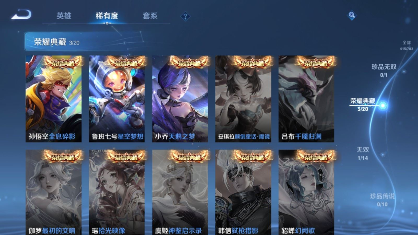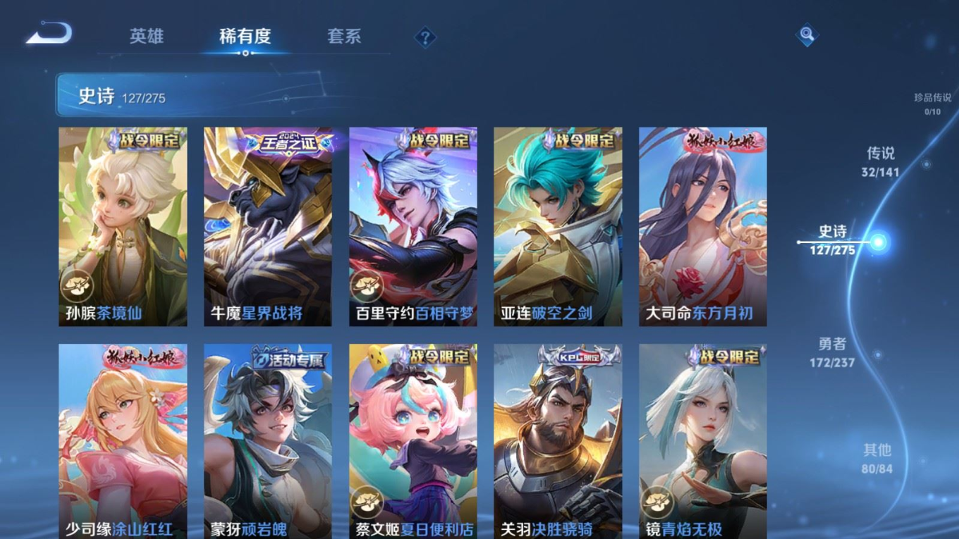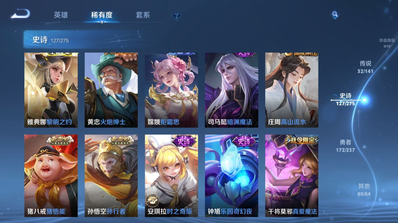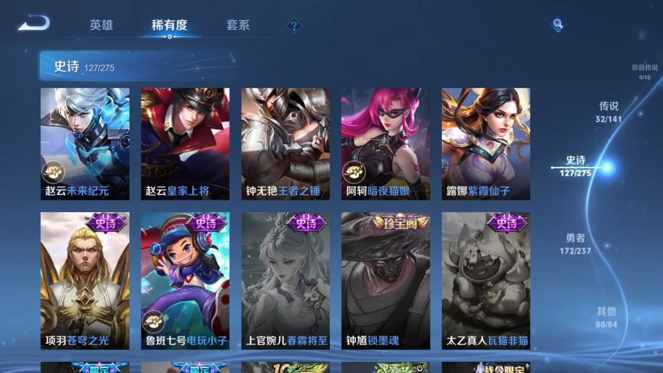 传说品质_后羿_黄金射手座传说品质_后羿_神树通天传说品质_娜可露露_前尘镜传说品质_澜_逐花归海传说品质_吕布_曦玄引传说品质_海月_金乌负日传说品质_武则天_海洋之心传说品质_干将莫邪_久胜战神传说品质_宫本武藏_地狱之眼传说品质_镜_炽阳神光传说品质_貂蝉_曦玄引传说品质_貂蝉_仲夏夜之梦传说品质_孙尚香_乘龙·问璇玑传说品质_孙尚香_异界灵契传说品质_桑启_鸣野蒿传说品质_露娜_启示之音传说品质_王昭君_长夜焕生传说品质_女娲_补天传说品质_妲己_愿照·众生和传说品质_云缨_幻光神枪传说品质_朵莉亚_心动手记传说品质_张飞_百相守梦传说品质_蔡文姬_花朝如约传说品质_曜_云鹰飞将传说品质_曜_李逍遥 传说品质_狄仁杰_超时空战士传说品质_虞姬_无限倾心传说品质_虞姬_云霓雀翎传说品质_虞姬_启明星使传说品质_李元芳_飞鸢探春传说品质_赵云_乘龙·铭钟鼎传说品质_赵云_淬星耀世