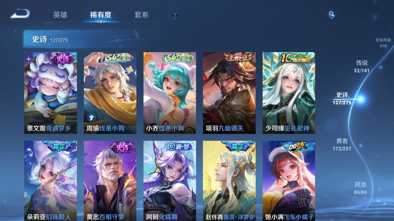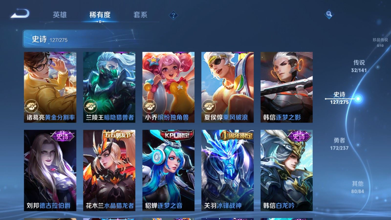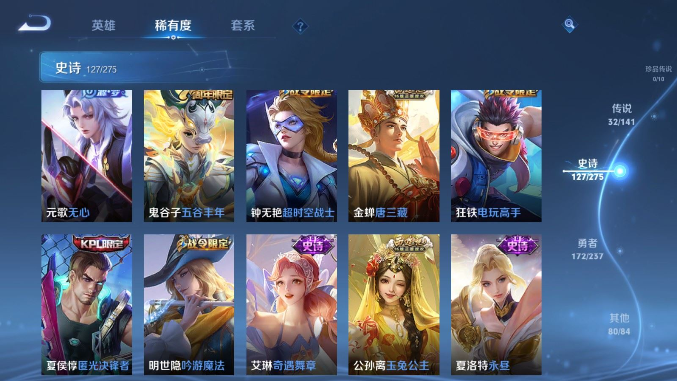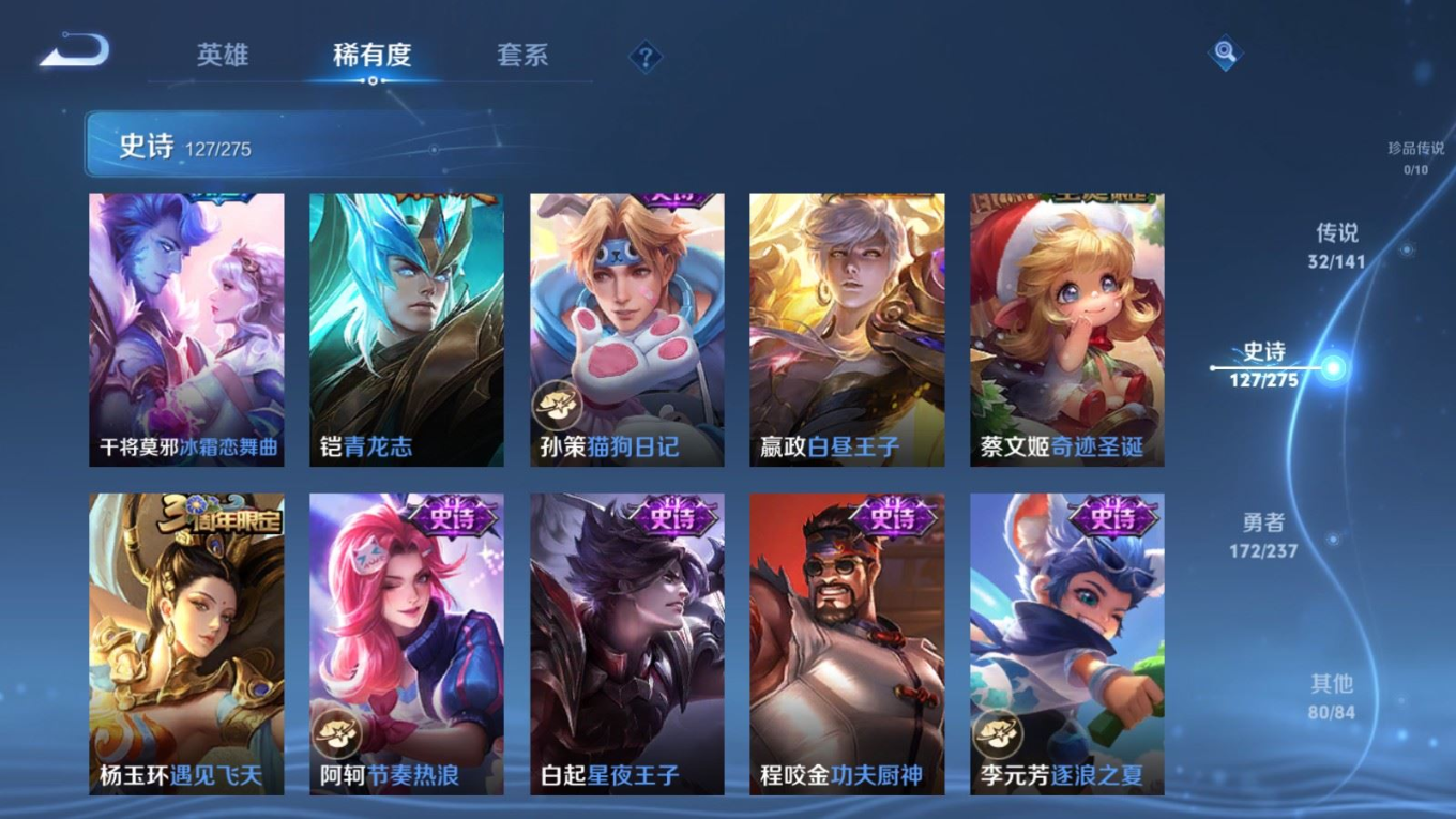 传说品质_后羿_黄金射手座传说品质_后羿_神树通天传说品质_娜可露露_前尘镜传说品质_澜_逐花归海传说品质_吕布_曦玄引传说品质_海月_金乌负日传说品质_武则天_海洋之心传说品质_干将莫邪_久胜战神传说品质_宫本武藏_地狱之眼传说品质_镜_炽阳神光传说品质_貂蝉_曦玄引传说品质_貂蝉_仲夏夜之梦传说品质_孙尚香_乘龙·问璇玑传说品质_孙尚香_异界灵契传说品质_桑启_鸣野蒿传说品质_露娜_启示之音传说品质_王昭君_长夜焕生传说品质_女娲_补天传说品质_妲己_愿照·众生和传说品质_云缨_幻光神枪传说品质_朵莉亚_心动手记传说品质_张飞_百相守梦传说品质_蔡文姬_花朝如约传说品质_曜_云鹰飞将传说品质_曜_李逍遥 传说品质_狄仁杰_超时空战士传说品质_虞姬_无限倾心传说品质_虞姬_云霓雀翎传说品质_虞姬_启明星使传说品质_李元芳_飞鸢探春传说品质_赵云_乘龙·铭钟鼎传说品质_赵云_淬星耀世