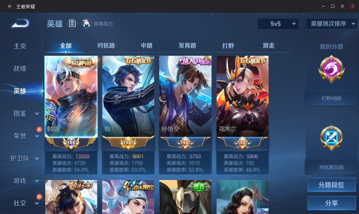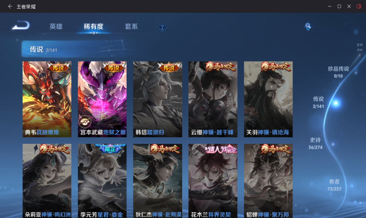 贵族等级:v6皮肤数:146传说品质2 情人节限定2 荣耀典藏1 英雄数:126