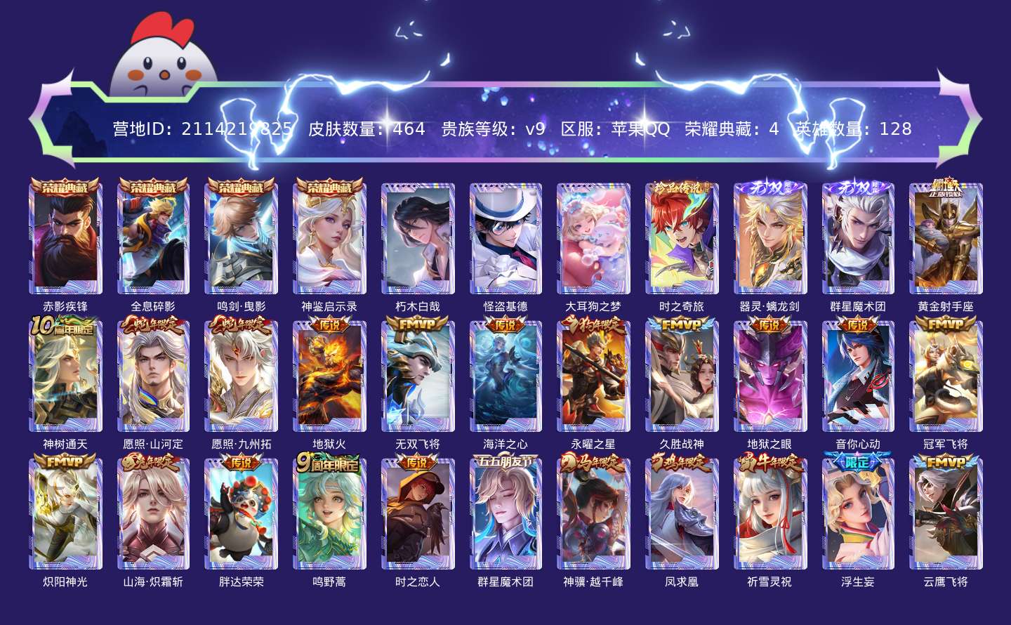 传说品质_后羿_黄金射手座传说品质_后羿_神树通天传说品质_司空震_愿照·山河定传说品质_澜_愿照·九州拓传说品质_孙悟空_地狱火传说品质_马超_无双飞将传说品质_武则天_海洋之心传说品质_杨戬_永曜之星传说品质_干将莫邪_久胜战神传说品质_宫本武藏_地狱之眼传说品质_周瑜_音你心动传说品质_花木兰_冠军飞将传说品质_镜_炽阳神光传说品质_李信_山海·炽霜斩传说品质_梦奇_胖达荣荣传说品质_桑启_鸣野蒿传说品质_刘备_时之恋人传说品质_云中君_群星魔术团传说品质_云缨_神骥·越千峰传说品质_李白_凤求凰传说品质_公孙离_祈雪灵祝传说品质_夏洛特_浮生妄传说品质_曜_云鹰飞将传说品质_孙策_末日机甲传说品质_达摩_黄金狮子座传说品质_铠_冥王哈迪斯传说品质_虞姬_启明星使传说品质_裴擒虎_寅虎·赤拳