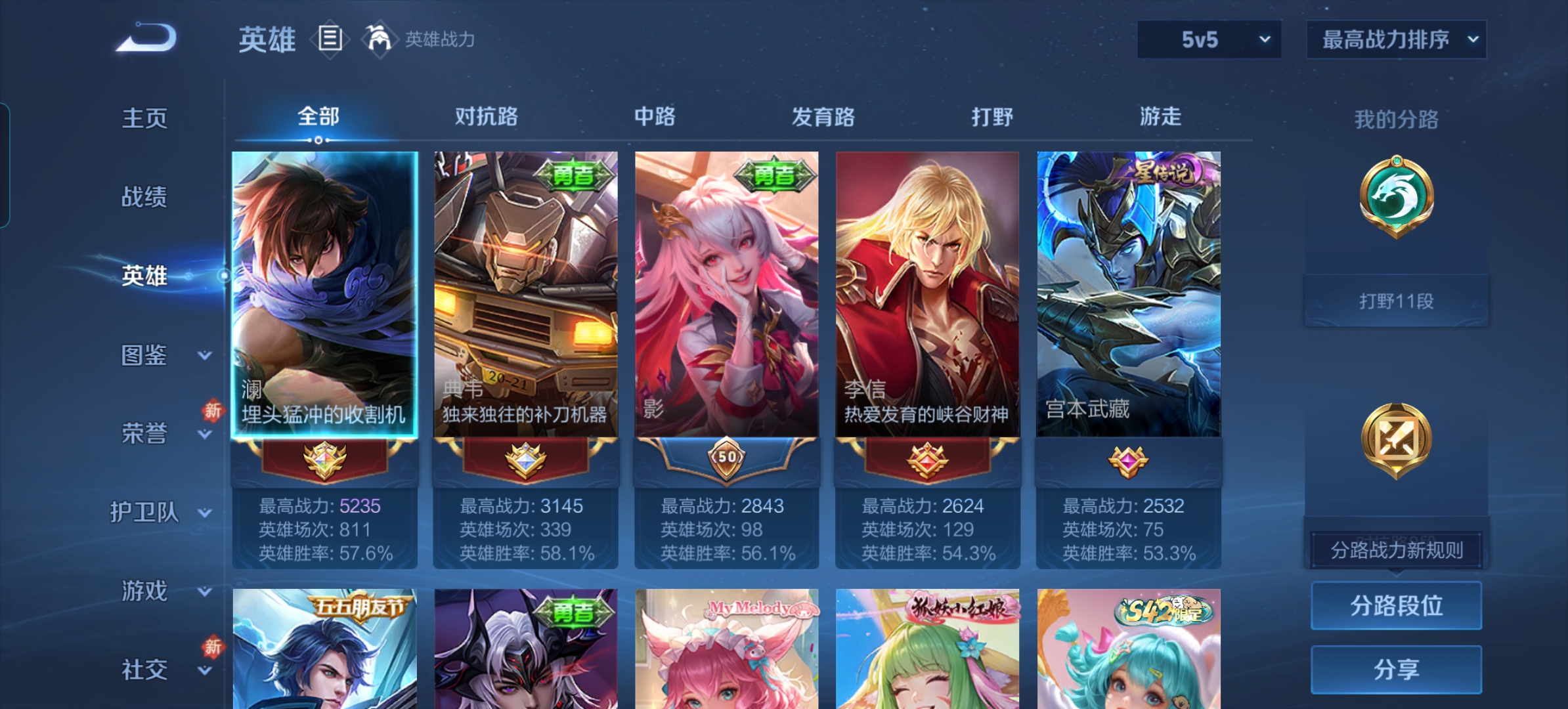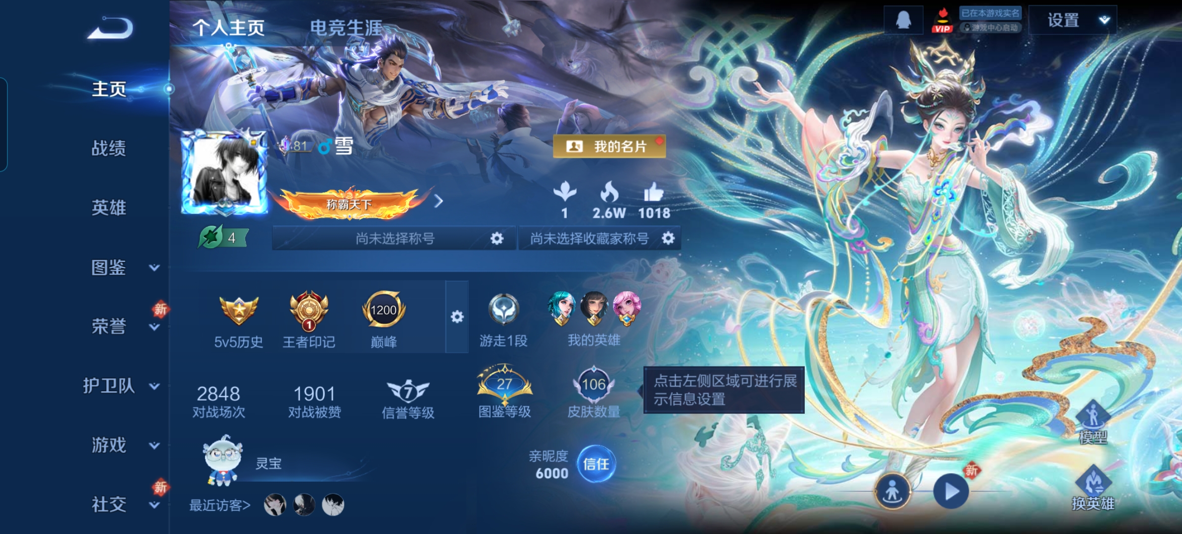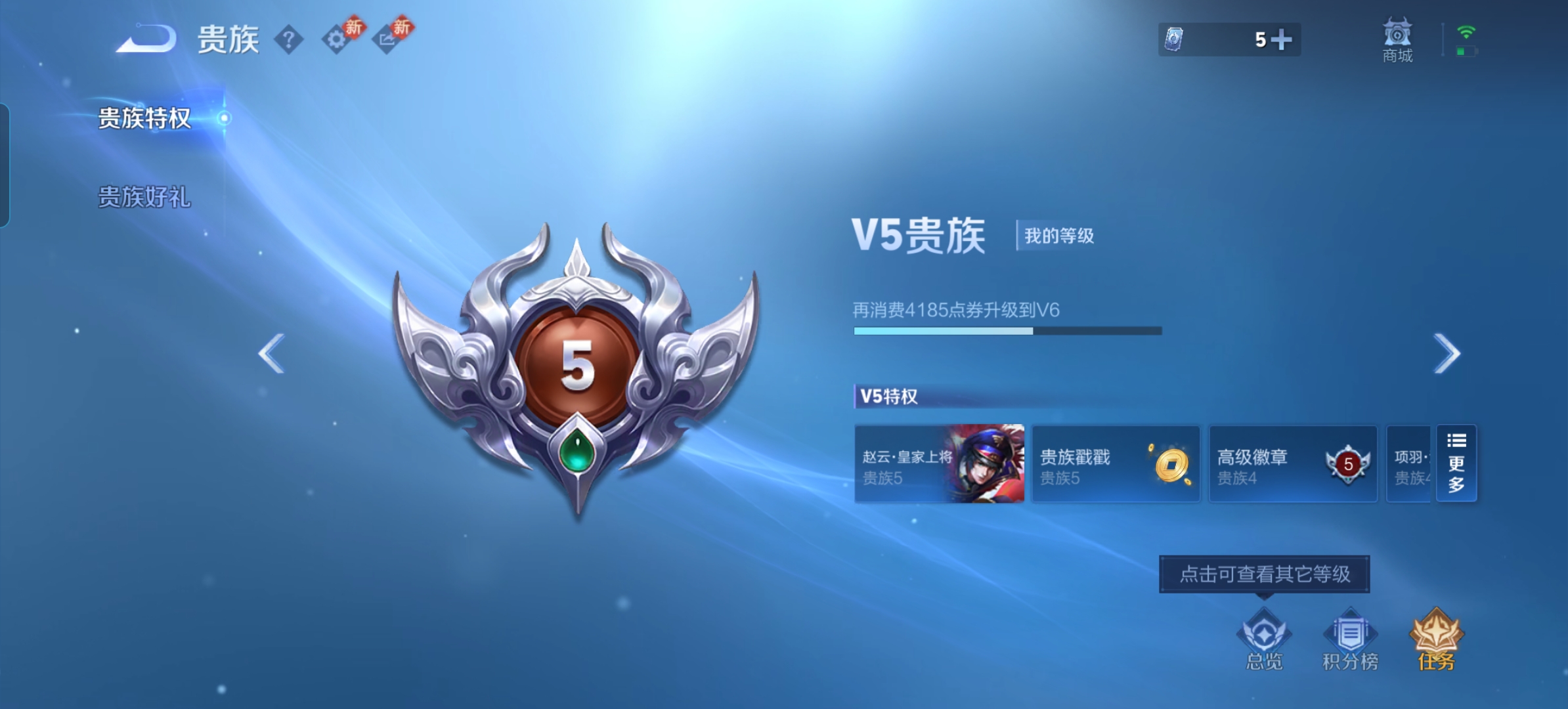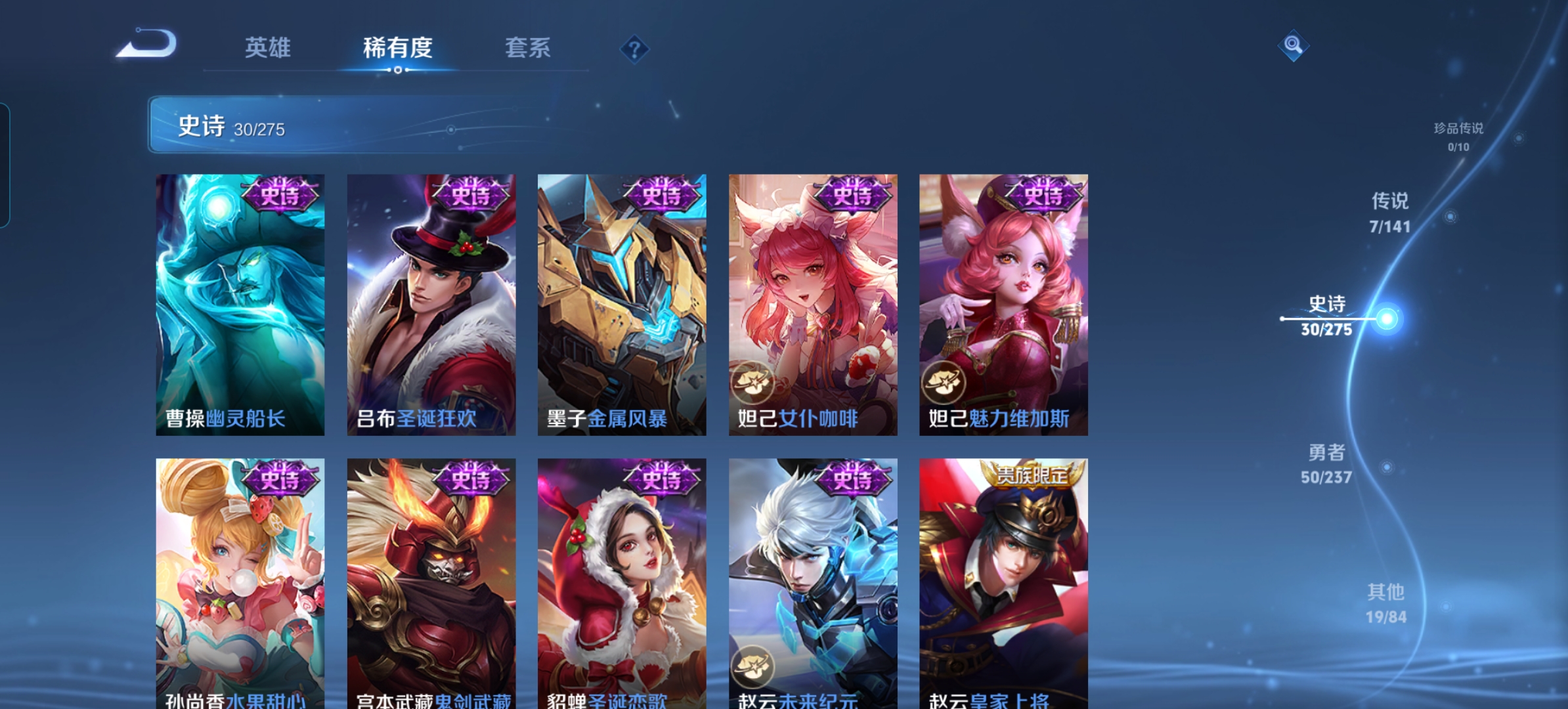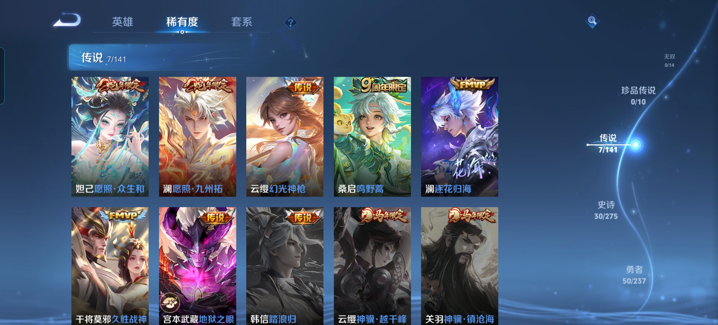 贵族等级:v5皮肤数:106传说品质7 生肖限定2 英雄数:120