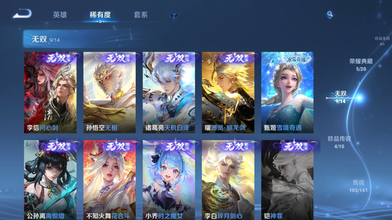 无双_诸葛亮_天机白泽无双_孙悟空_无相无双_不知火舞_花合斗无双_李信_问心剑无双_小乔_时之魔女无双_李白_碎月剑心无双_甄姬_雪境奇遇无双_公孙离_离恨烟无双_曜_器灵·螭龙剑