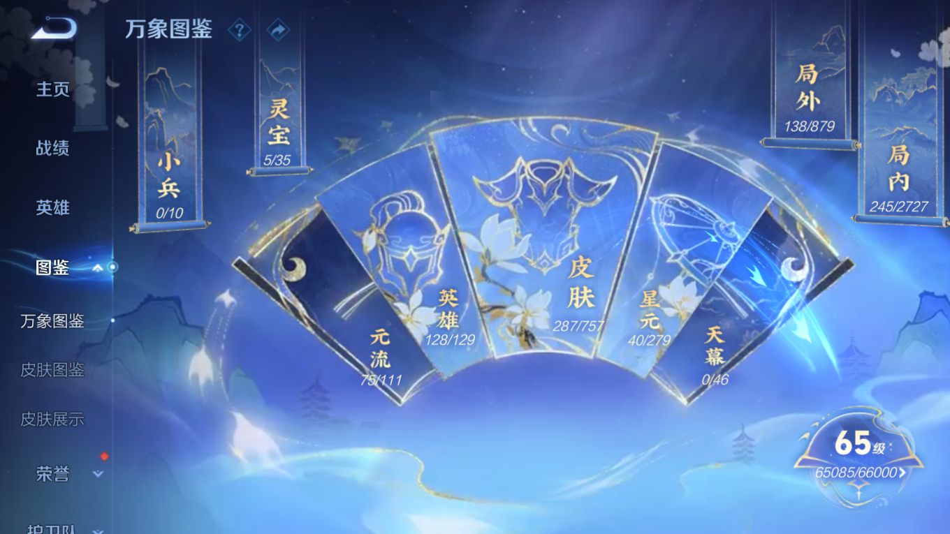 贵族等级:v8皮肤数:288传说品质17 生肖限定9 珍品传说2 荣耀典藏1 英雄数:128