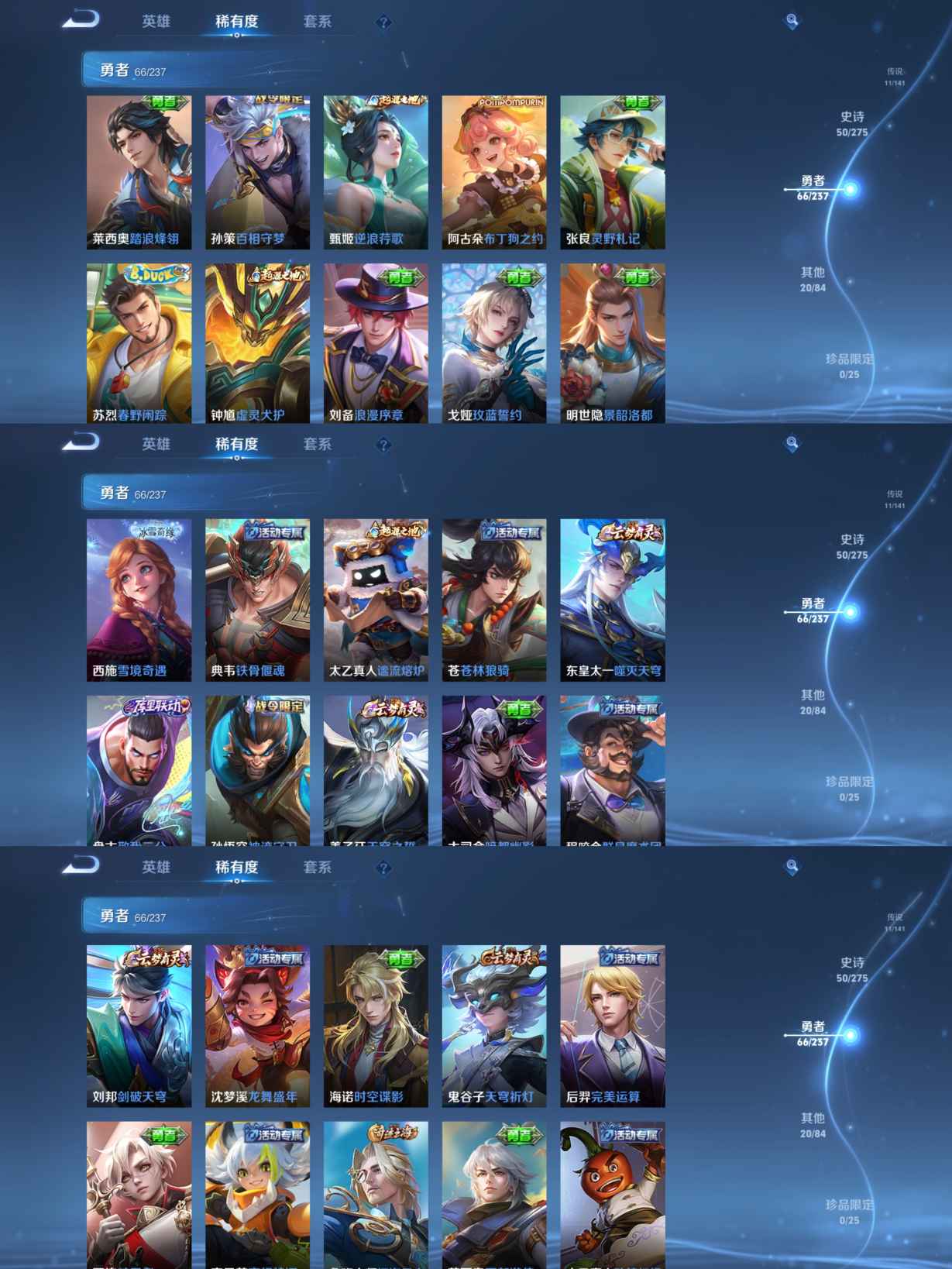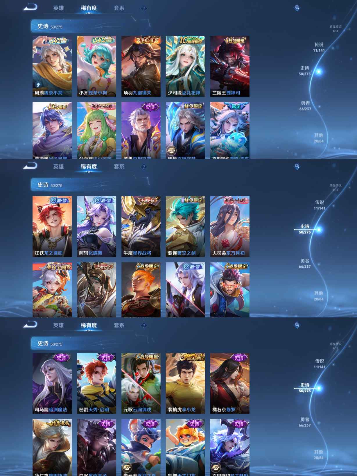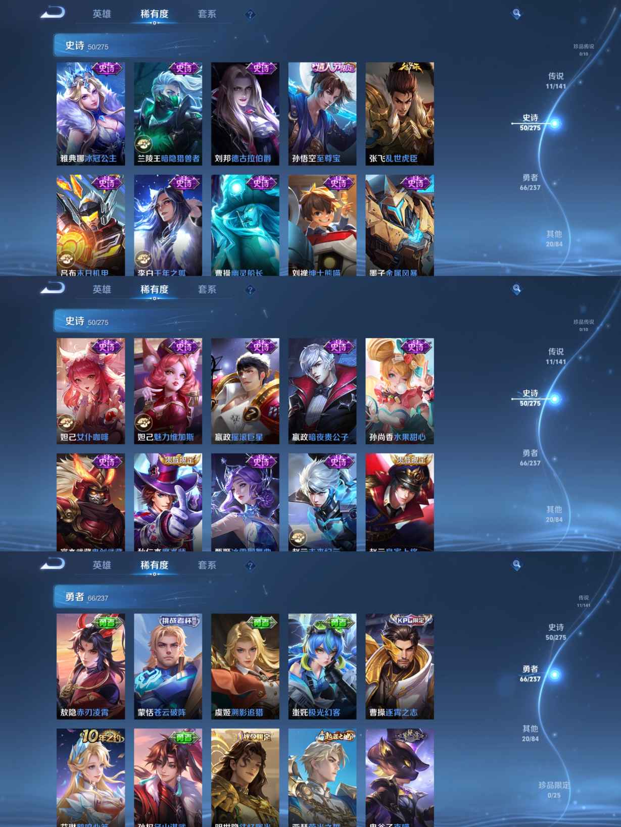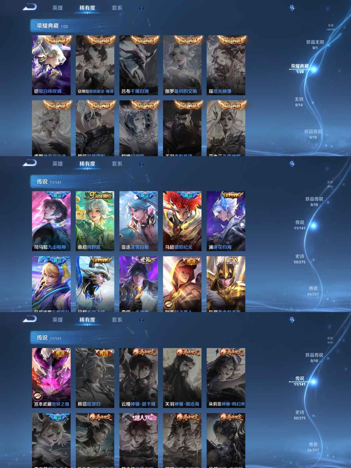 贵族等级:v7皮肤数:148传说品质11 情人节限定1 荣耀典藏1 英雄数:127