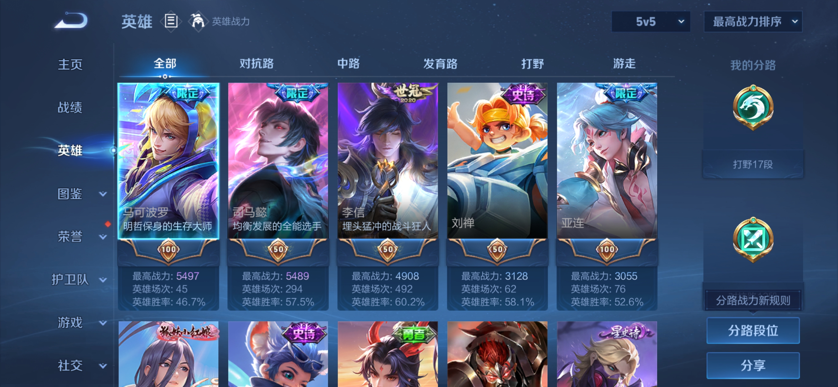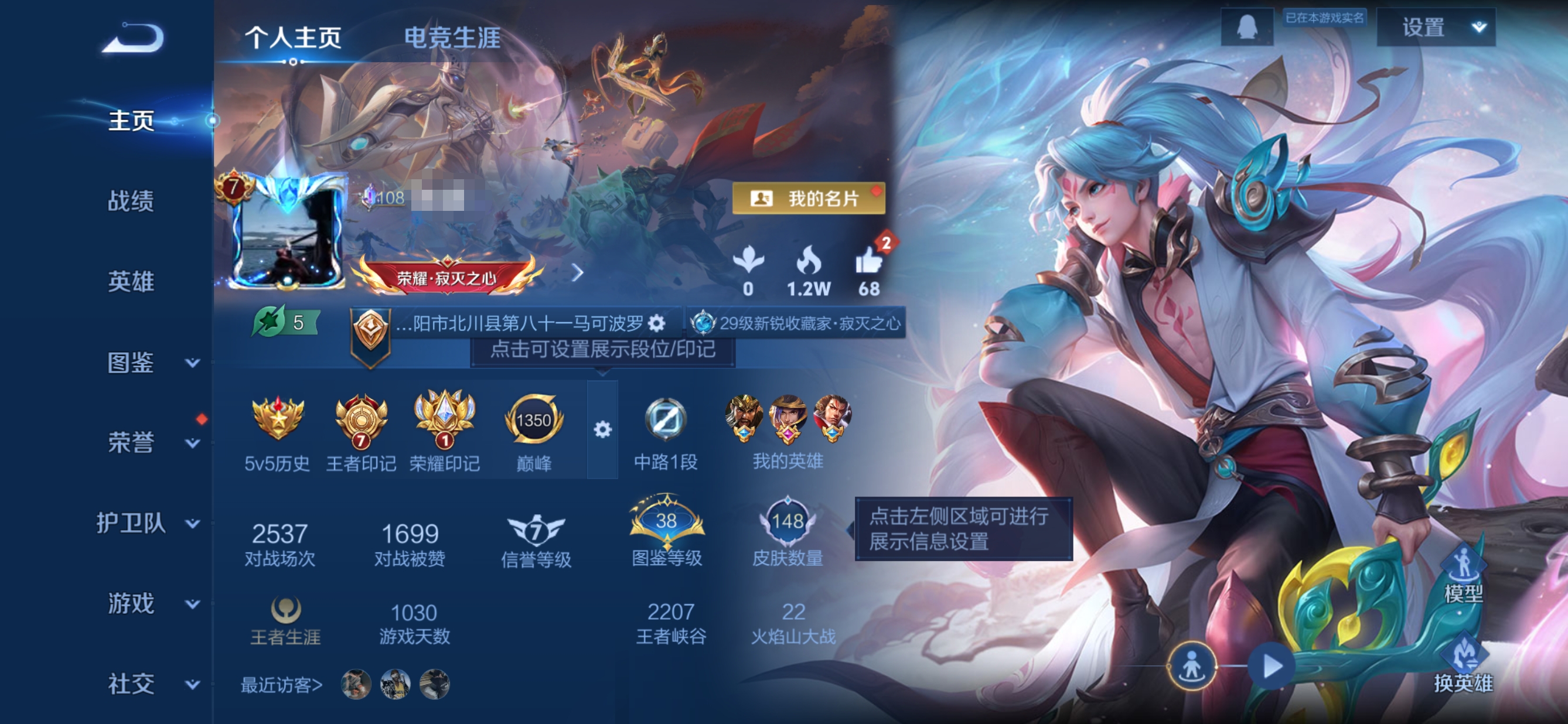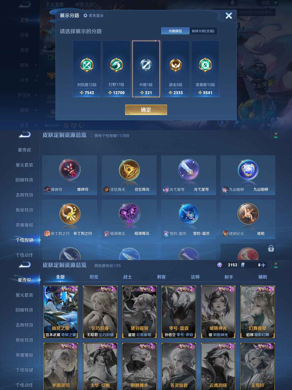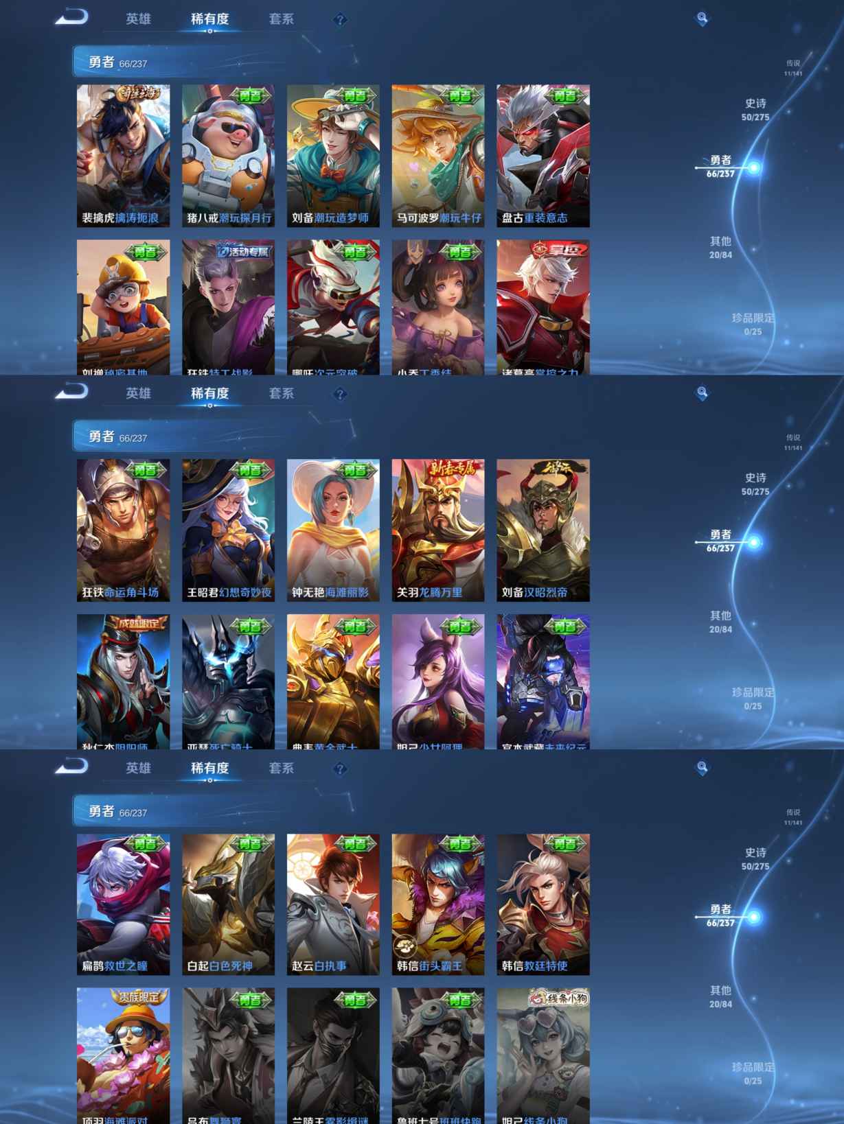 贵族等级:v7皮肤数:148传说品质11 情人节限定1 荣耀典藏1 英雄数:127