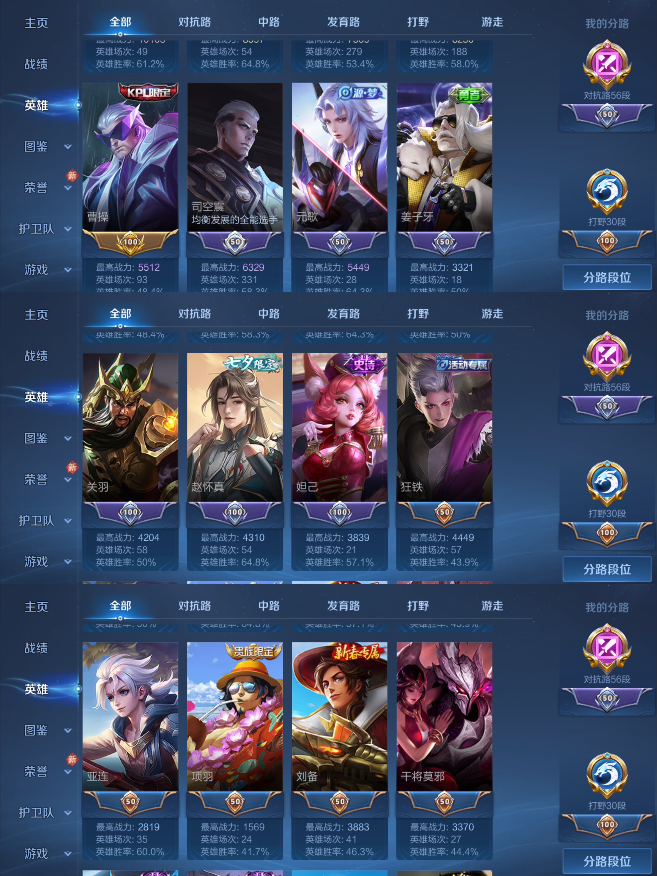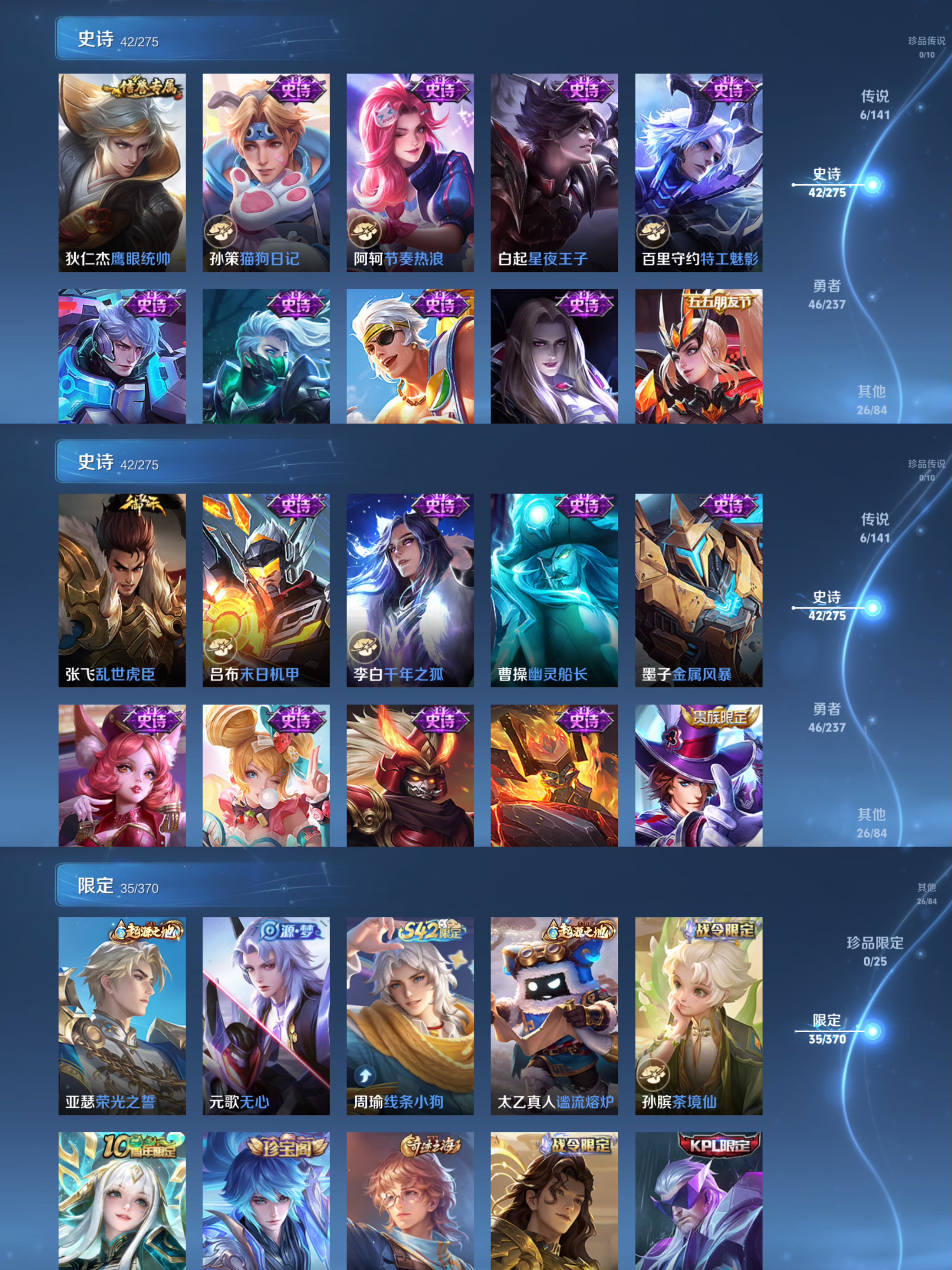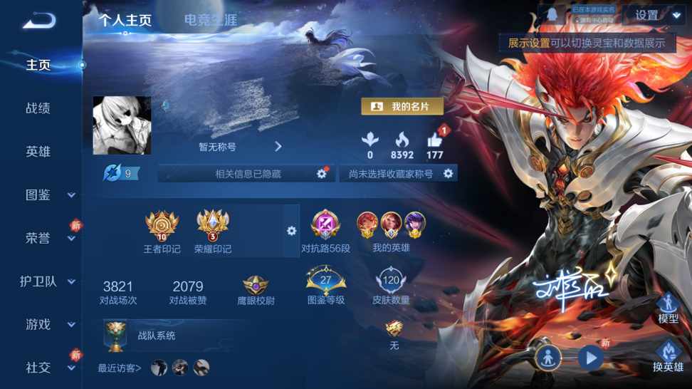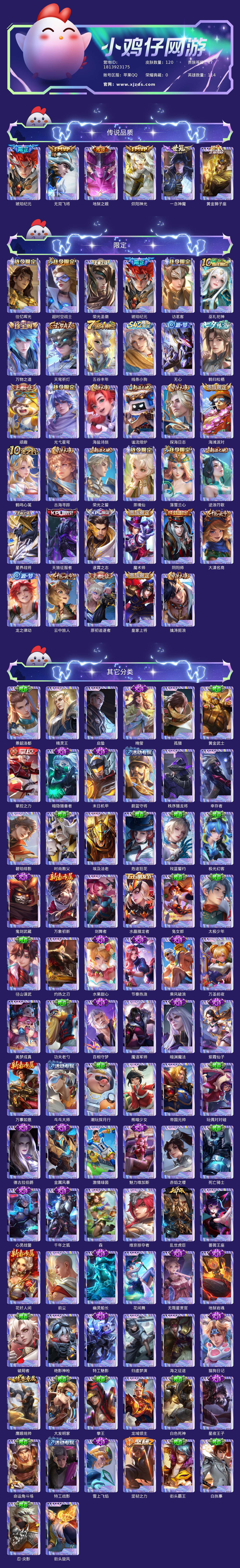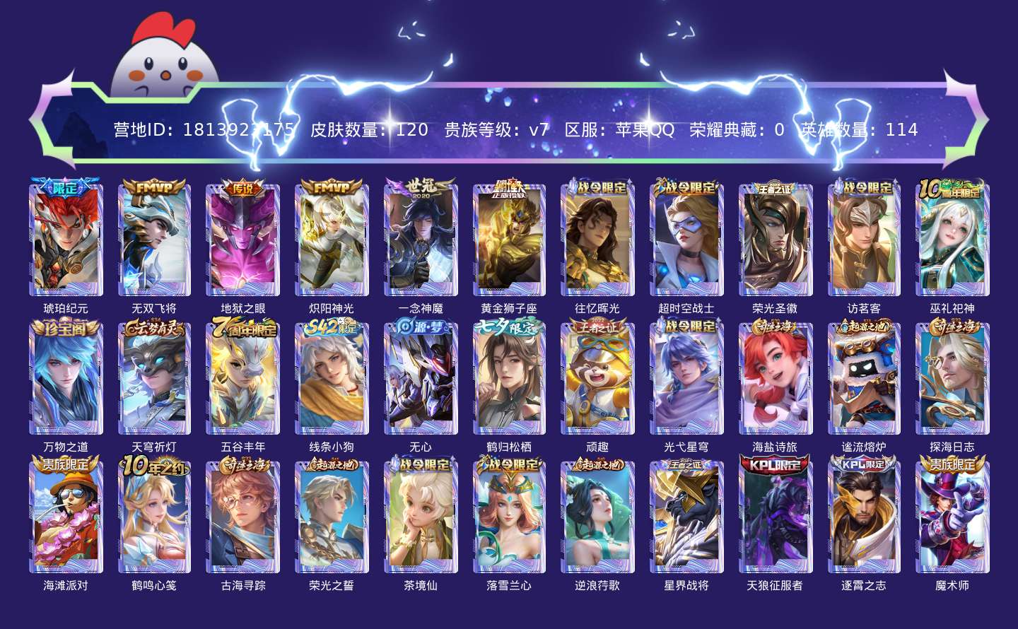 贵族等级:v7皮肤数:120传说品质6 英雄数:114