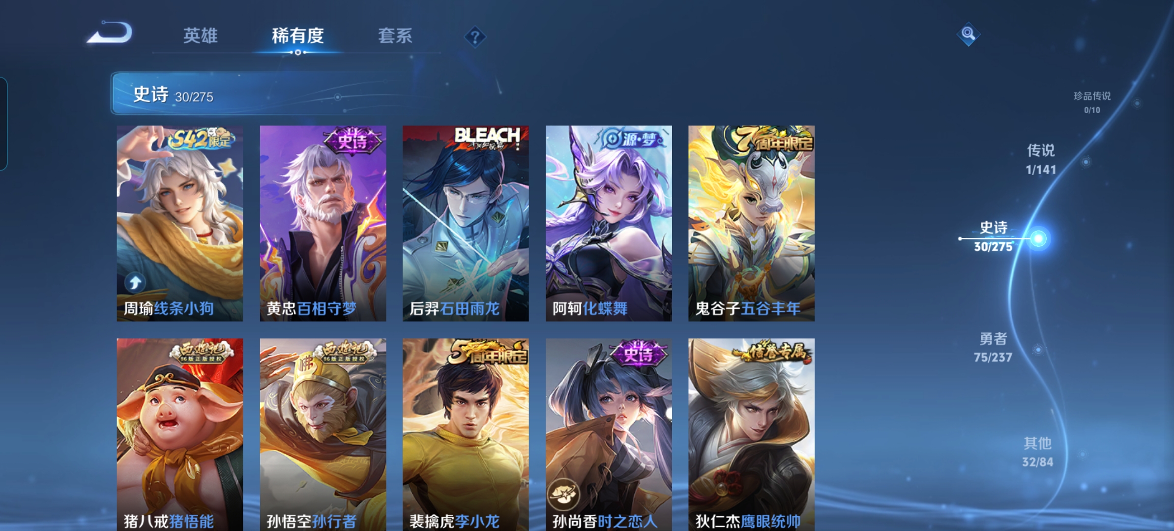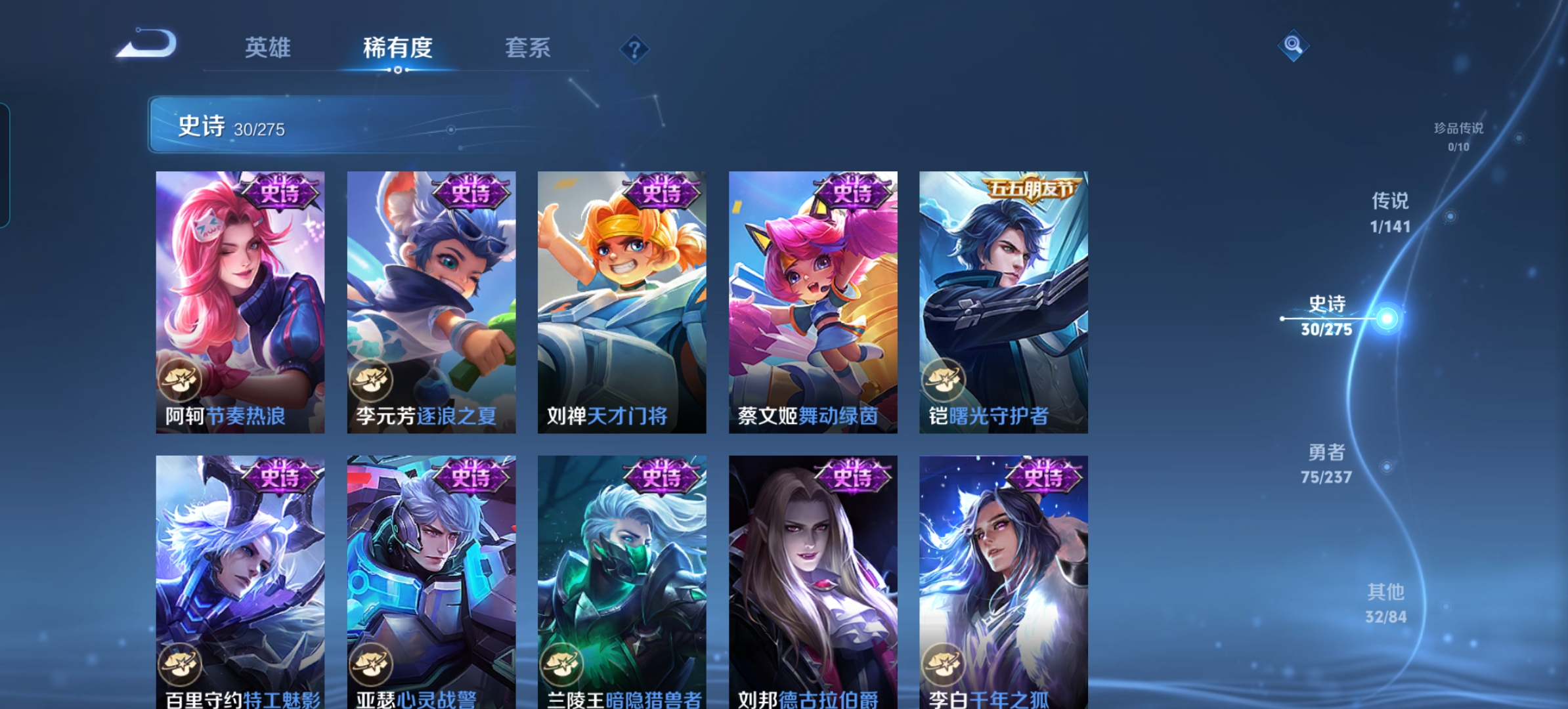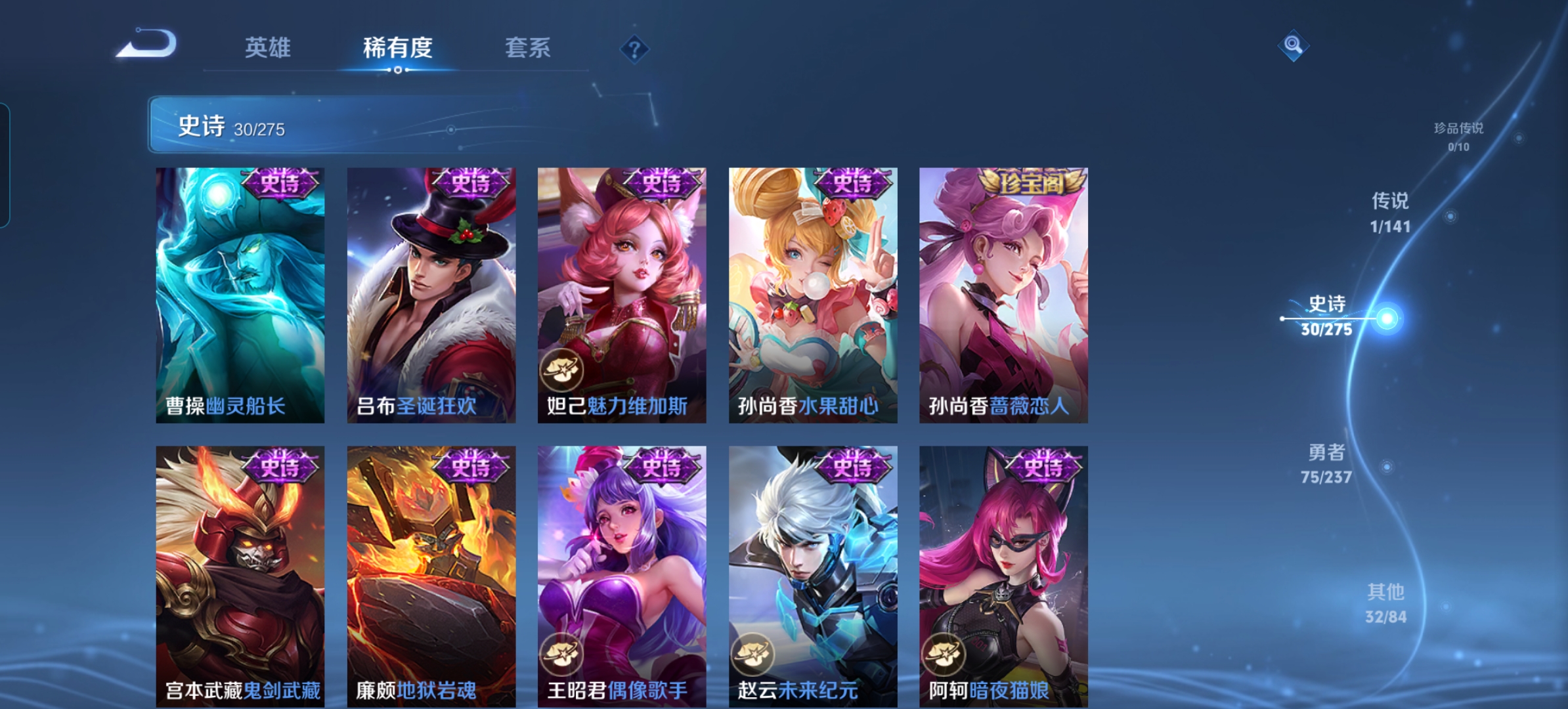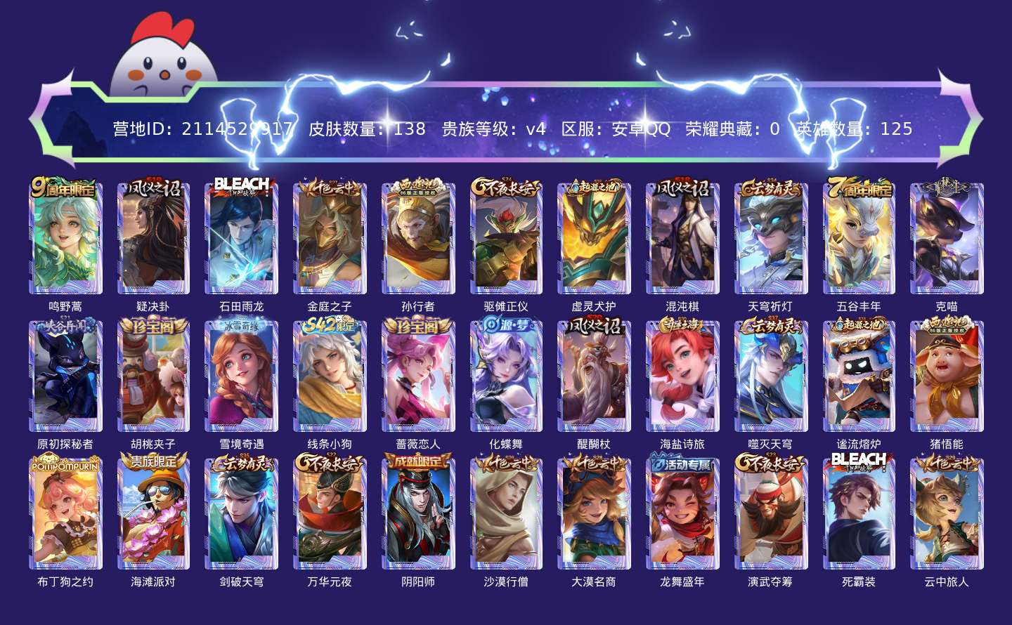 贵族等级:v4皮肤数:138传说品质1 英雄数:125