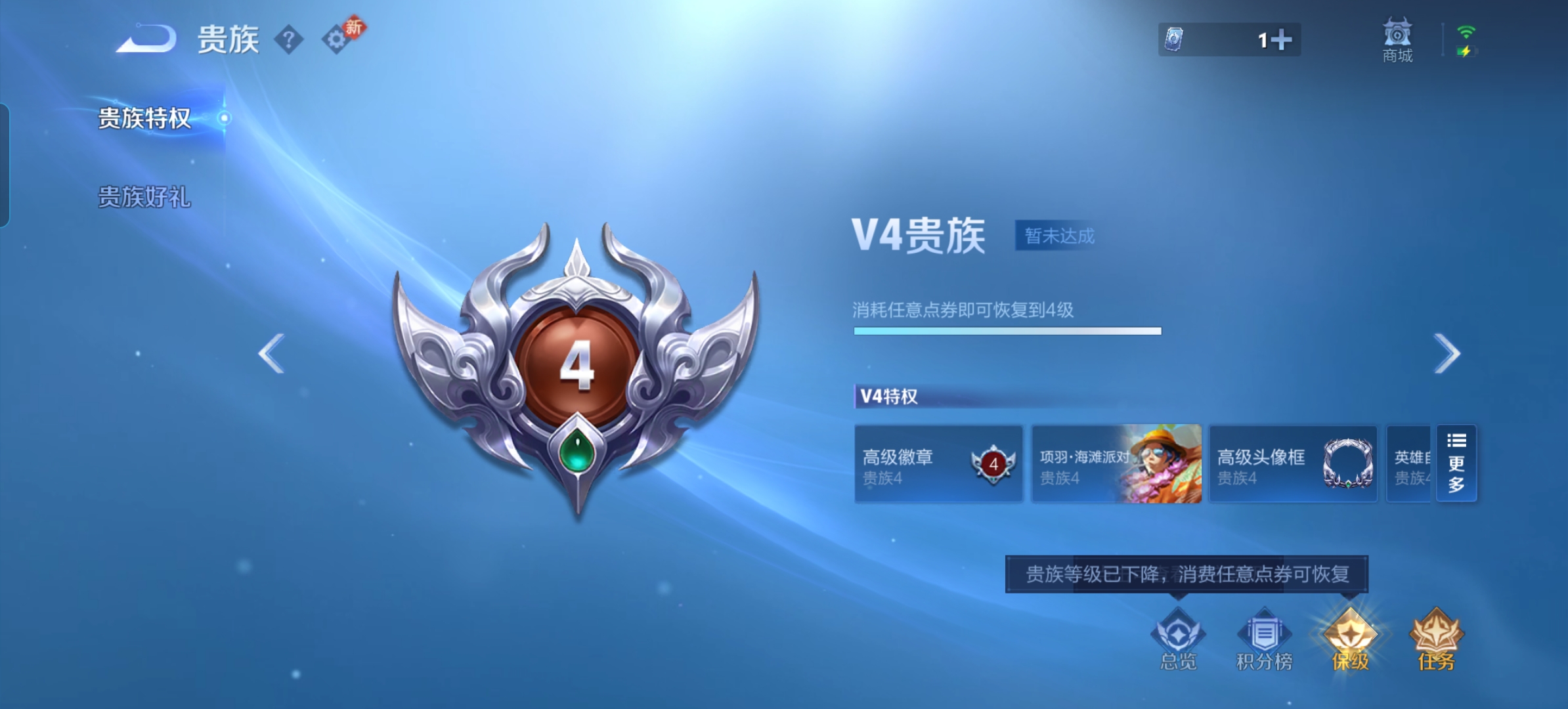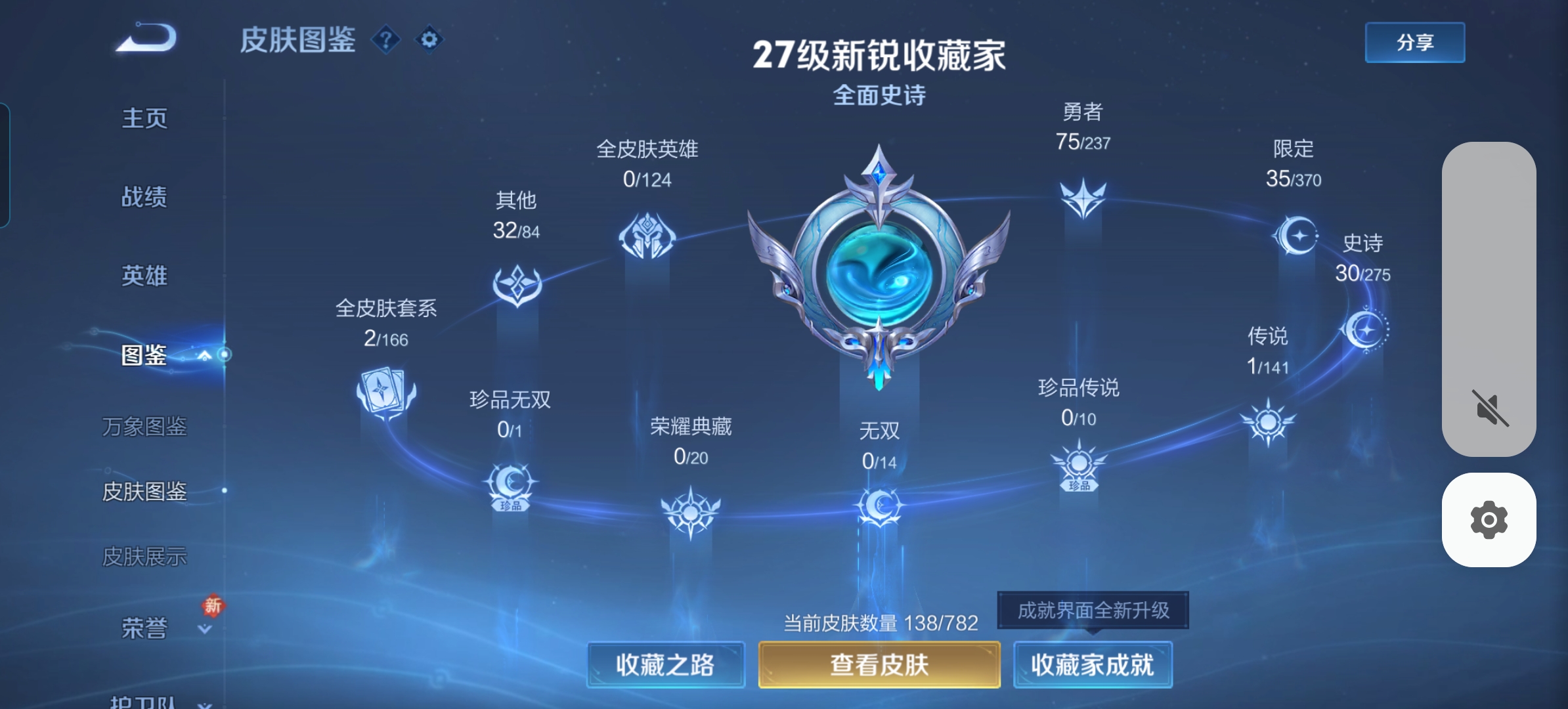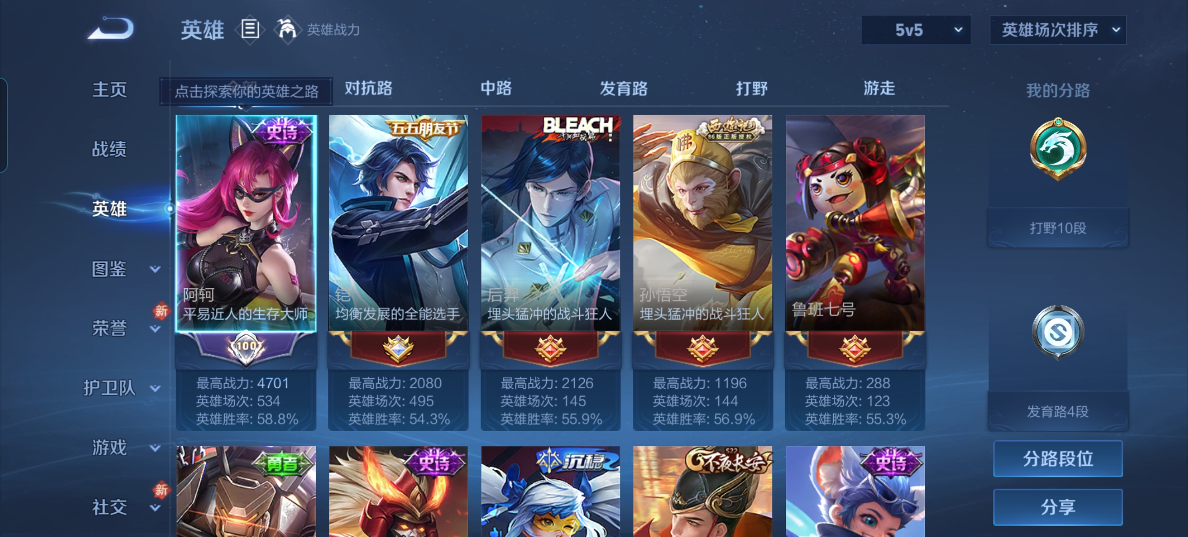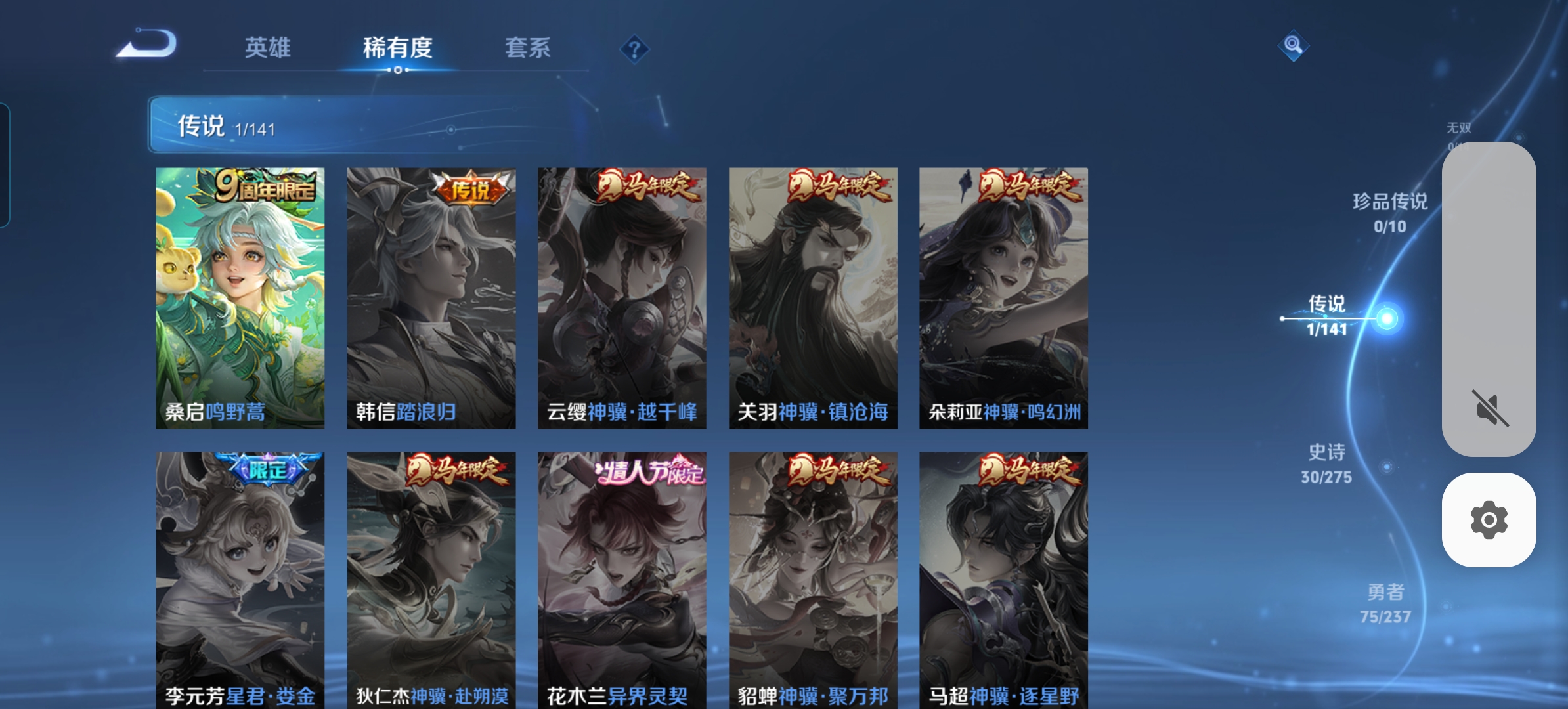 贵族等级:v4皮肤数:138传说品质1 英雄数:125