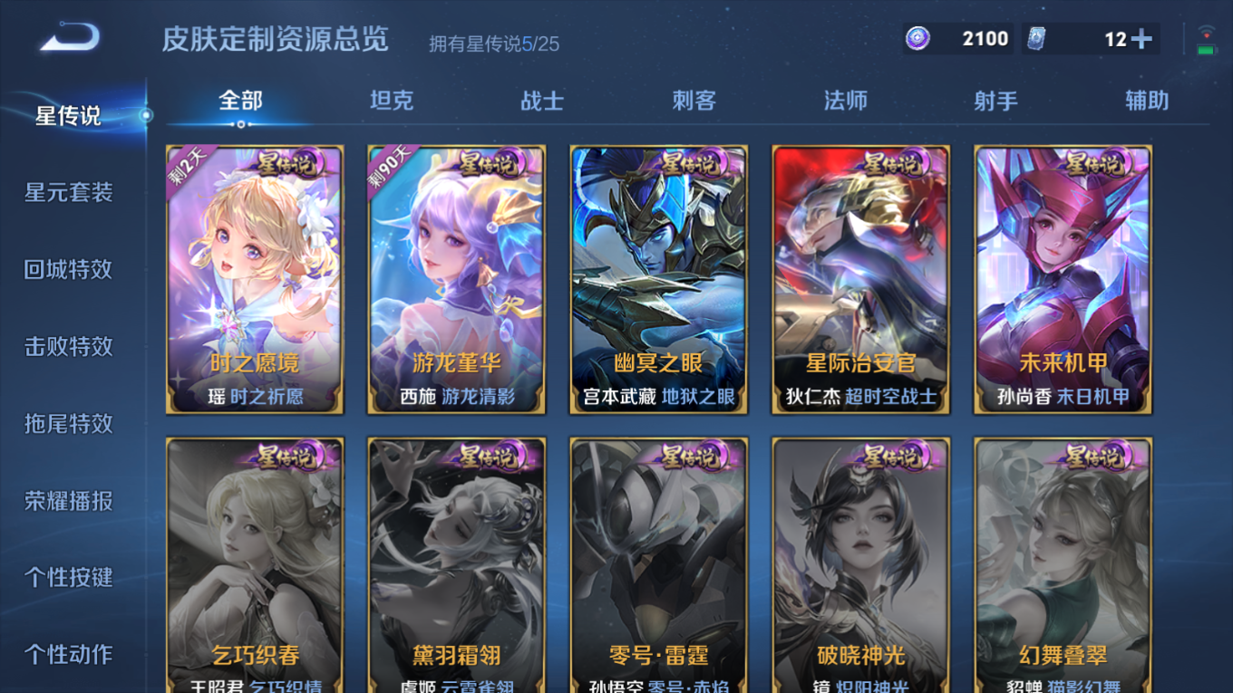 传说品质_后羿_千劫归真传说品质_后羿_神树通天传说品质_关羽_神骥·镇沧海传说品质_关羽_武圣传说品质_澜_逐花归海传说品质_诸葛亮_时雨天司传说品质_诸葛亮_鹤羽星尊传说品质_孙悟空_零号·赤焰传说品质_孙悟空_齐天大圣传说品质_马超_无双飞将传说品质_马超_神骥·逐星野传说品质_干将莫邪_久胜战神传说品质_宫本武藏_地狱之眼传说品质_西施_游龙清影传说品质_西施_续相思传说品质_镜_炽阳神光传说品质_貂蝉_神骥·聚万邦传说品质_貂蝉_仲夏夜之梦传说品质_李信_一念神魔传说品质_李信_山海·炽霜斩传说品质_孙尚香_乘龙·问璇玑传说品质_夏侯惇_霜北刀传说品质_小乔_山海·琳琅生传说品质_桑启_鸣野蒿传说品质_露娜_霜月吟传说品质_王昭君_长夜焕生传说品质_艾琳_觅芳踪传说品质_马可波罗_妄想实况传说品质_云缨_神骥·越千峰传说品质_李白_诗剑行传说品质_瑶_时之祈愿传说品质_朵莉亚_神骥·鸣幻洲传说品质_公孙离_云诺千山传说品质_亚连_落雪白狼传说品质_曜_云鹰飞将传说品质_孙策_末日机甲传说品质_孙策_乘龙·淬吴钩传说品质_狄仁杰_超时空战士传说品质_狄仁杰_神器·狴犴令传说品质_狄仁杰_神骥·赴朔漠传说品质_狄仁杰_夜礼服假面传说品质_达摩_黄金狮子座传说品质_虞姬_启明星使传说品质_赵云_乘龙·铭钟鼎