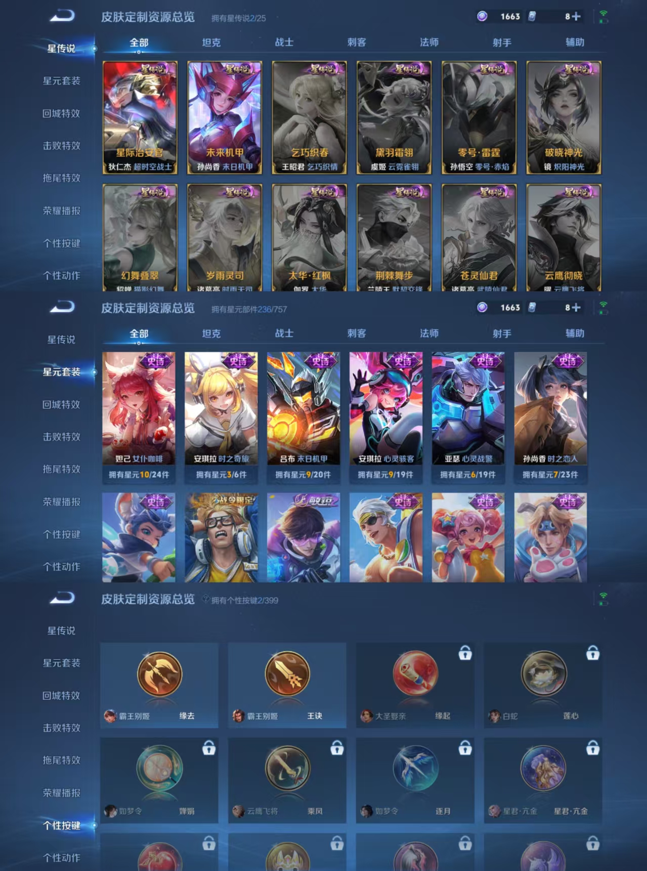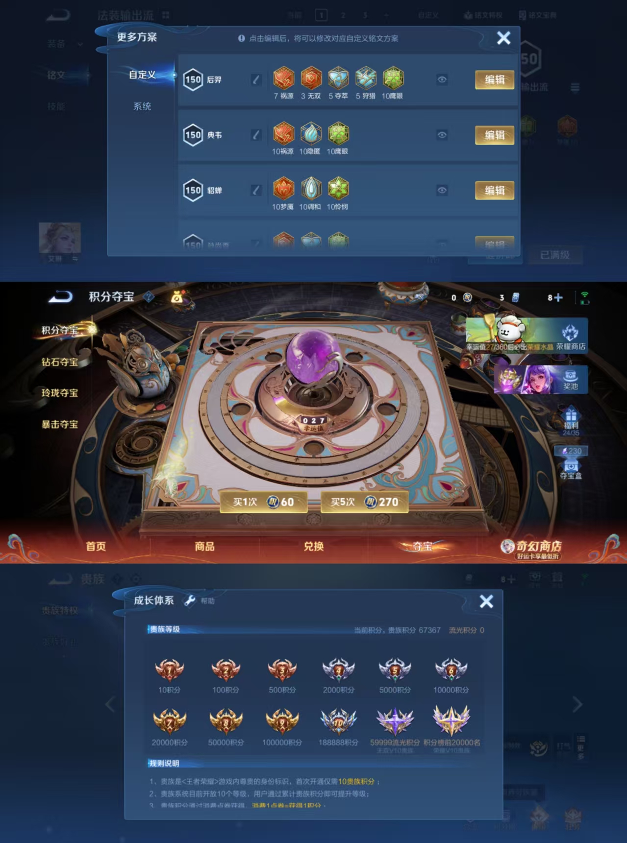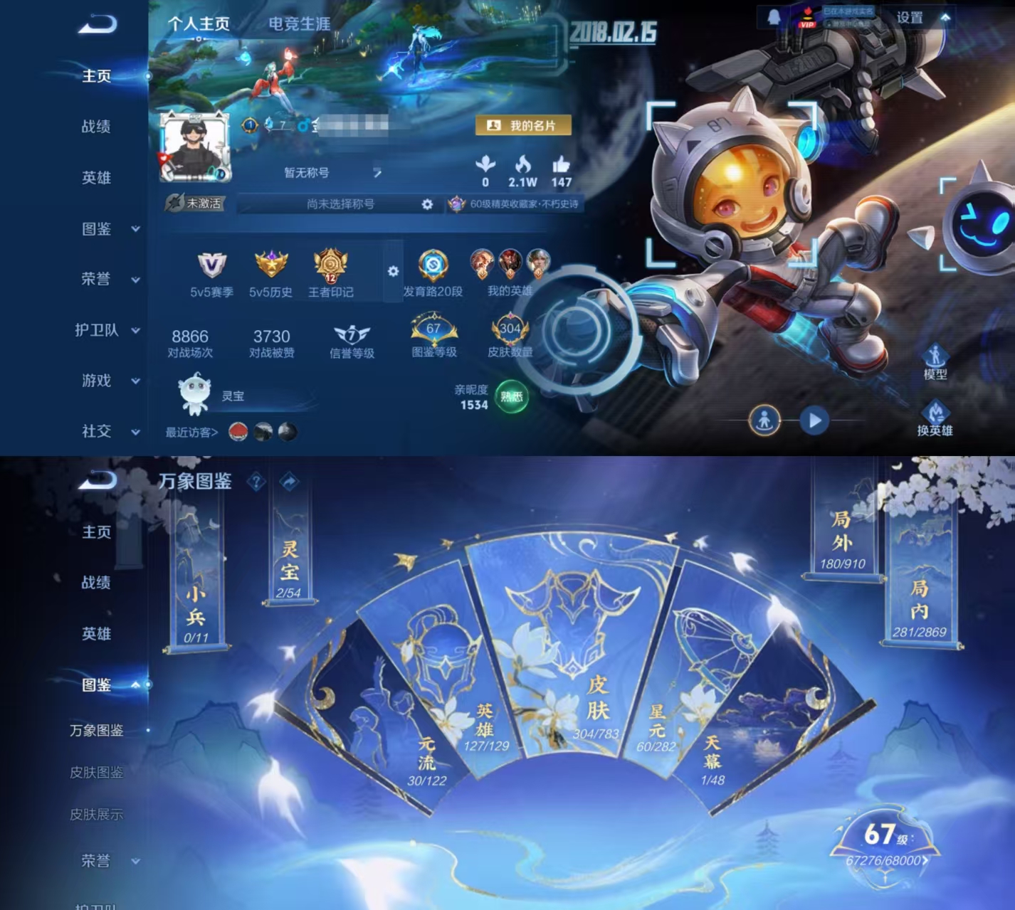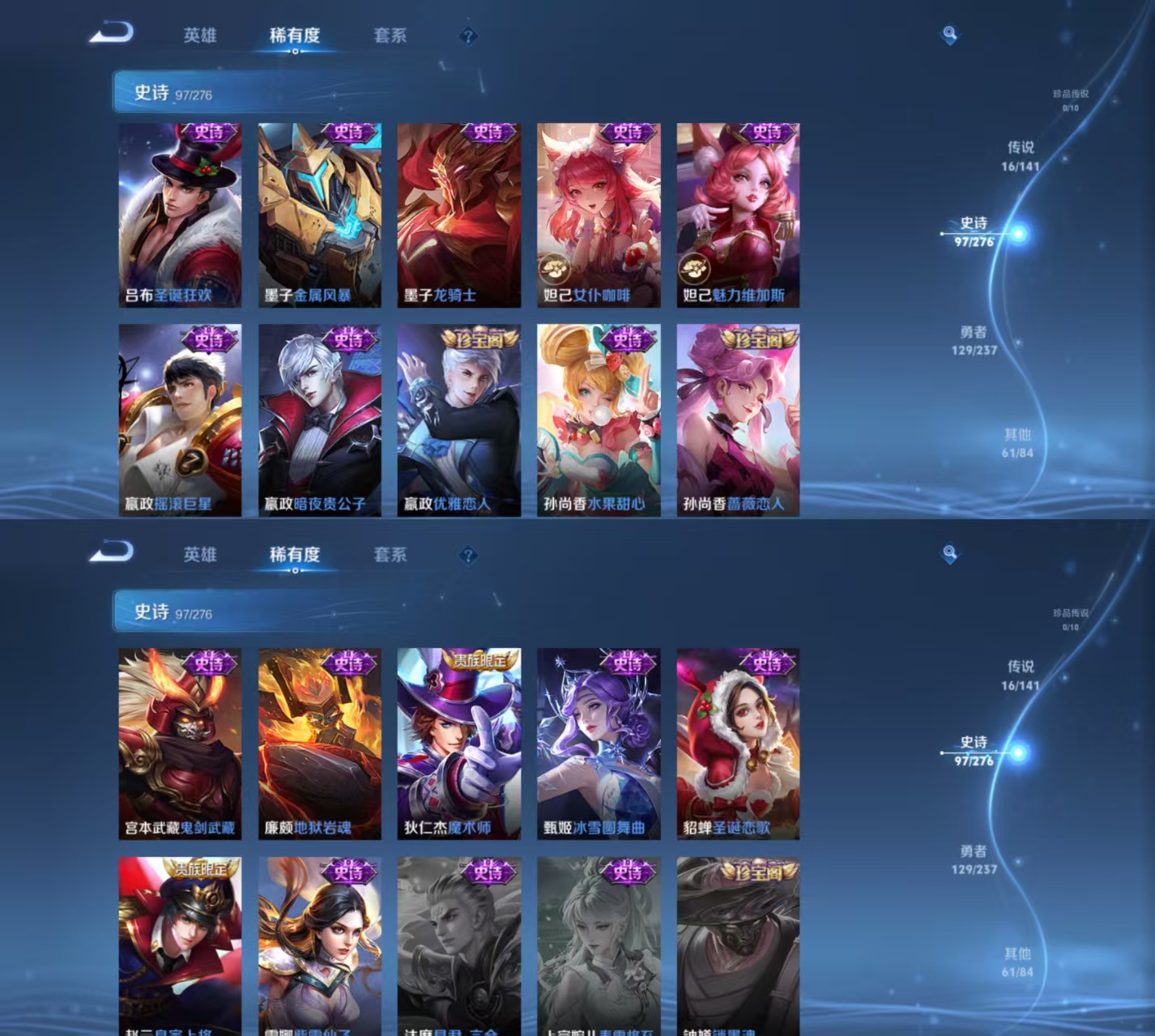贵族等级:v8皮肤数:304生肖限定7 传说品质16 情人节限定2 荣耀典藏1 英雄数:127