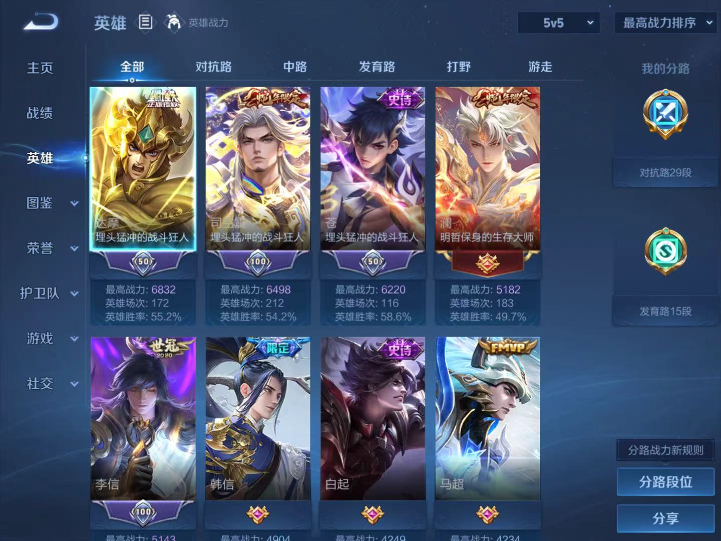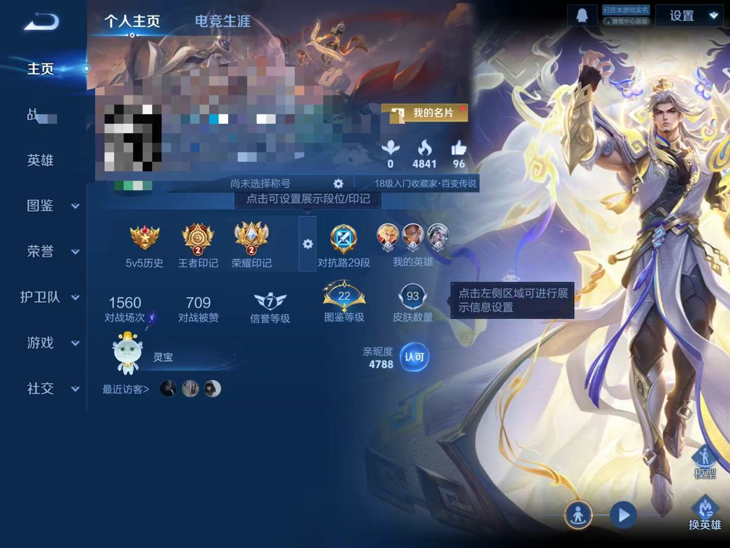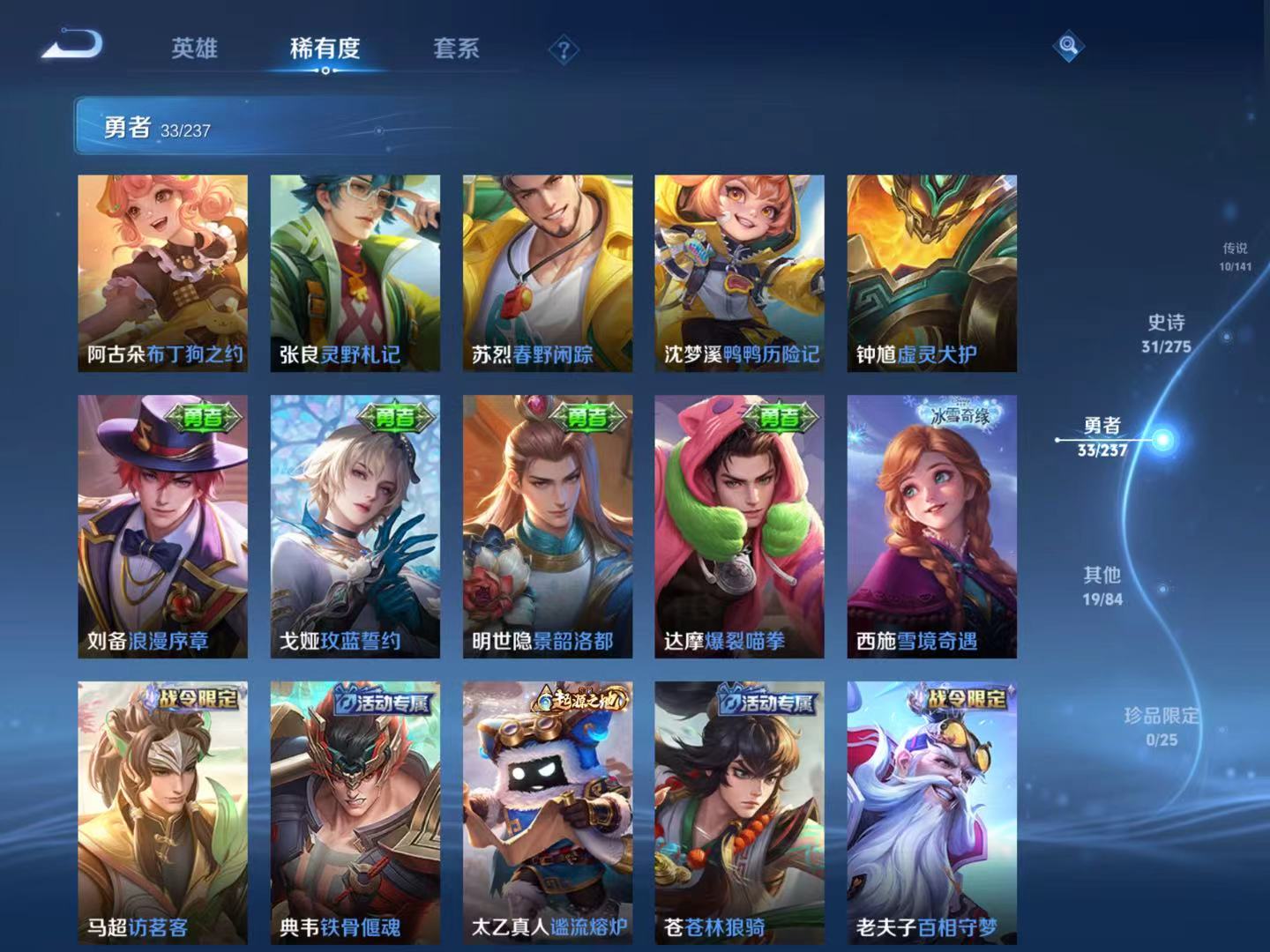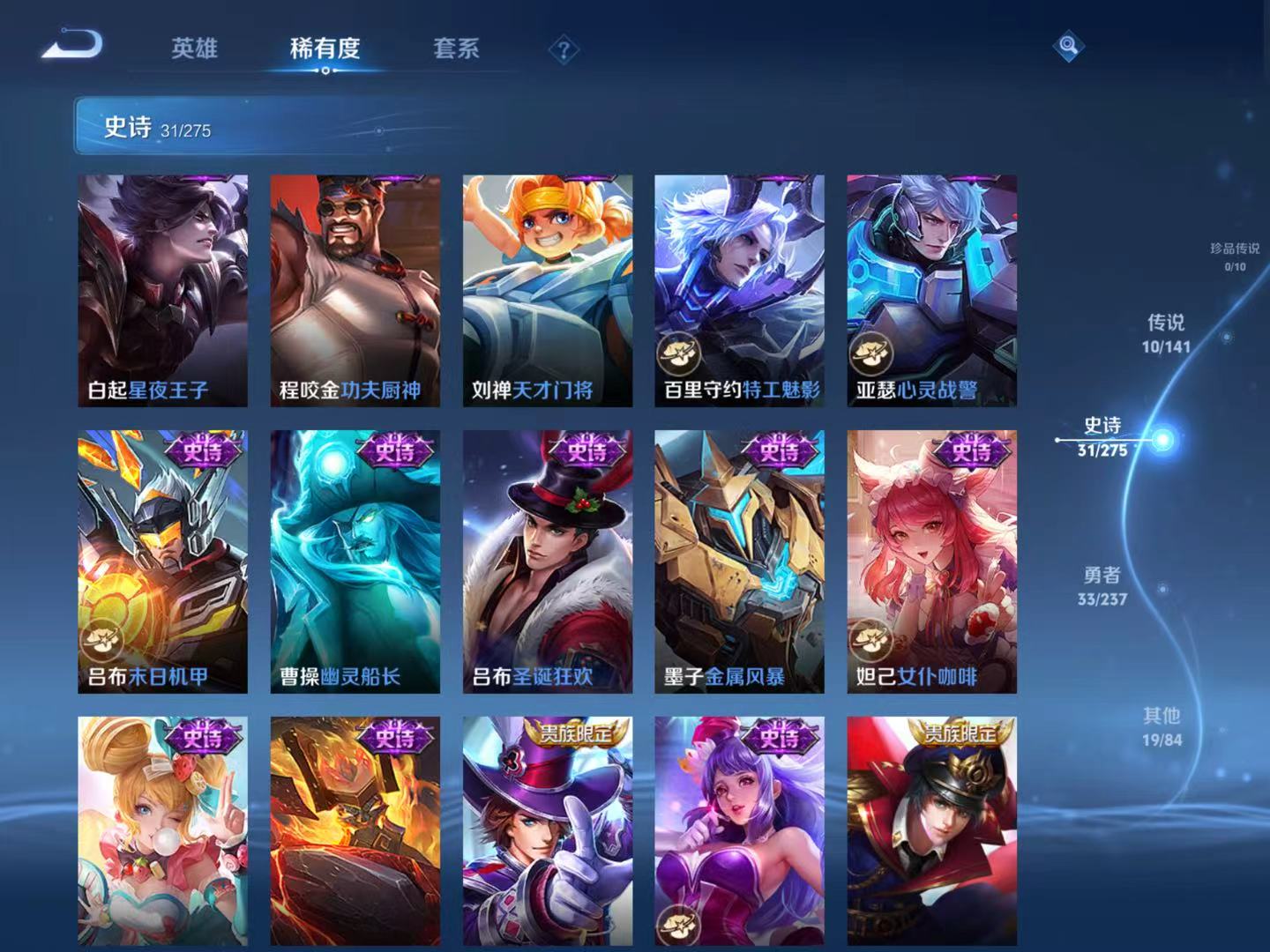 贵族等级:v7皮肤数:93传说品质10 生肖限定3 英雄数:86