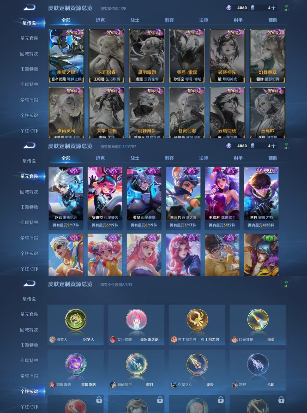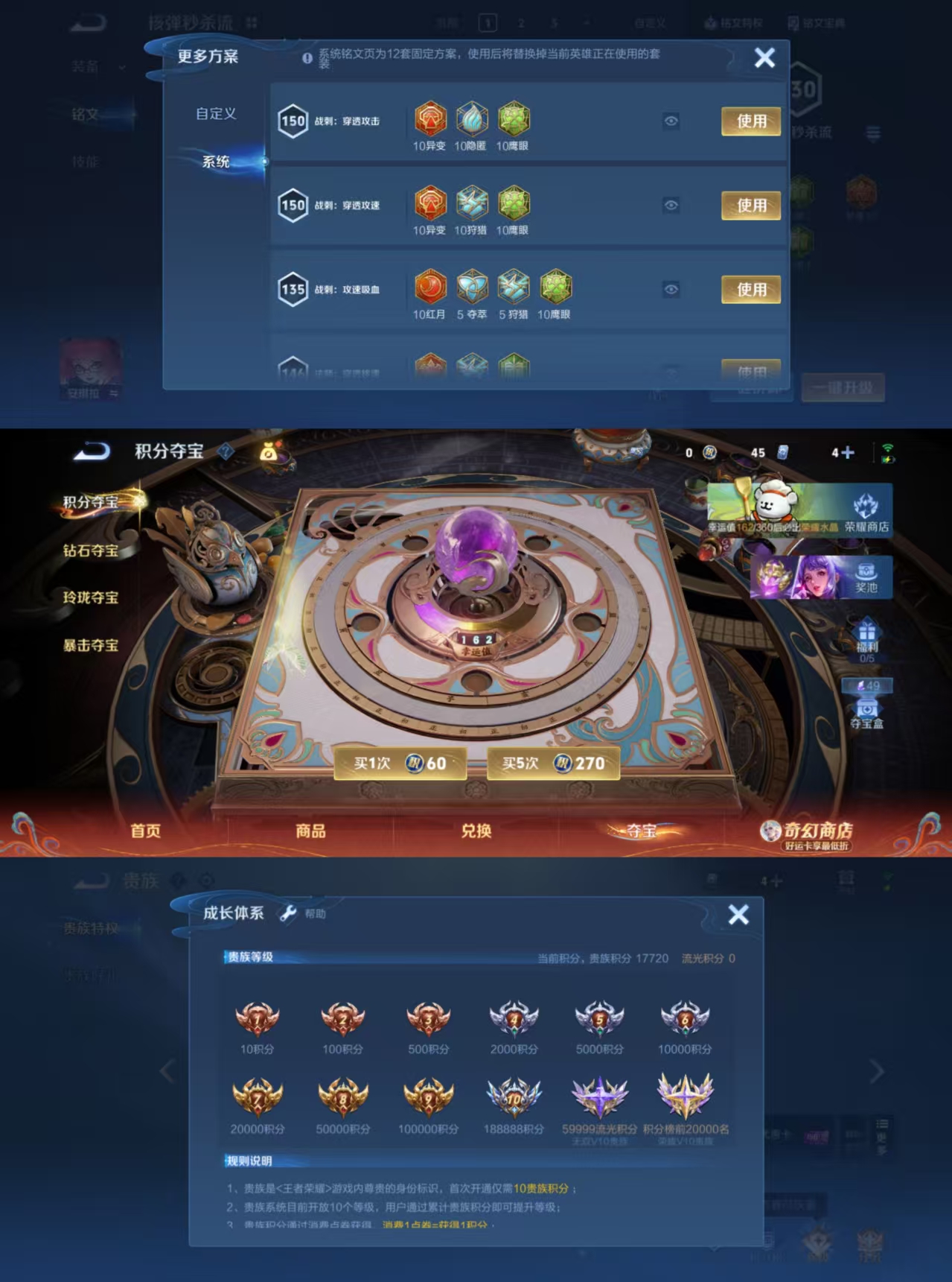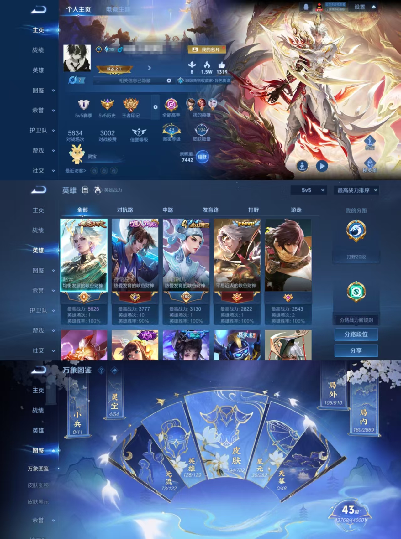 贵族等级:v6皮肤数:194传说品质7 生肖限定3 情人节限定2 英雄数:128