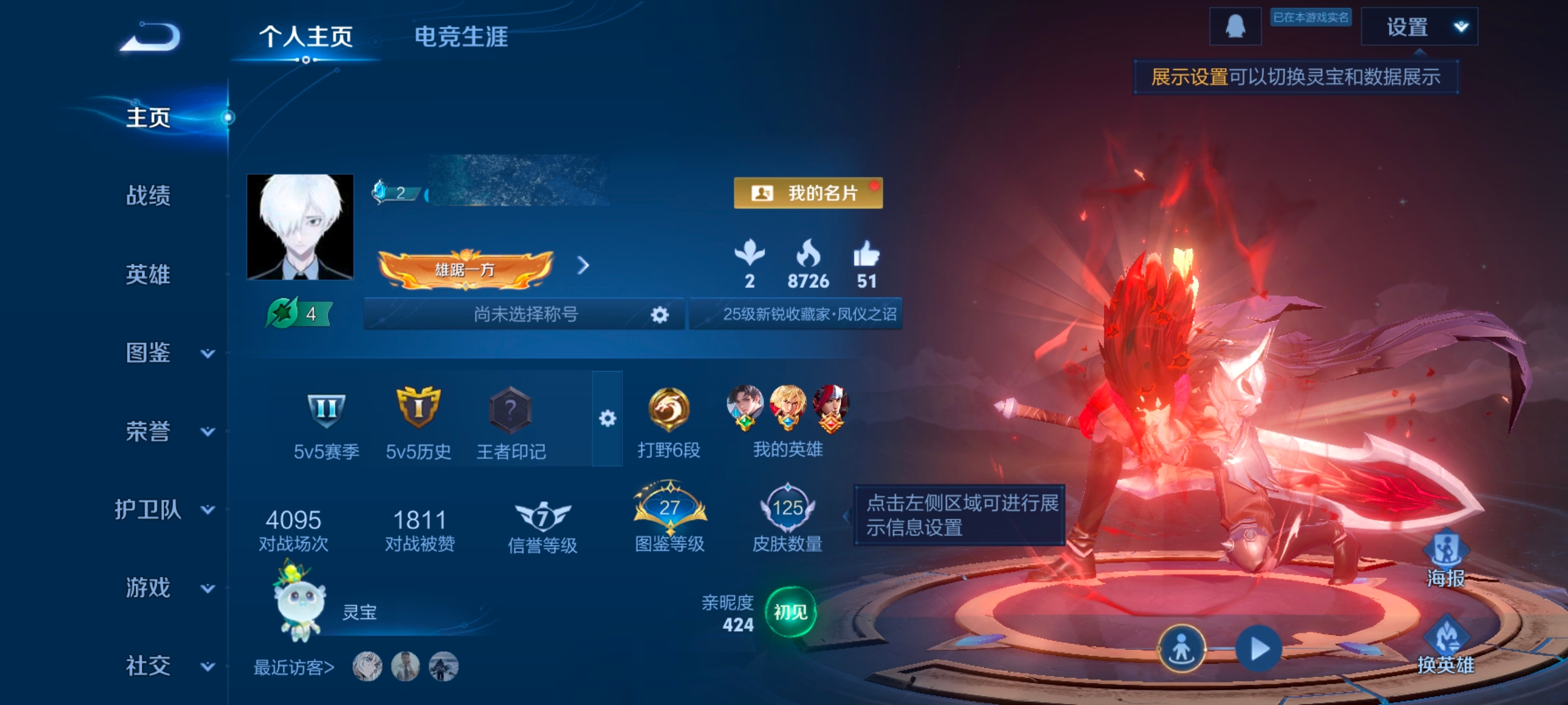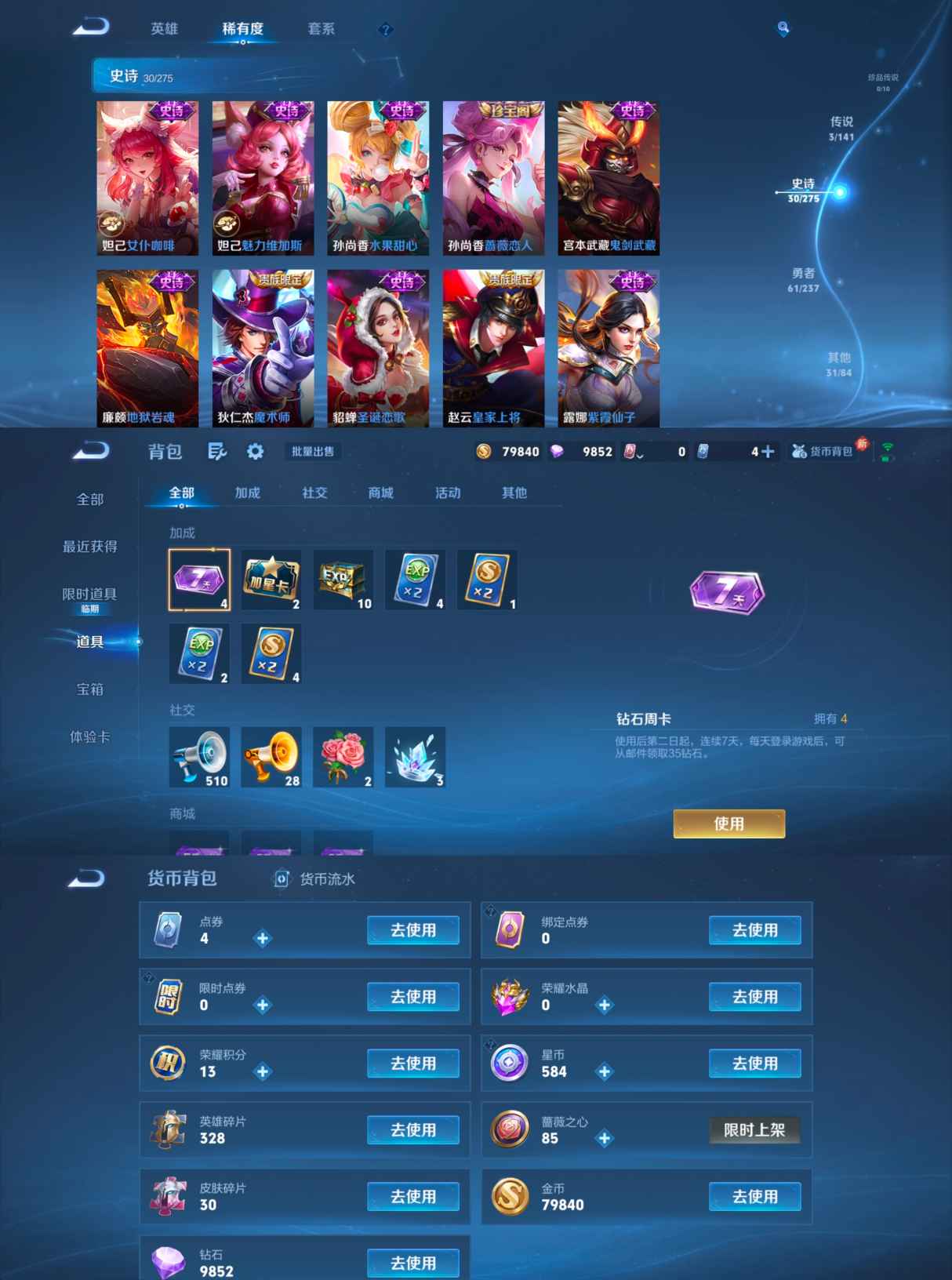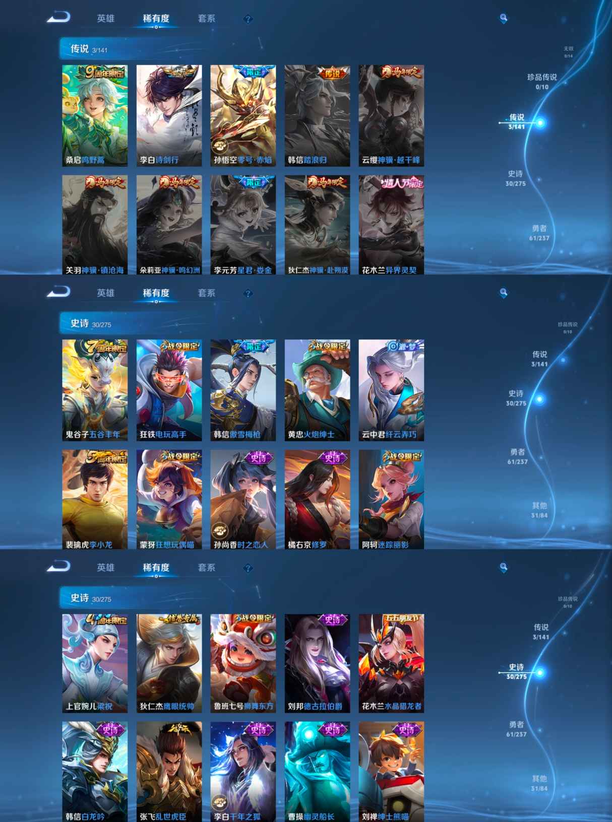 贵族等级:v6皮肤数:125传说品质3 英雄数:123