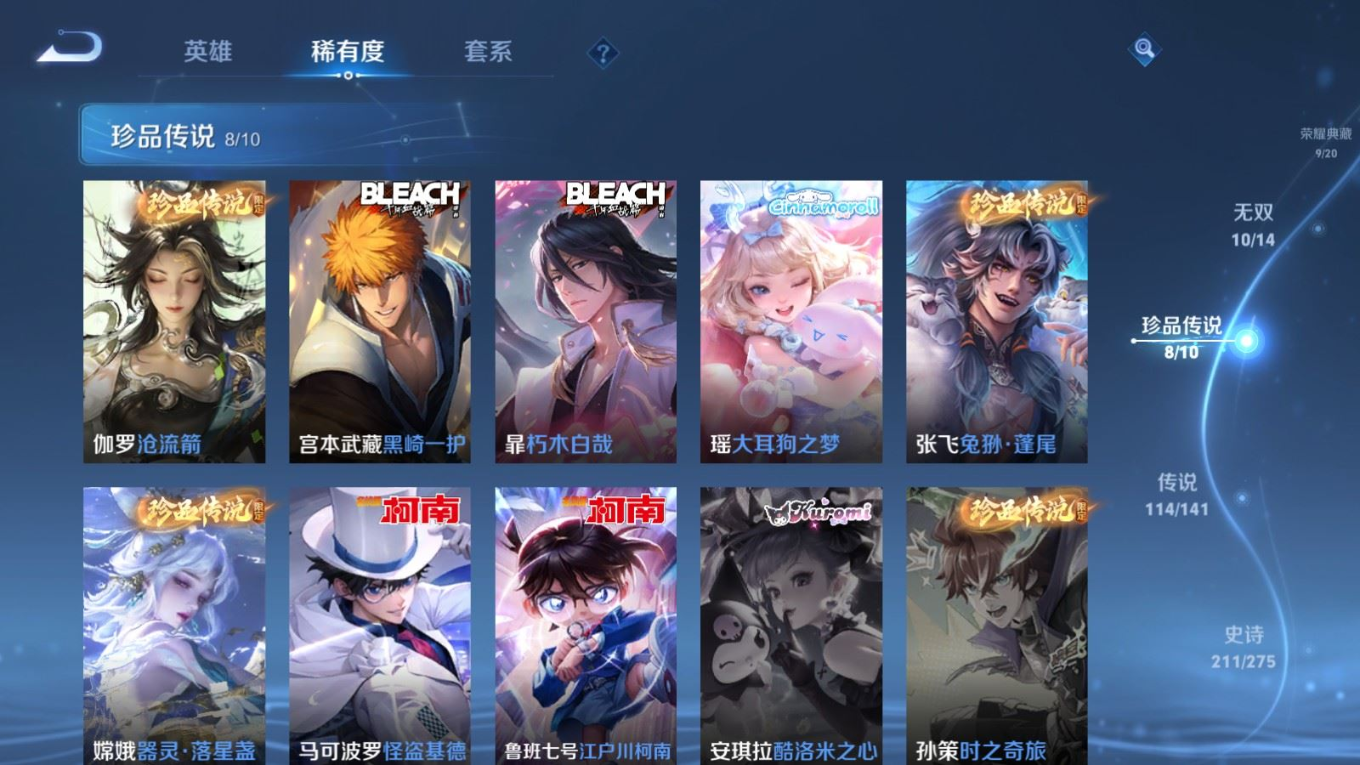 珍品传说_暃_朽木白哉珍品传说_宫本武藏_黑崎一护珍品传说_嫦娥_器灵·落星盏珍品传说_马可波罗_怪盗基德珍品传说_瑶_大耳狗之梦珍品传说_张飞_兔狲·蓬尾珍品传说_伽罗_沧流箭珍品传说_鲁班七号_江户川柯南