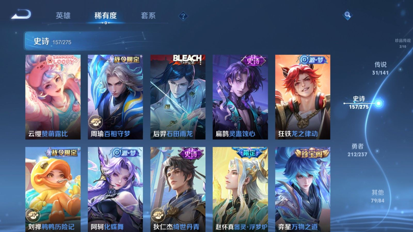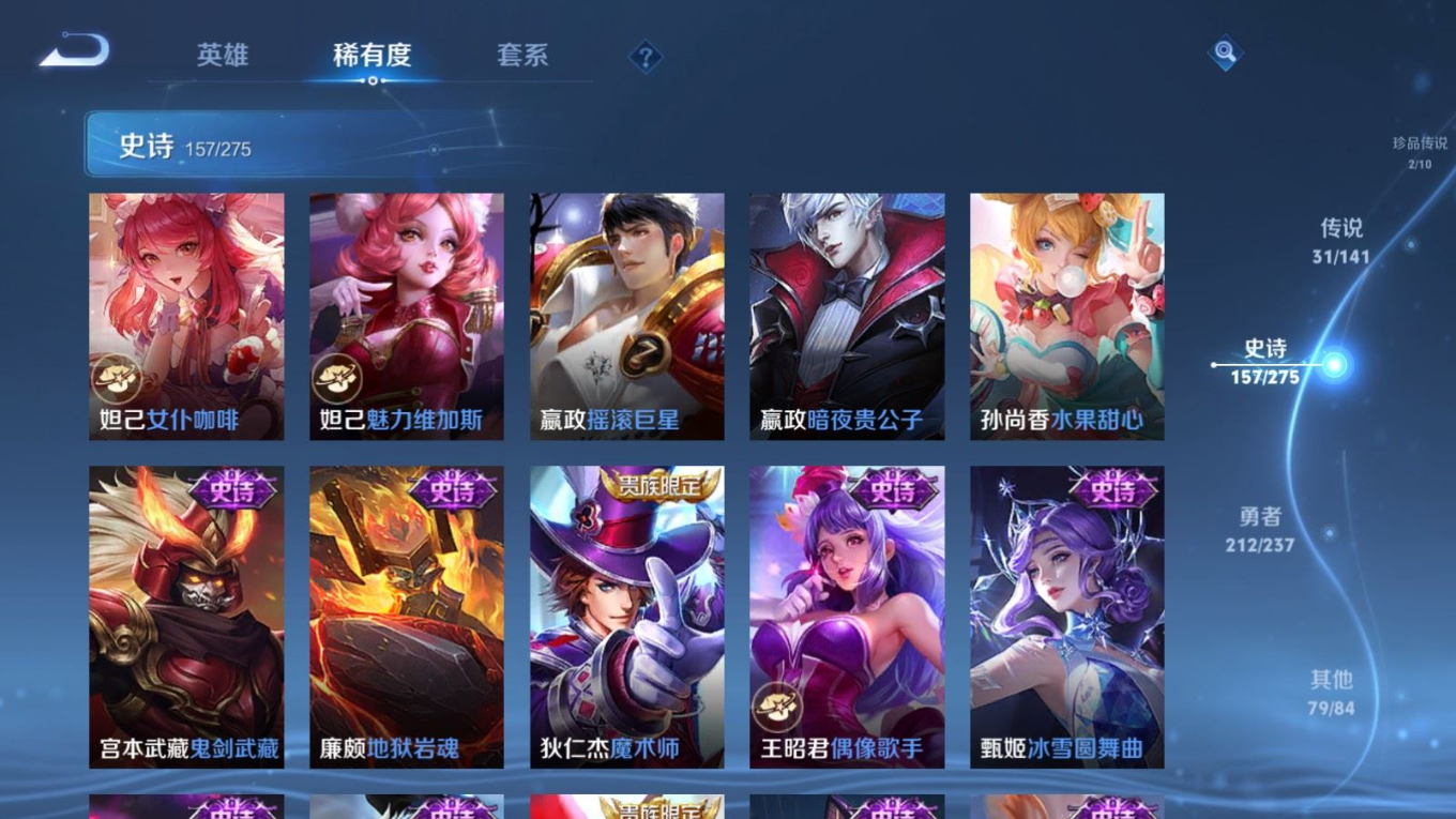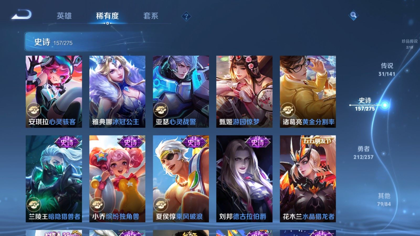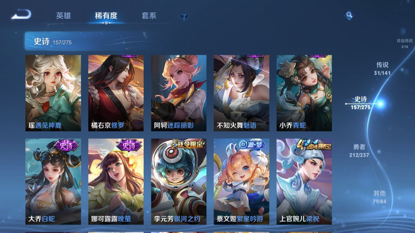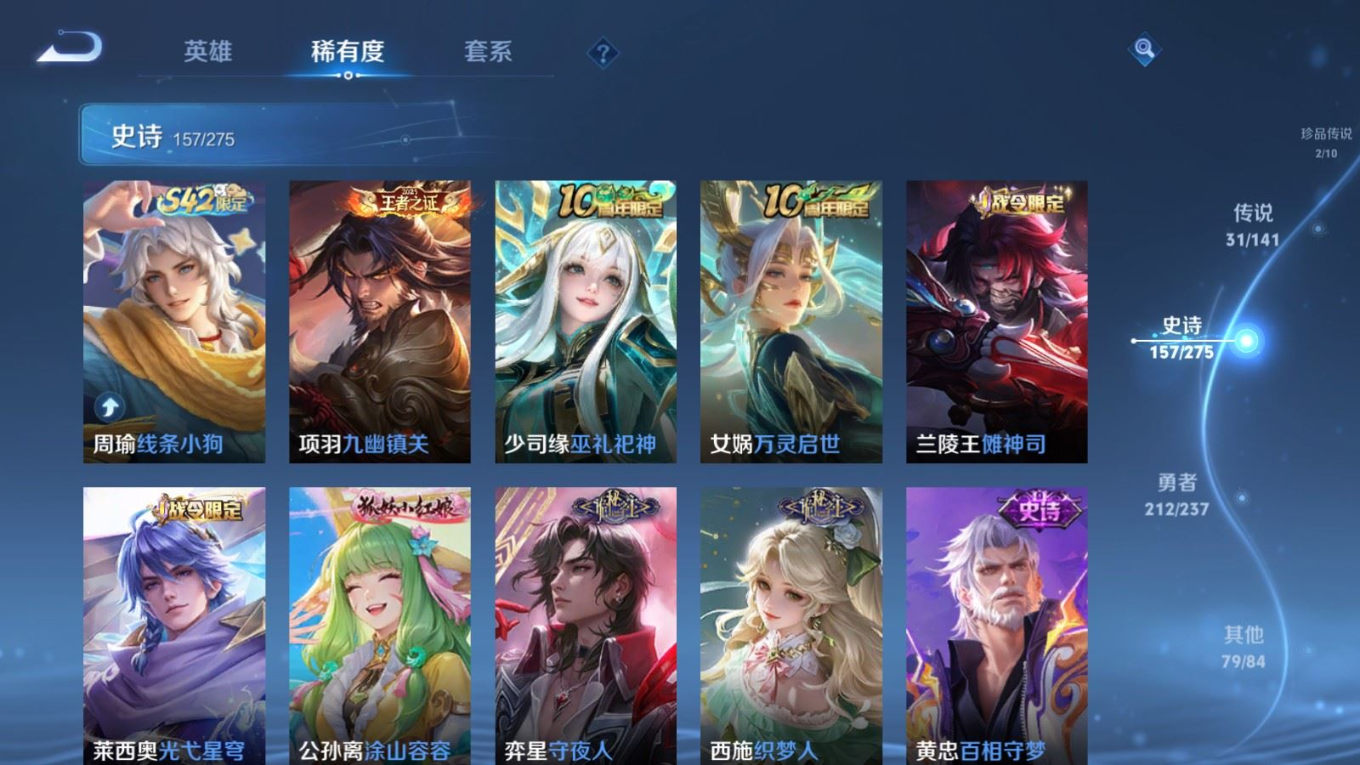 传说品质_后羿_黄金射手座传说品质_后羿_神树通天传说品质_司空震_愿照·山河定传说品质_澜_愿照·九州拓传说品质_诸葛亮_时雨天司传说品质_吕布_怒海麟威传说品质_武则天_海洋之心传说品质_宫本武藏_地狱之眼传说品质_西施_游龙清影传说品质_周瑜_音你心动传说品质_花木兰_冠军飞将传说品质_镜_炽阳神光传说品质_貂蝉_仲夏夜之梦传说品质_李信_一念神魔传说品质_小乔_音你心动传说品质_庄周_牧神诗旅传说品质_梦奇_胖达荣荣传说品质_桑启_鸣野蒿传说品质_刘备_时之恋人传说品质_张良_黄金白羊座传说品质_女娲_愿照·千秋盛传说品质_妲己_愿照·众生和传说品质_云缨_幻光神枪传说品质_李白_诗剑行传说品质_张飞_百相守梦传说品质_蔡文姬_花朝如约传说品质_百里守约_碎云传说品质_曜_云鹰飞将传说品质_铠_绛天战甲传说品质_虞姬_启明星使传说品质_李元芳_飞鸢探春