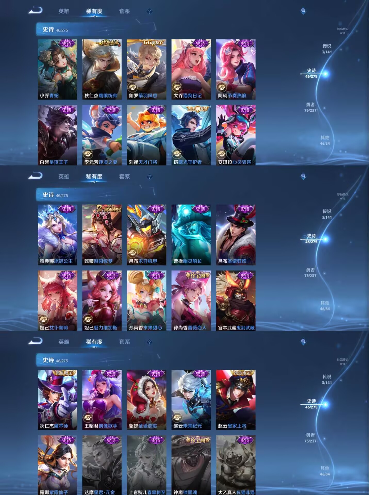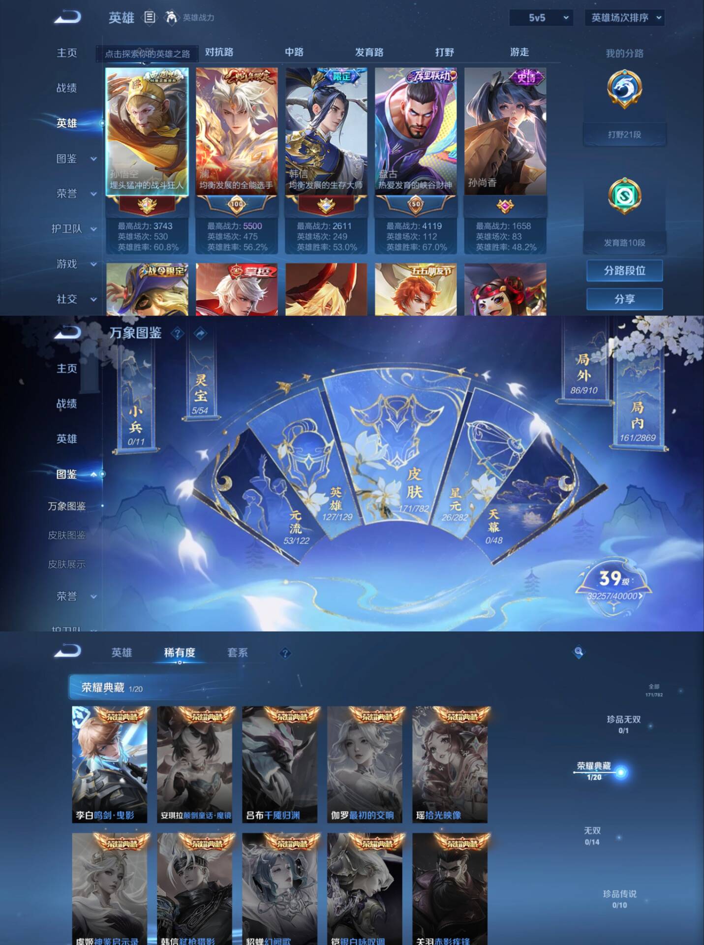 贵族等级:v6皮肤数:171传说品质3 生肖限定1 荣耀典藏1 英雄数:127