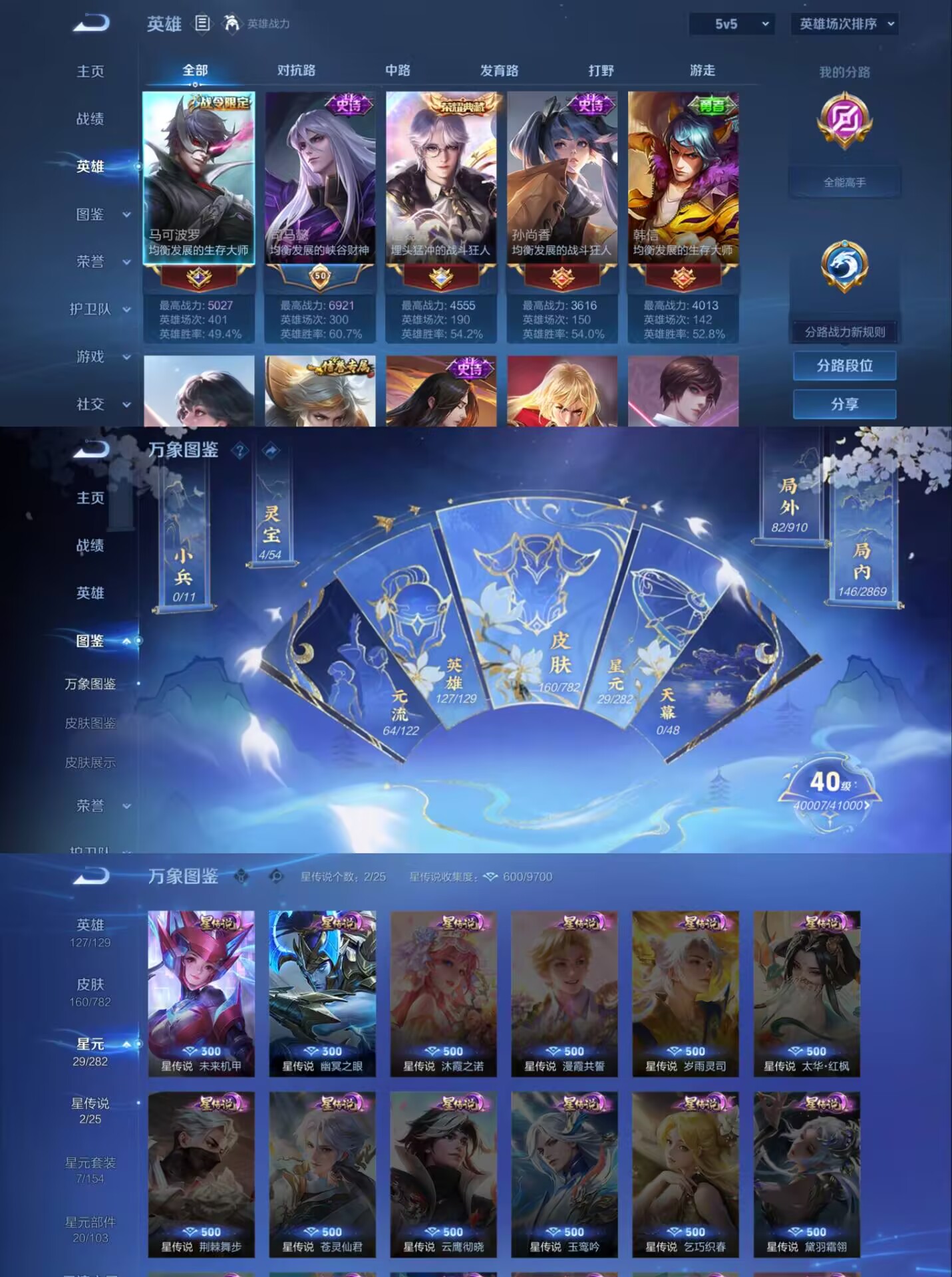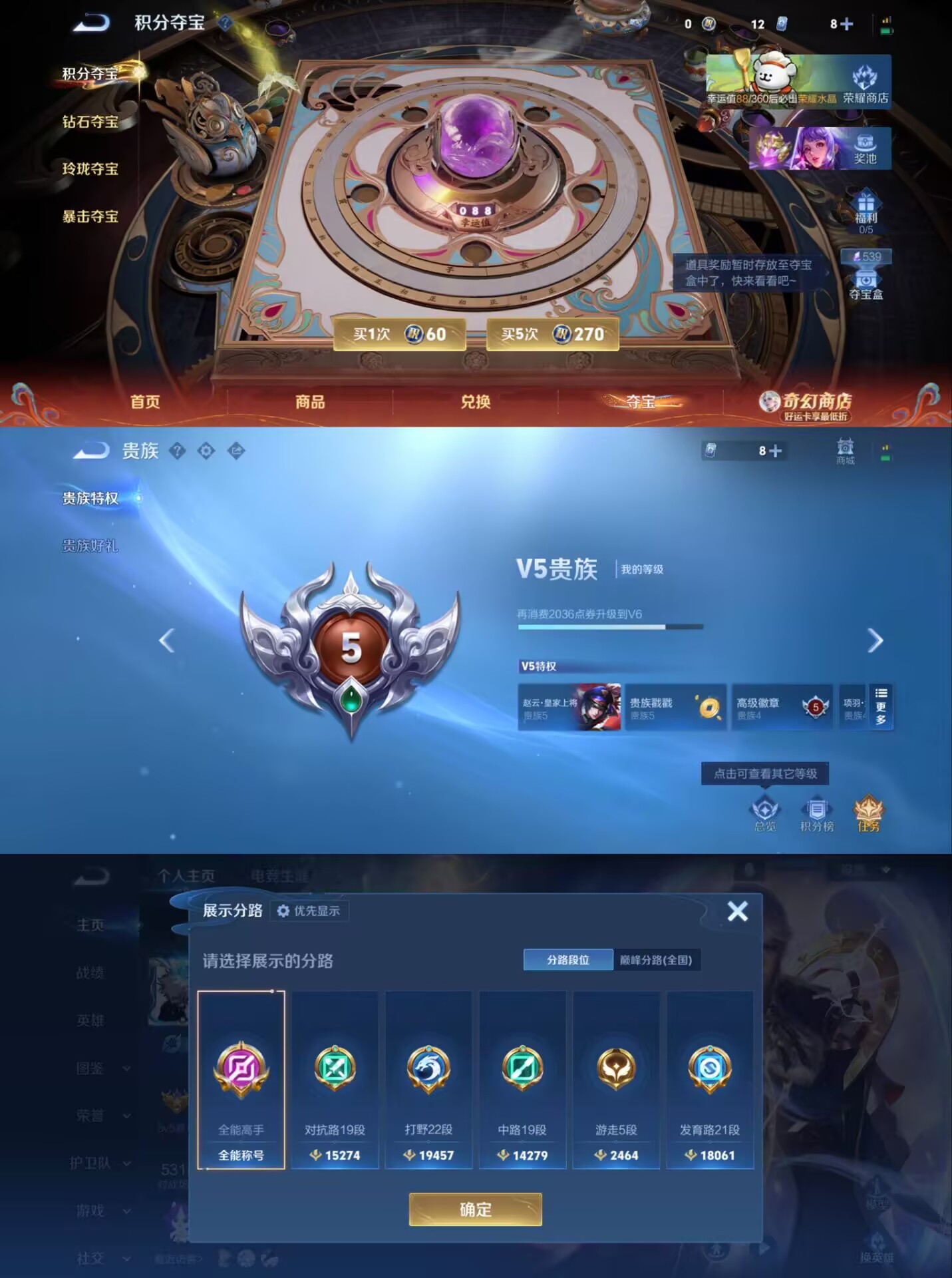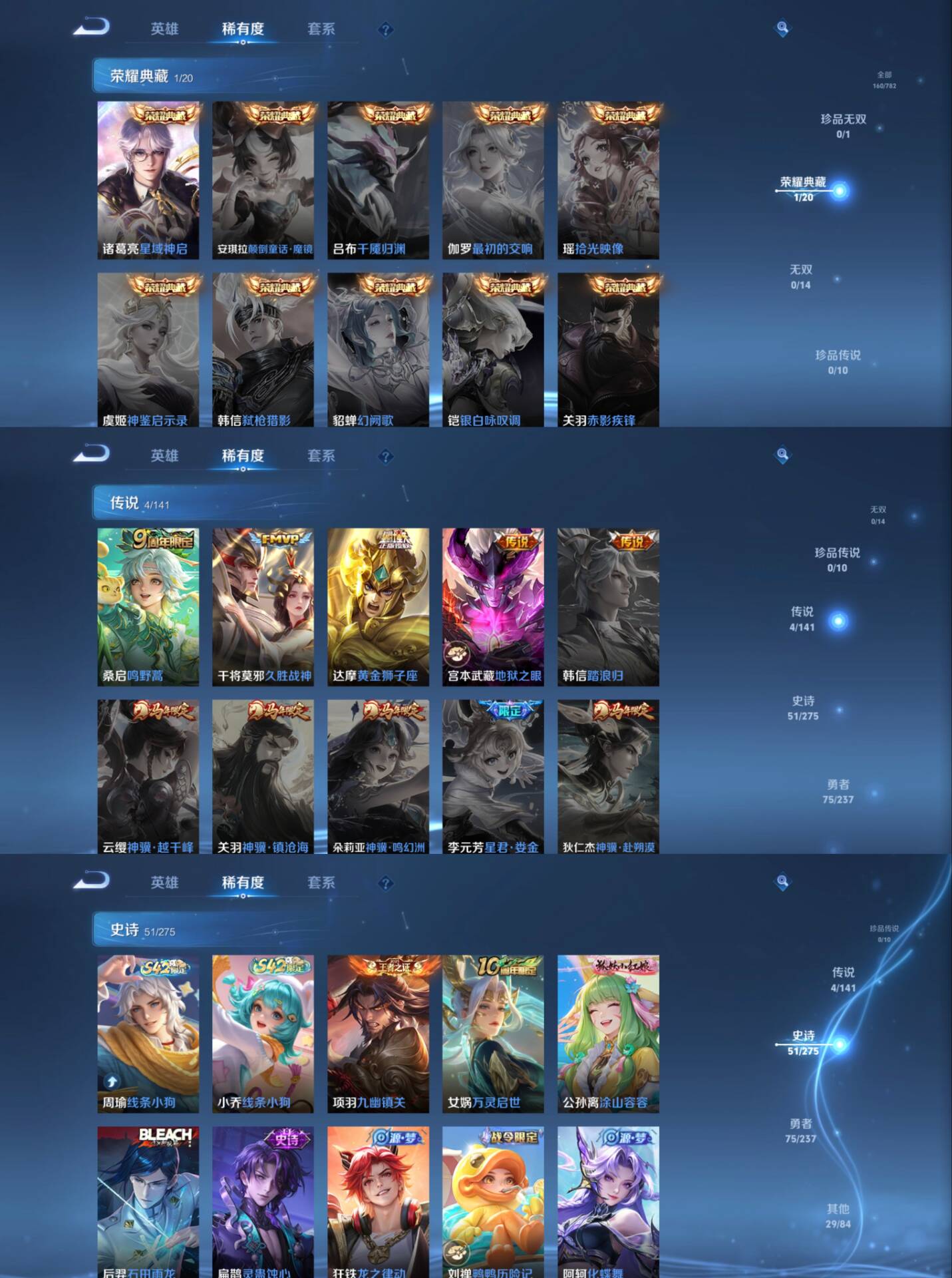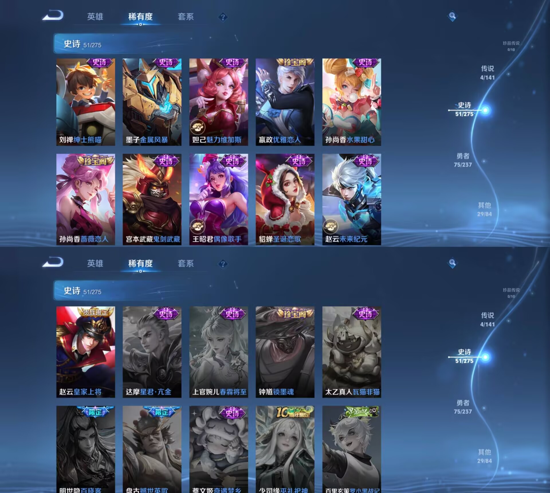贵族等级:v5皮肤数:167荣耀典藏1 传说品质4 英雄数:127