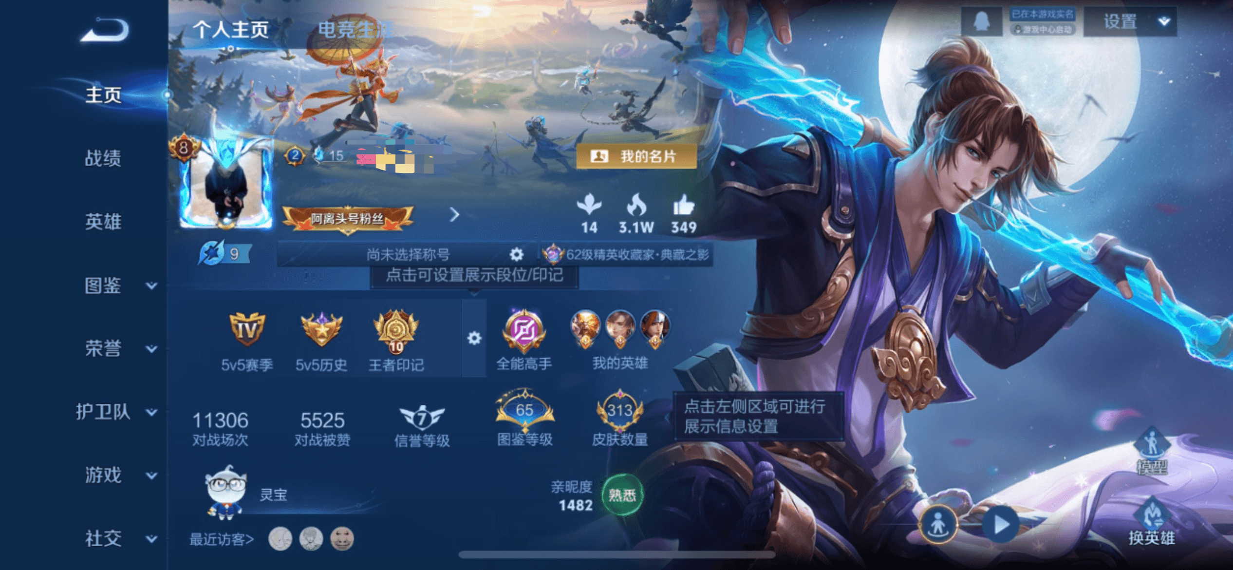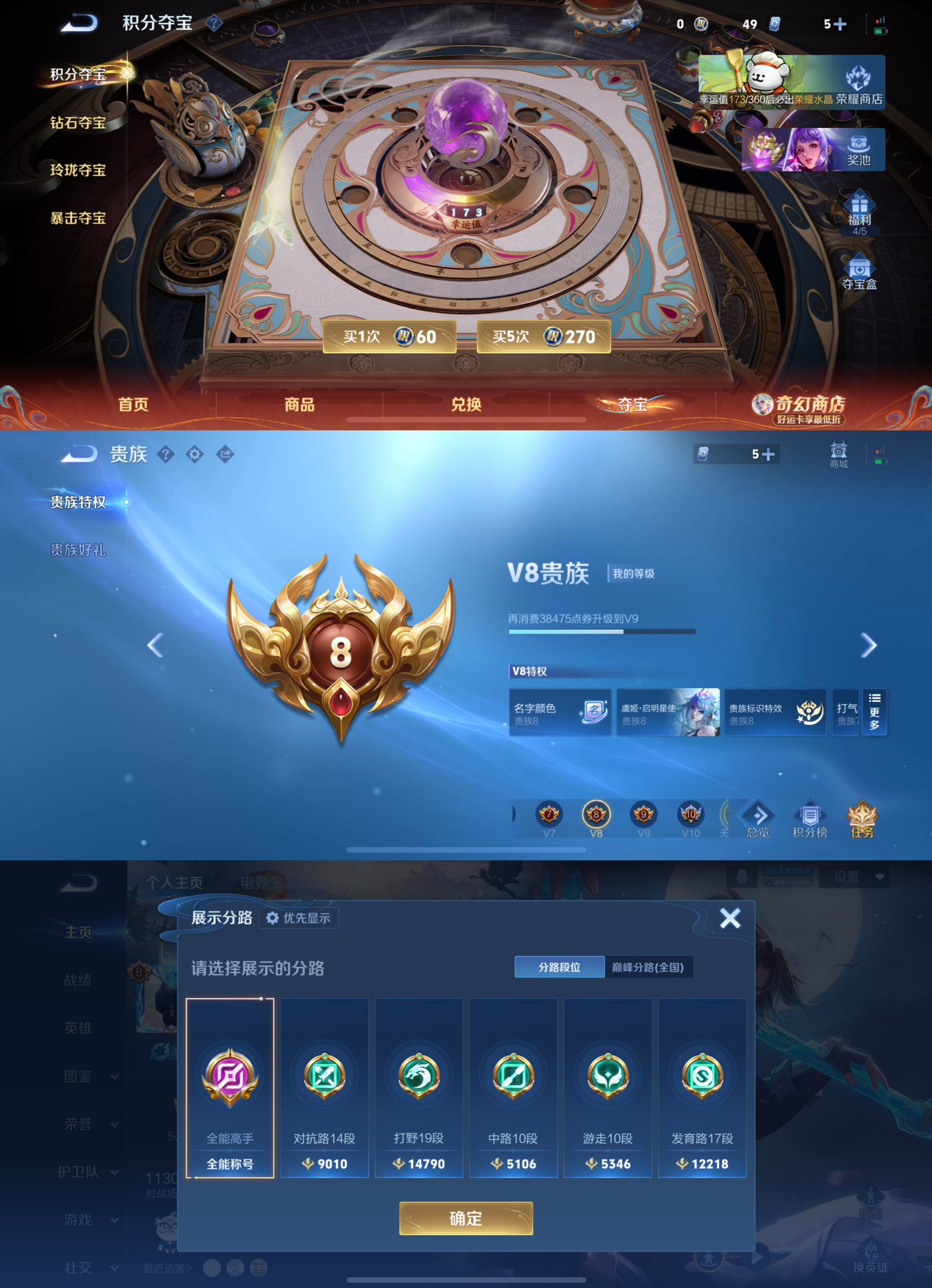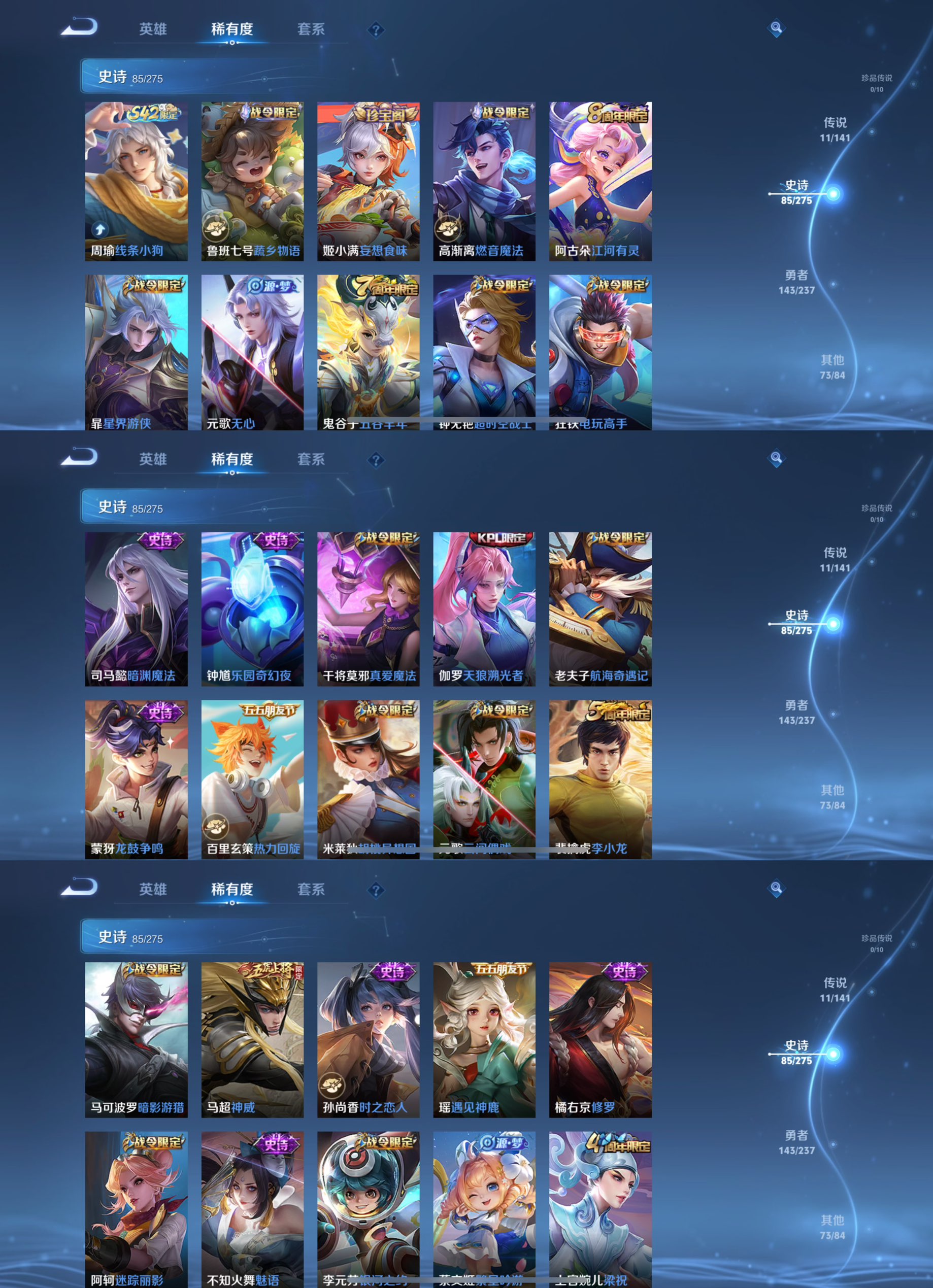 贵族等级:v8皮肤数:313传说品质11 情人节限定2 荣耀典藏1 英雄数:128