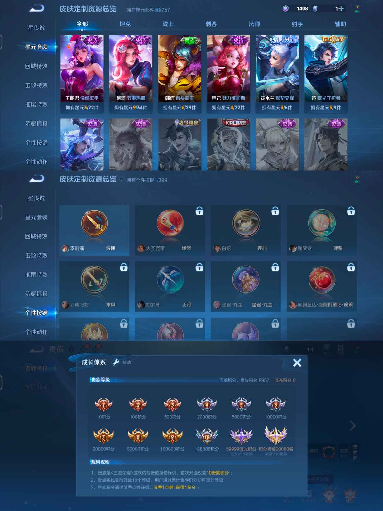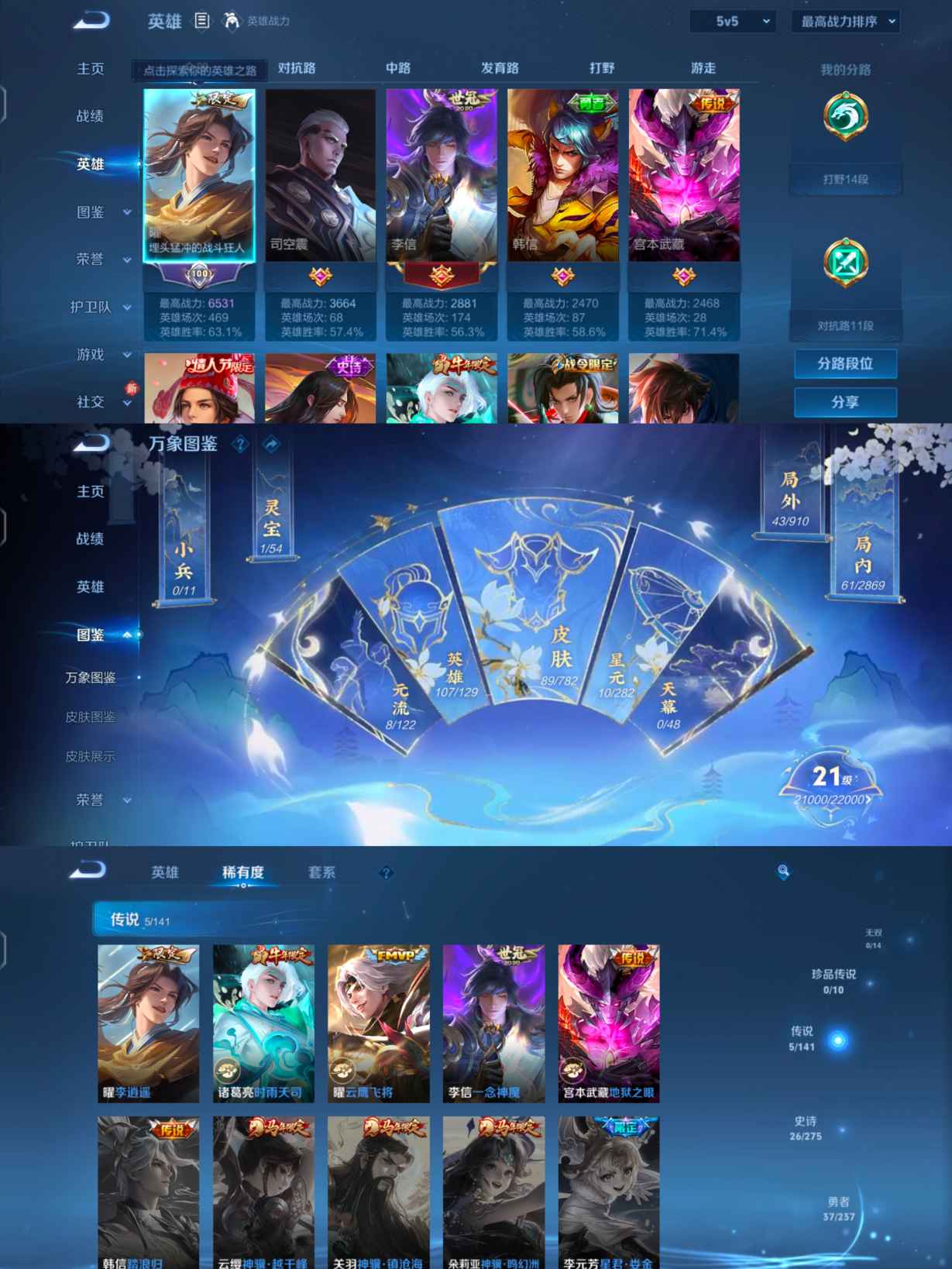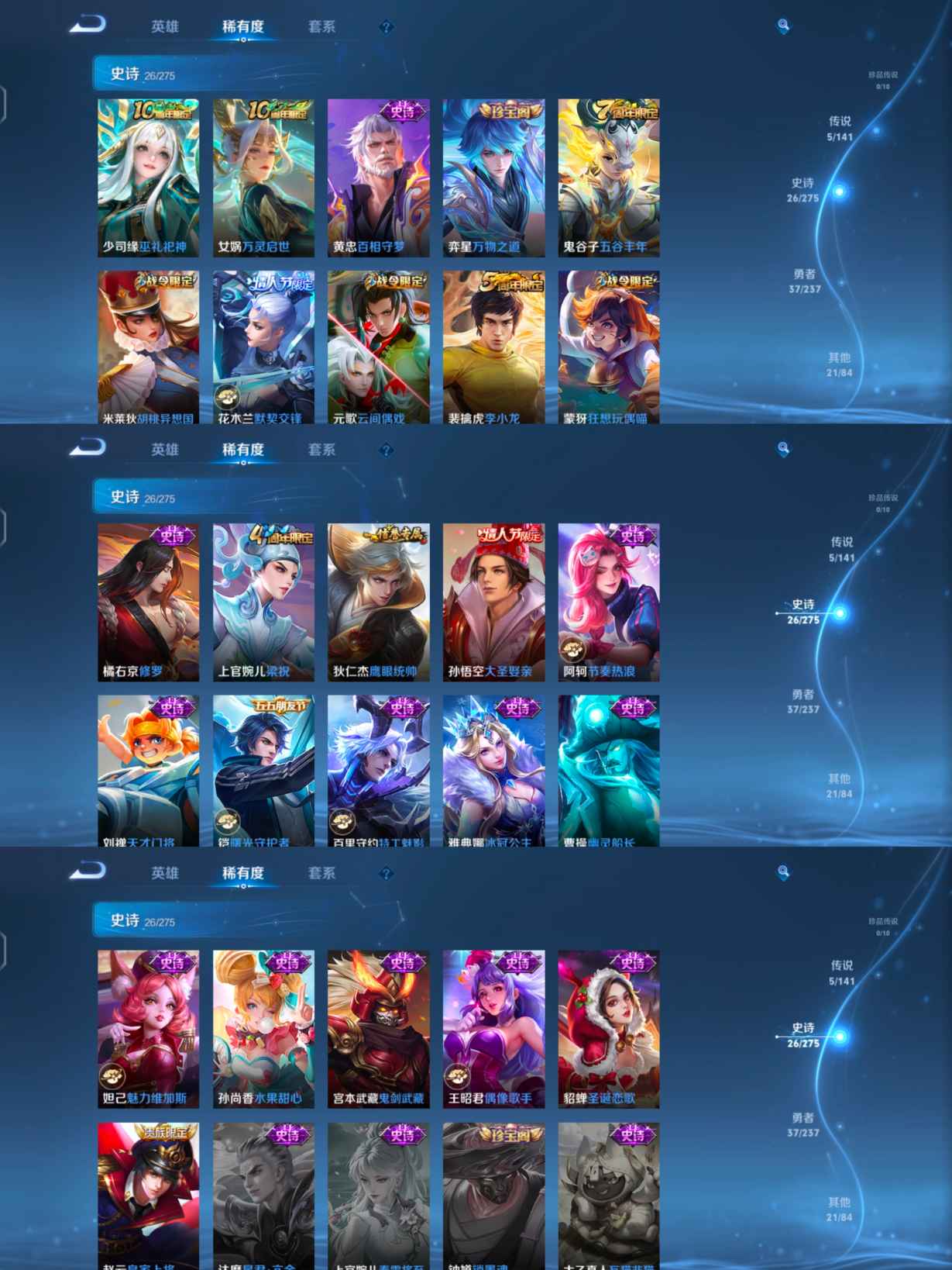 贵族等级:v5皮肤数:89传说品质5 生肖限定1 情人节限定2 英雄数:107