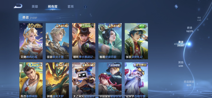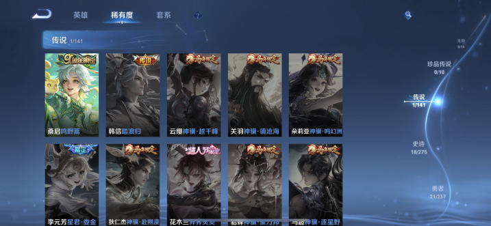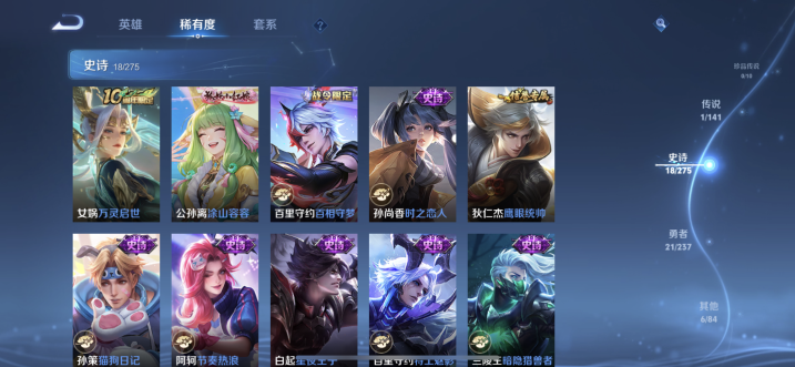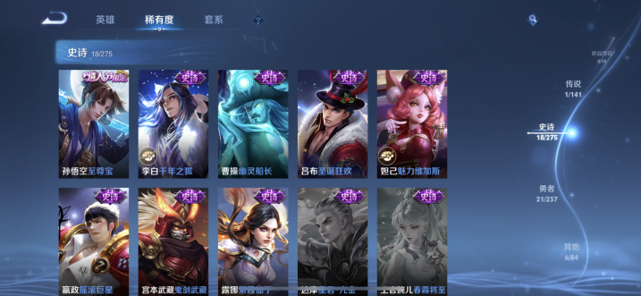 贵族等级:v3皮肤数:46情人节限定1 传说品质1 英雄数:87