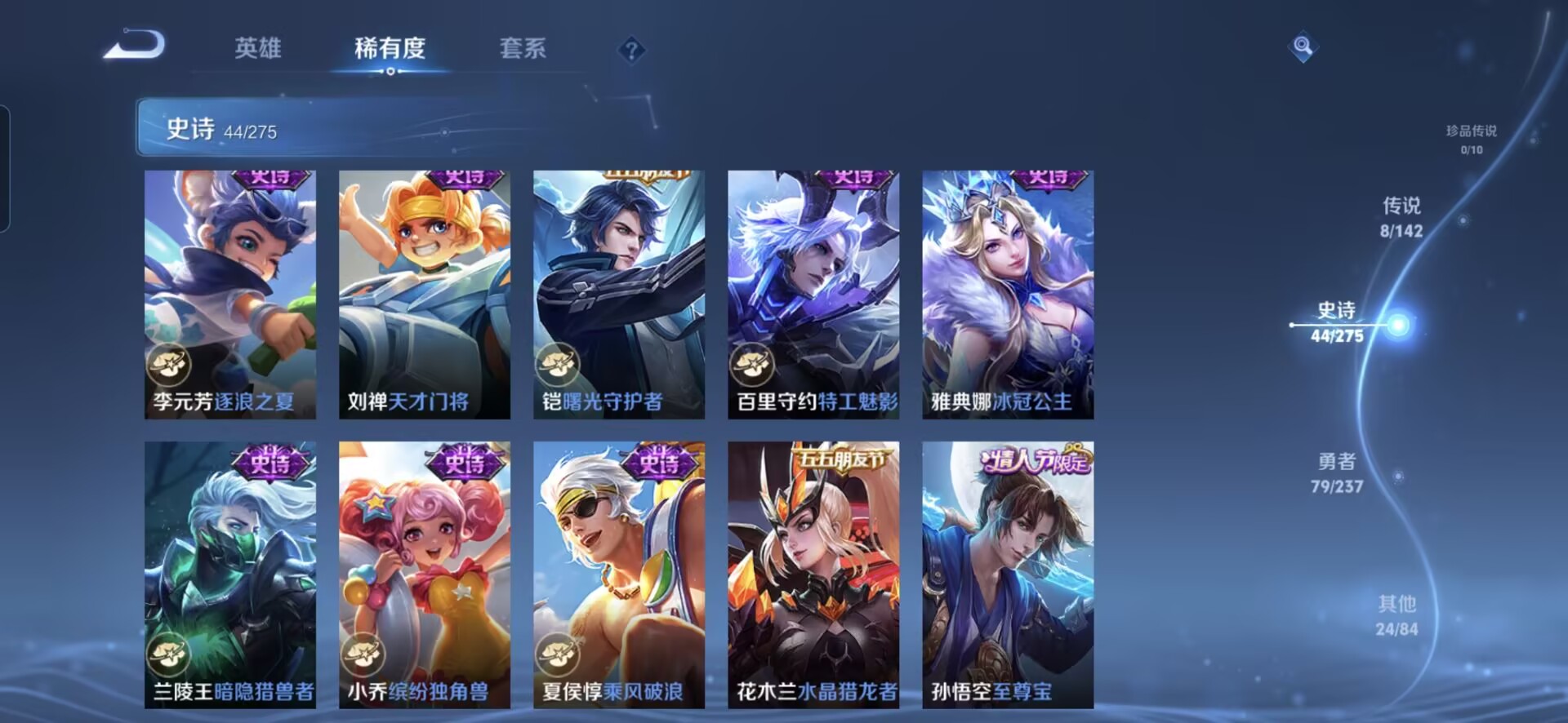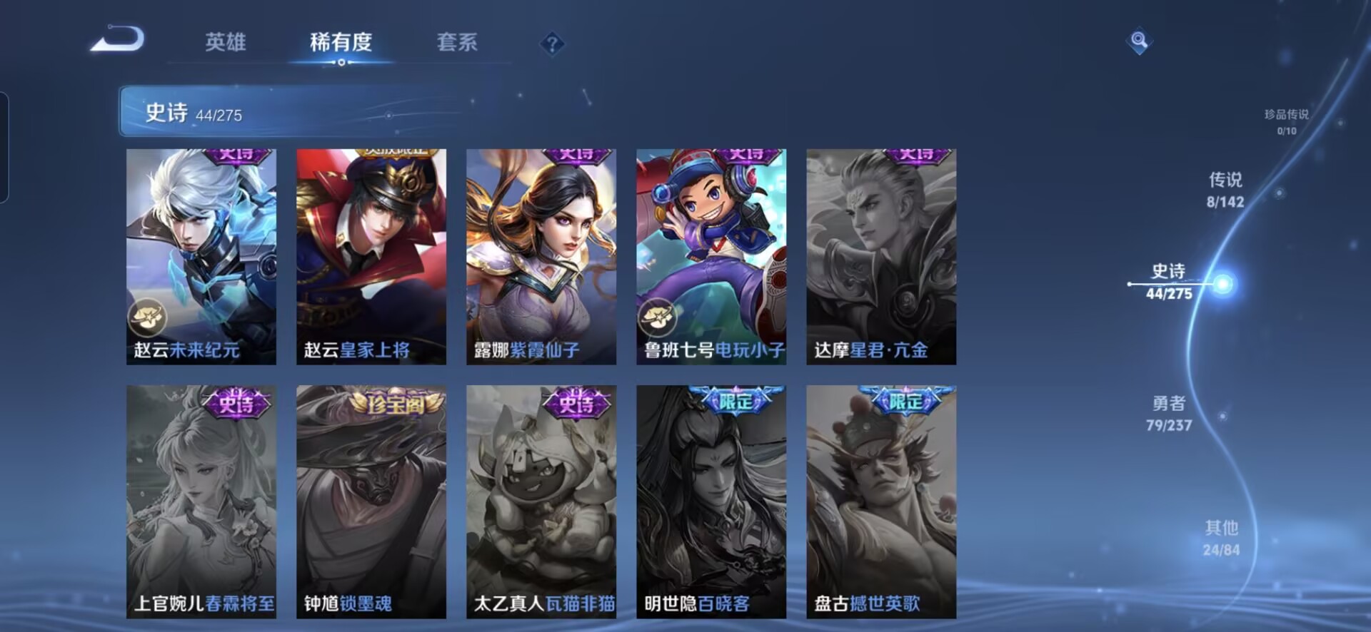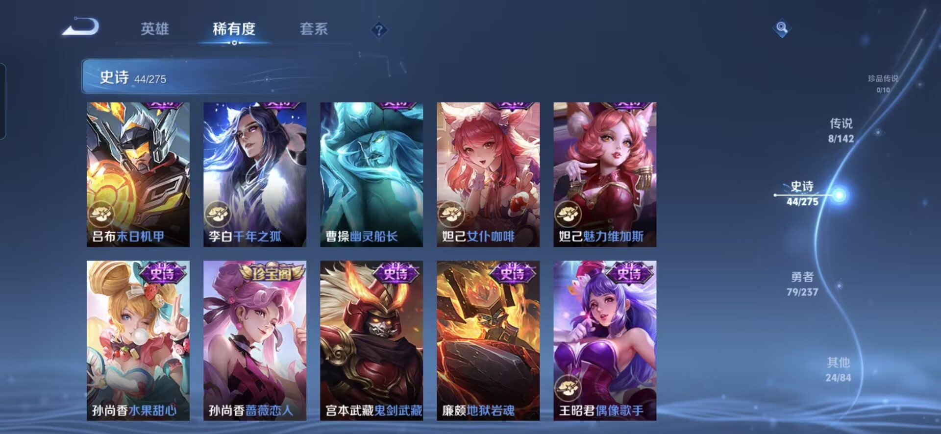 贵族等级:v5皮肤数:155传说品质8 情人节限定1 英雄数:126