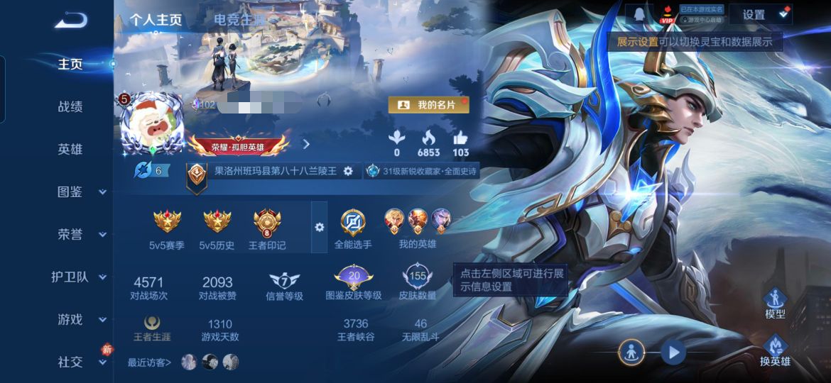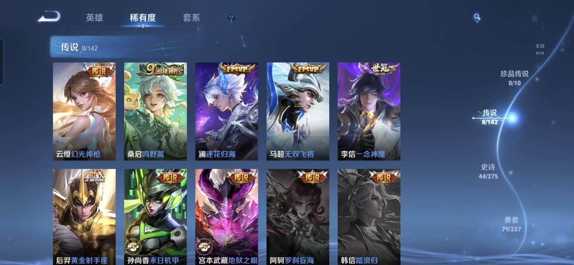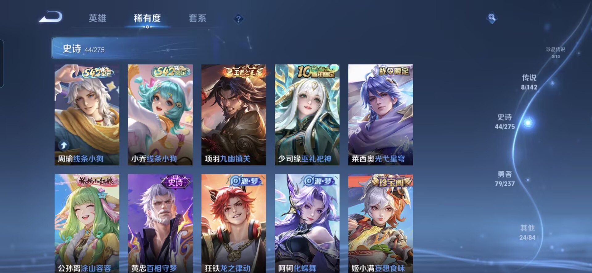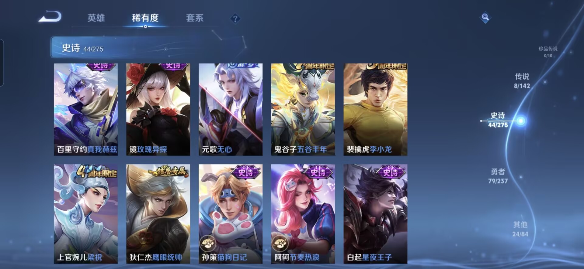 贵族等级:v5皮肤数:155传说品质8 情人节限定1 英雄数:126