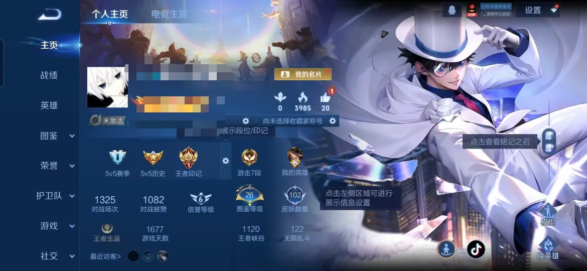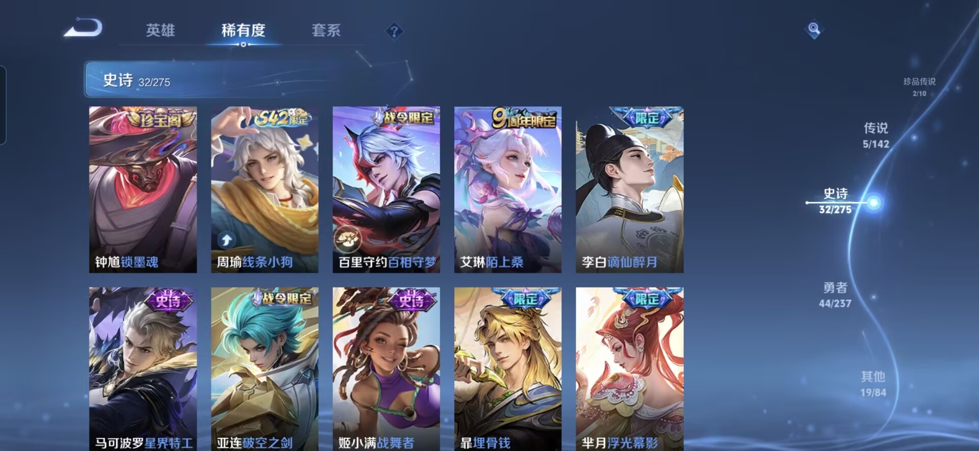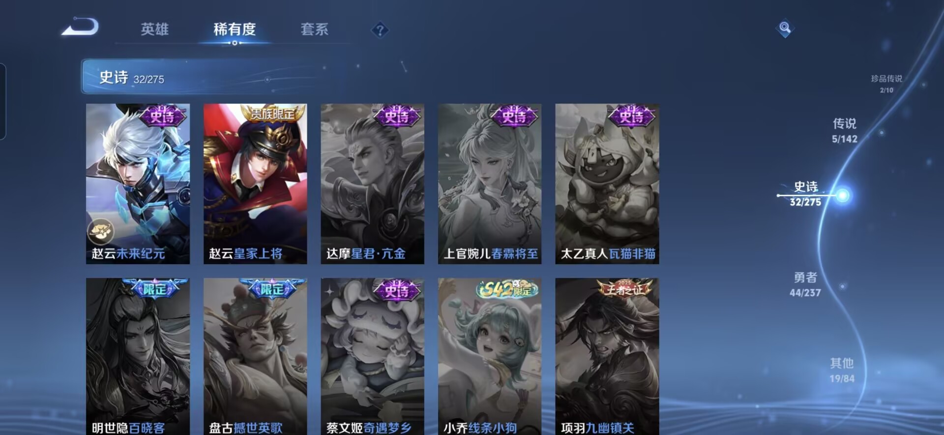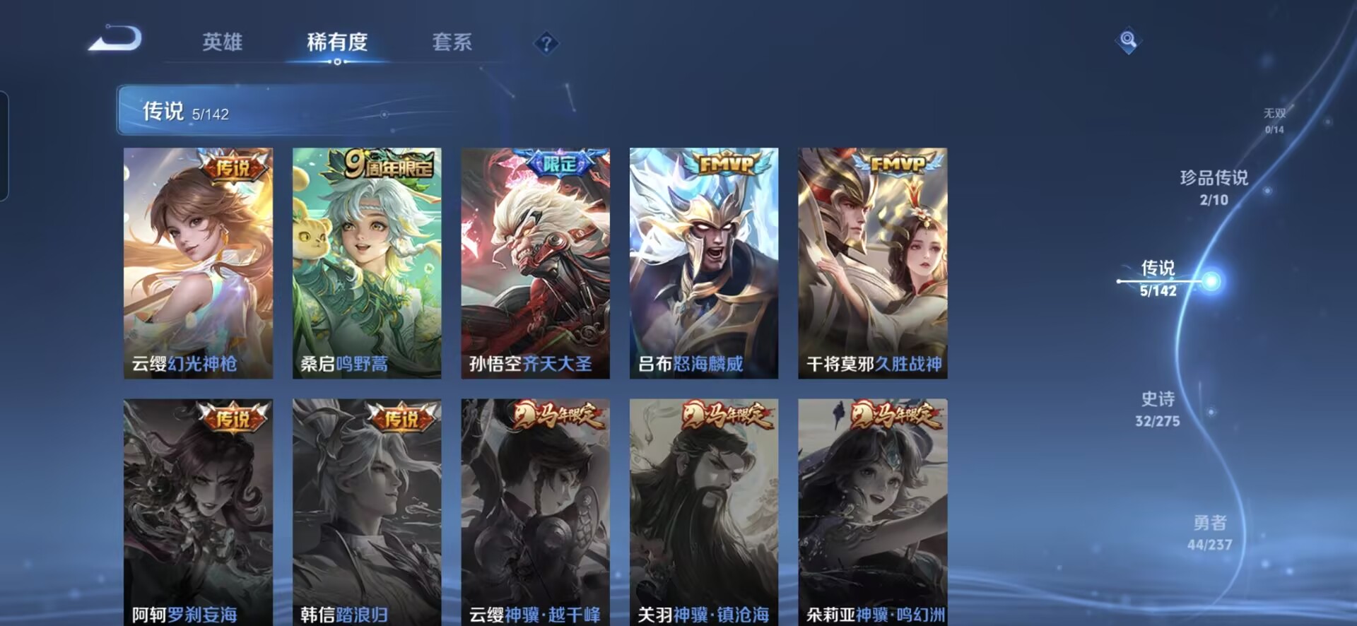贵族等级:v6皮肤数:102传说品质5 珍品传说2 英雄数:121