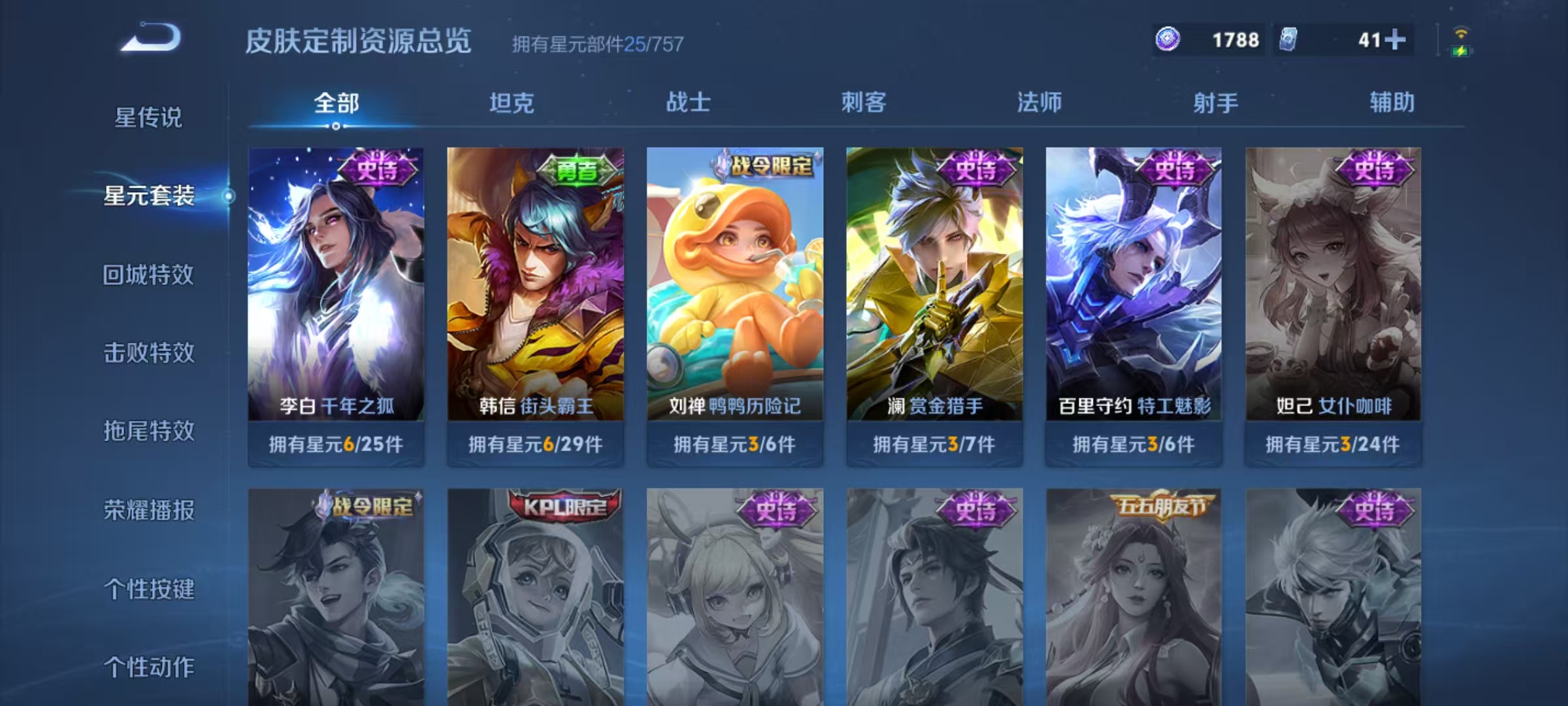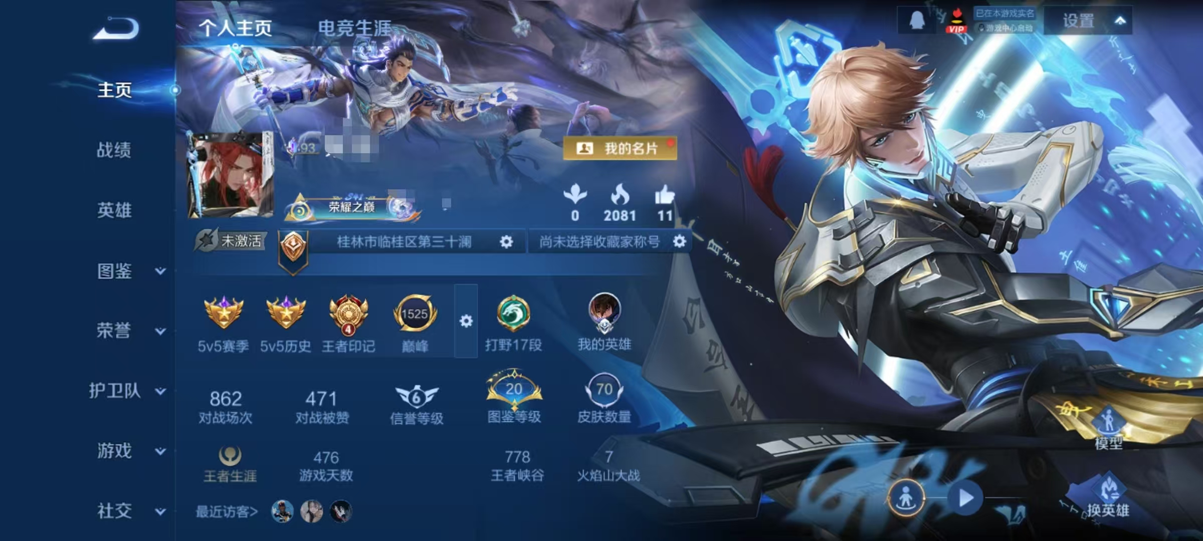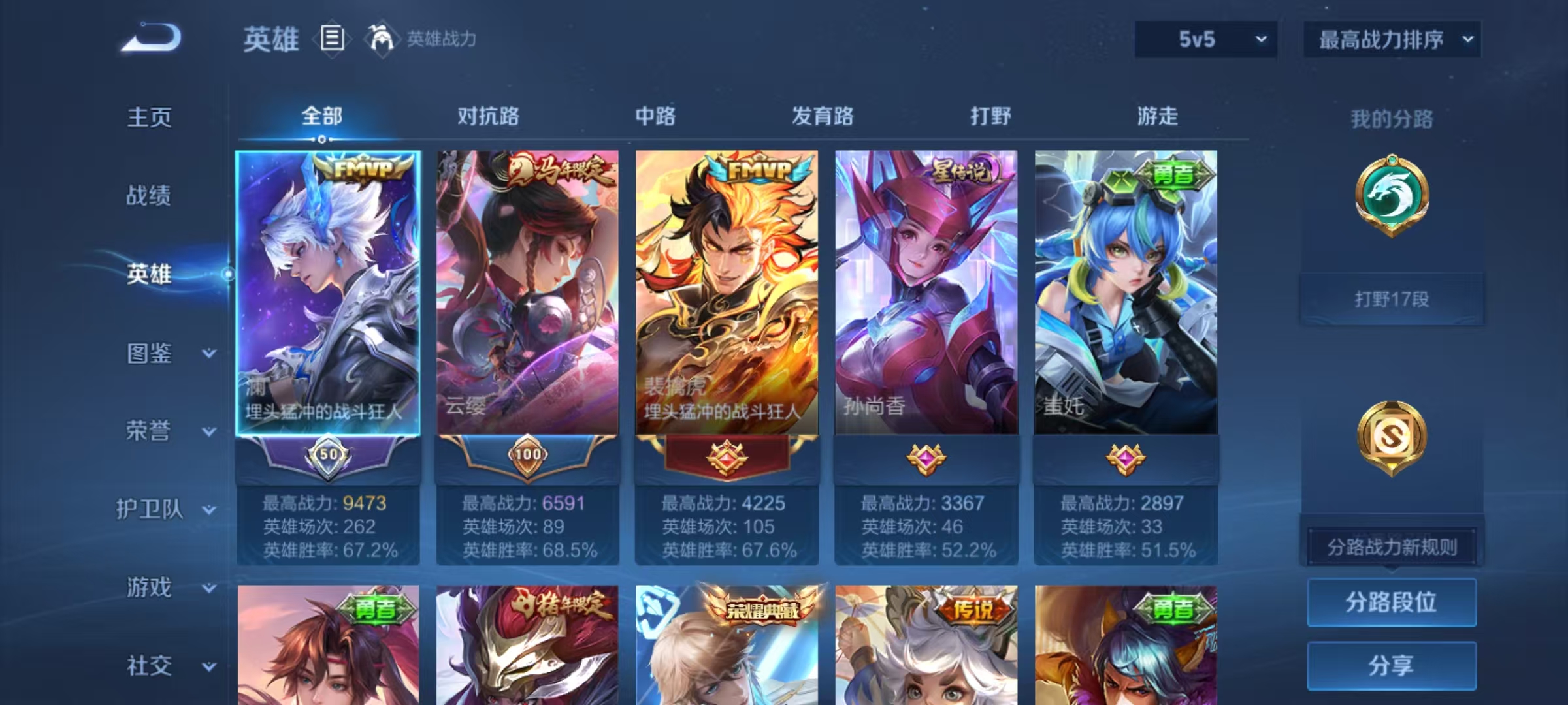 贵族等级:v6皮肤数:70传说品质9 生肖限定3 荣耀典藏1 英雄数:66