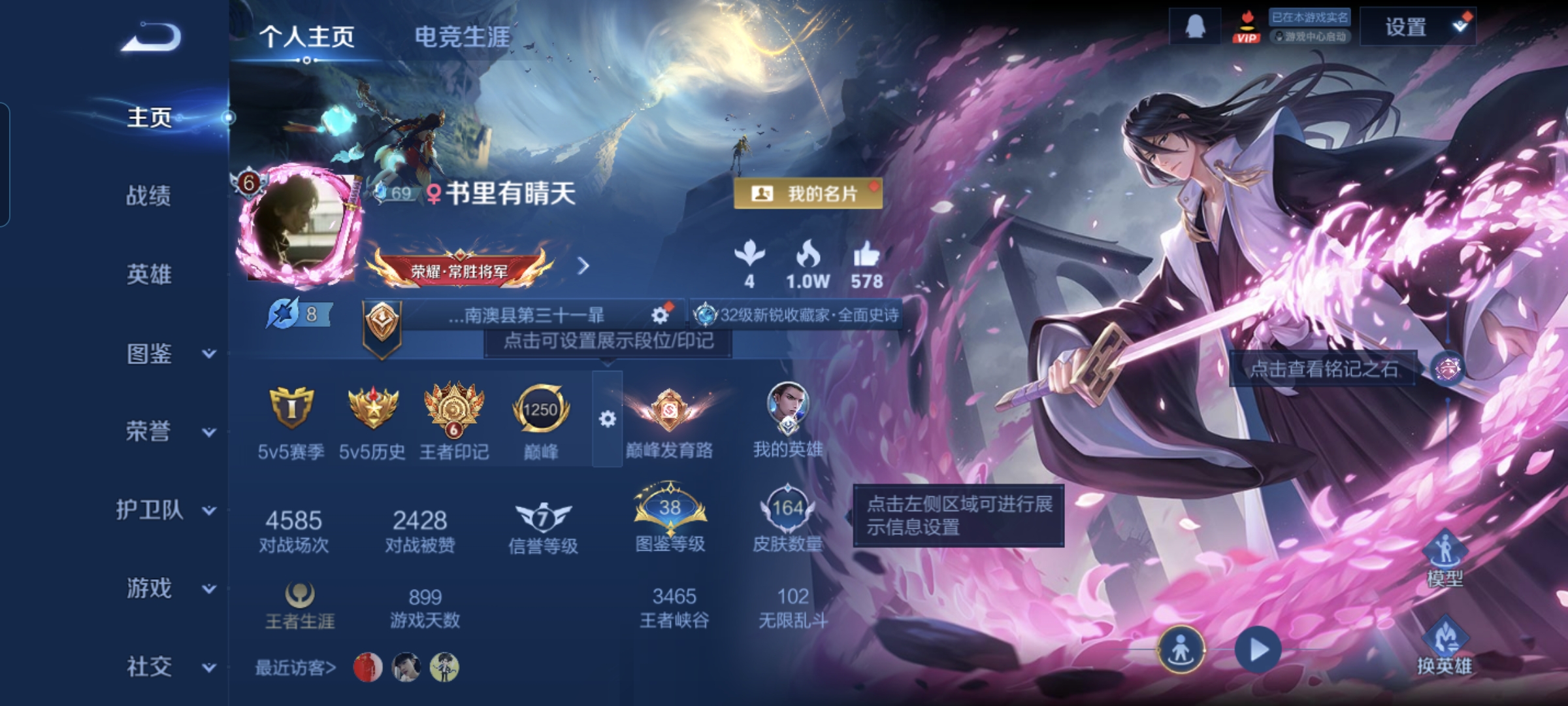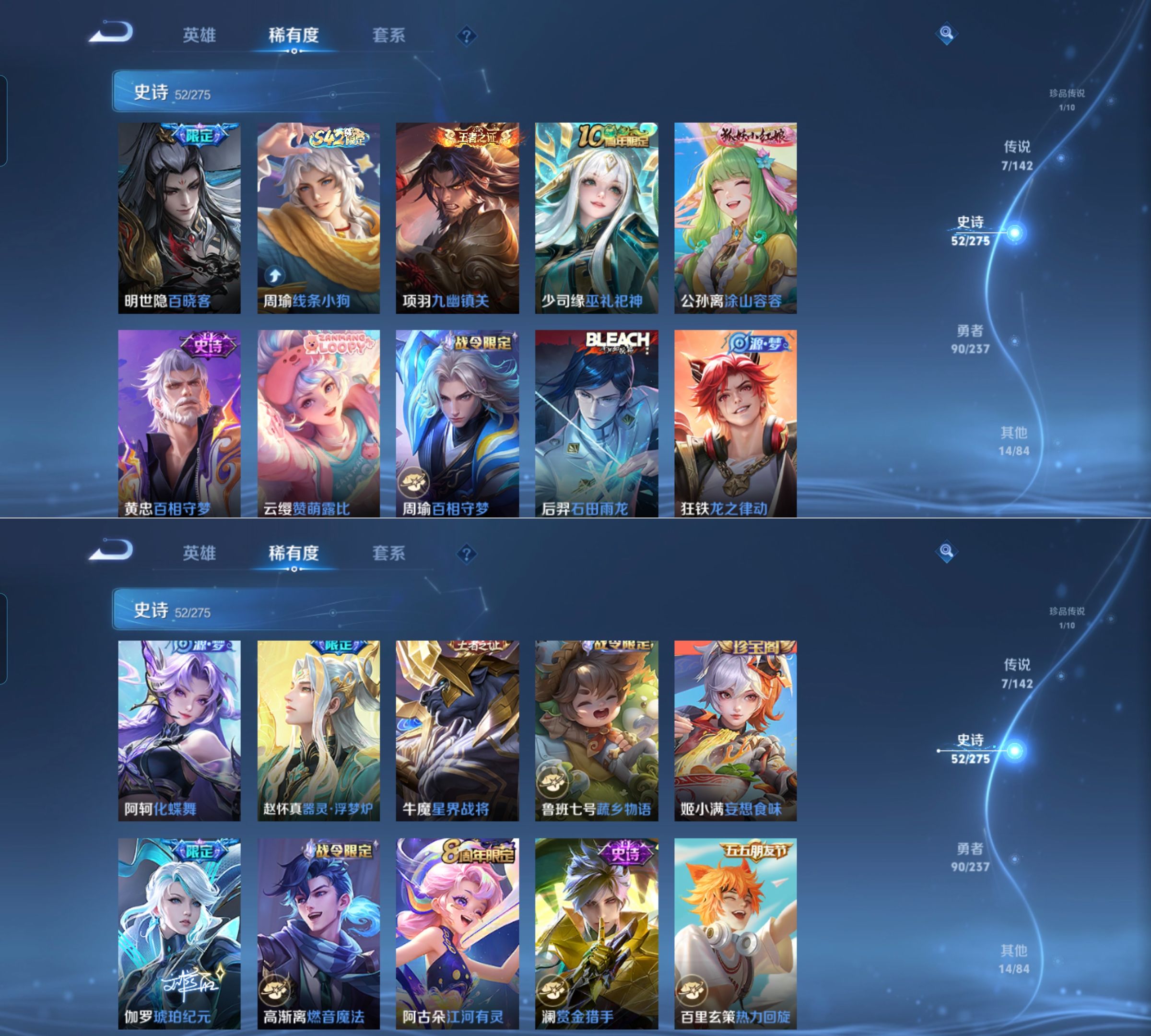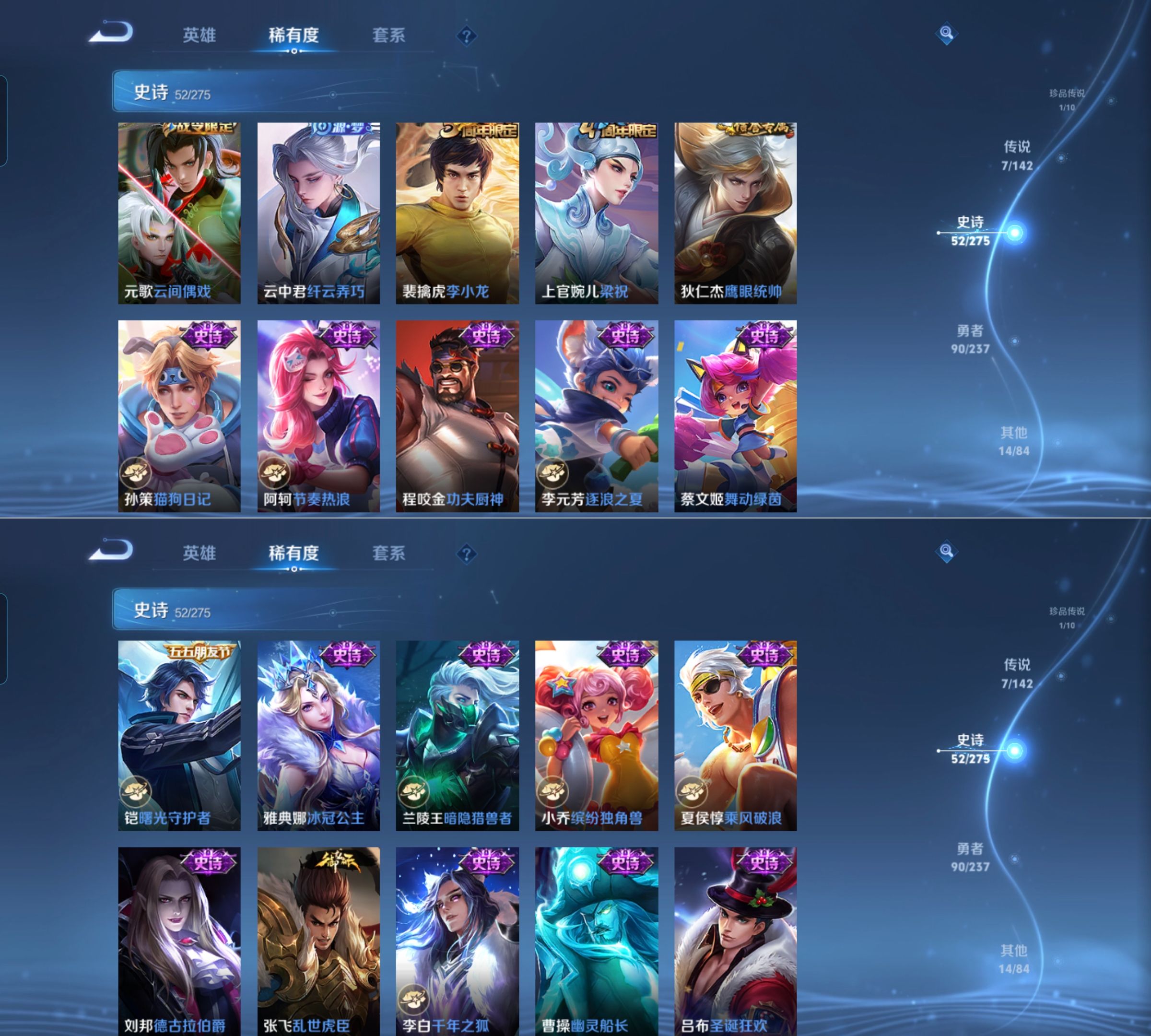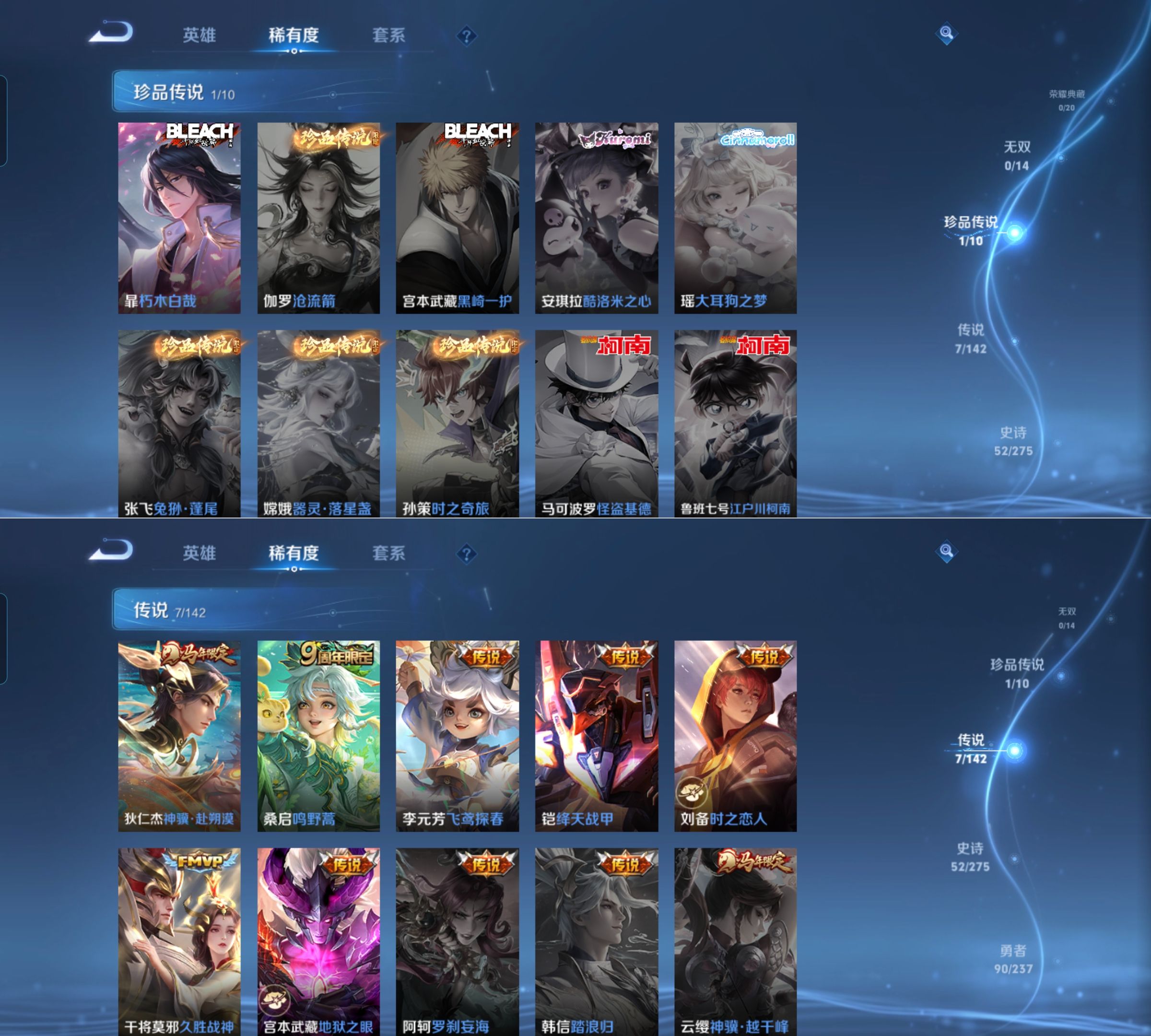 贵族等级:v6皮肤数:164珍品传说1 传说品质7 生肖限定1 英雄数:123