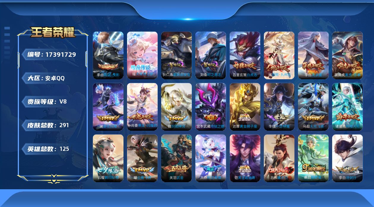 传说品质_后羿_黄金射手座传说品质_后羿_无尽星芒传说品质_关羽_武圣传说品质_澜_逐花归海传说品质_澜_愿照·九州拓传说品质_诸葛亮_时雨天司传说品质_吕布_曦玄引传说品质_马超_无双飞将传说品质_大乔_时之奇旅传说品质_干将莫邪_画中仙传说品质_宫本武藏_地狱之眼传说品质_镜_炽阳神光传说品质_李信_一念神魔传说品质_孙尚香_乘龙·问璇玑传说品质_桑启_鸣野蒿传说品质_刘备_时之恋人传说品质_项羽_无限倾心传说品质_云缨_鹤归松栖传说品质_李白_凤求凰传说品质_李白_诗剑行传说品质_百里守约_碎云传说品质_曜_云鹰飞将传说品质_孙策_末日机甲传说品质_狄仁杰_超时空战士传说品质_达摩_黄金狮子座传说品质_铠_绛天战甲传说品质_铠_冥王哈迪斯传说品质_鲁班七号_时之奇旅传说品质_虞姬_启明星使传说品质_百里玄策_白虎志传说品质_赵云_淬星耀世传说品质_裴擒虎_寅虎·赤拳传说品质_王昭君_乞巧织情
