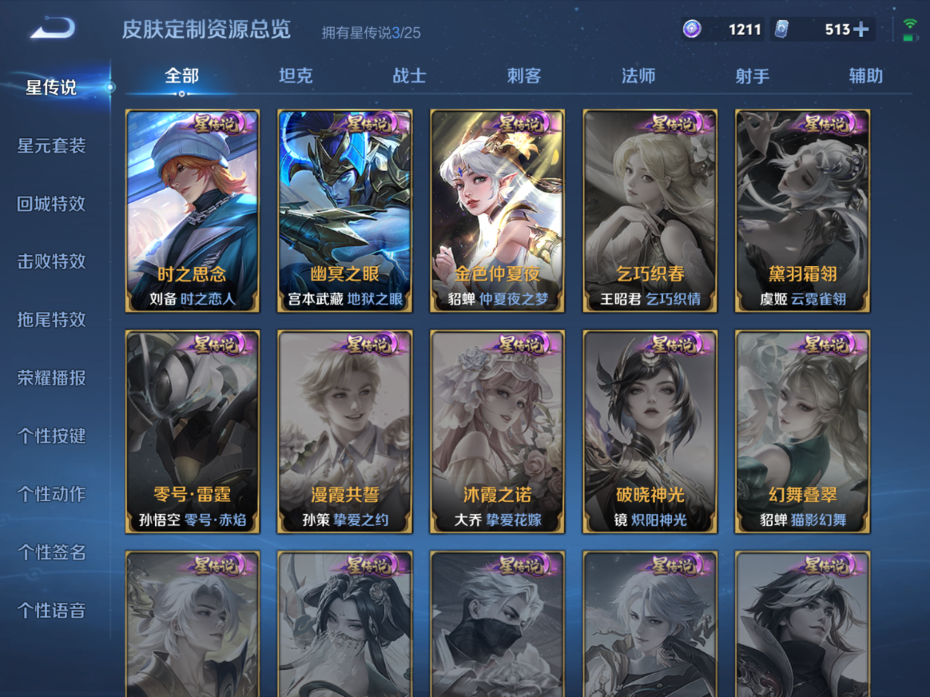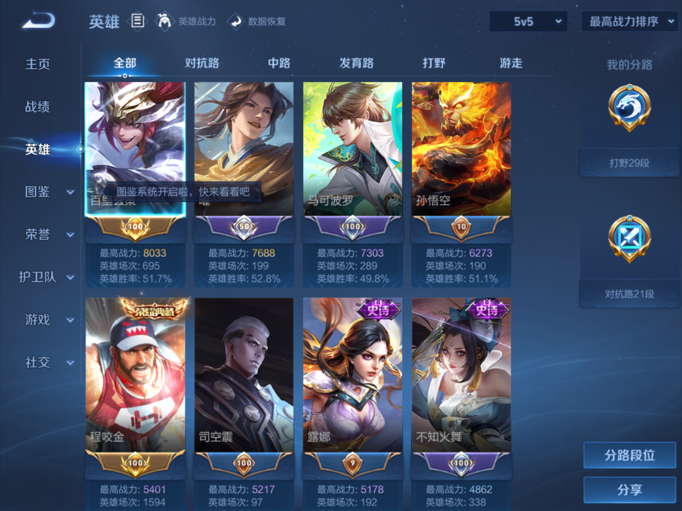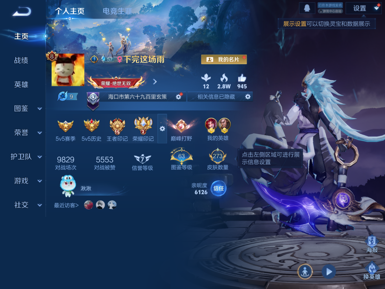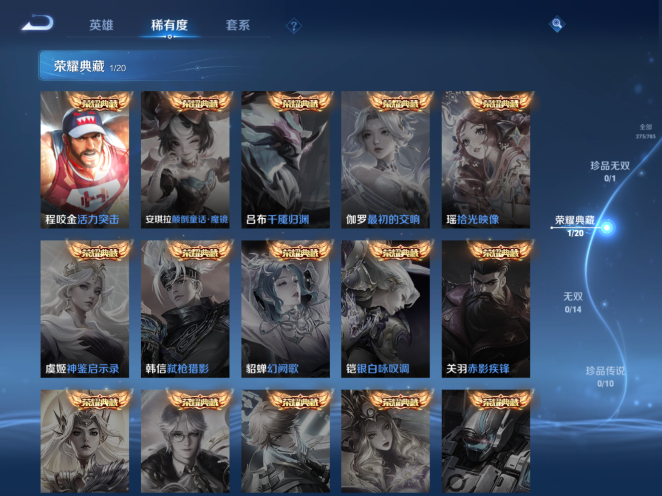 贵族等级:v8皮肤数:273情人节限定4 传说品质15 生肖限定4 荣耀典藏1 英雄数:126