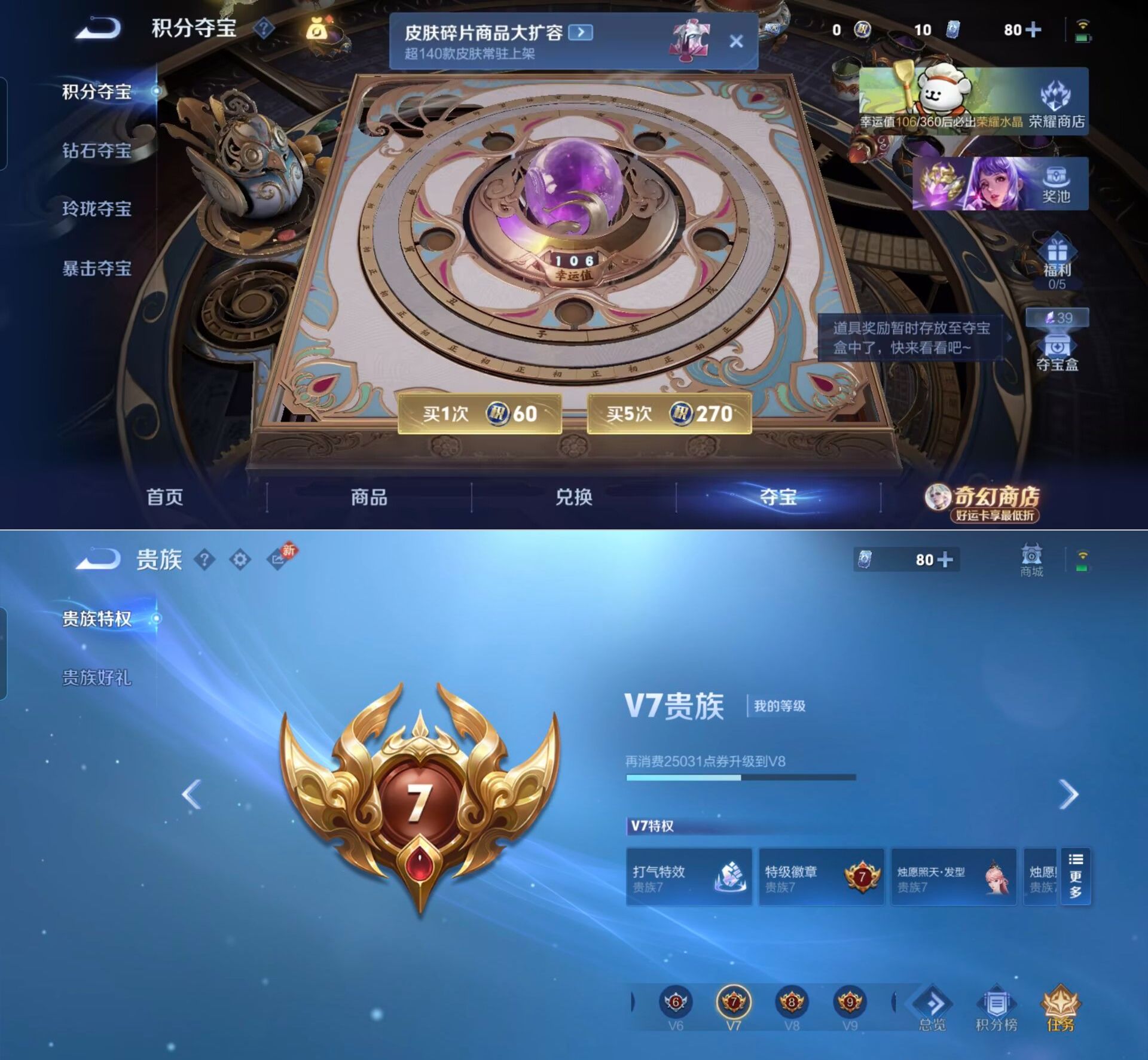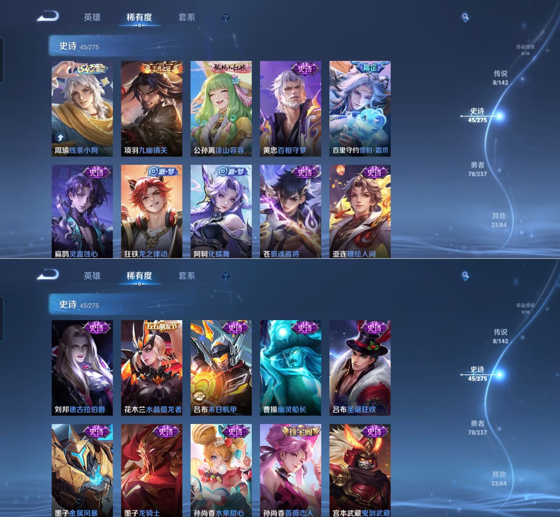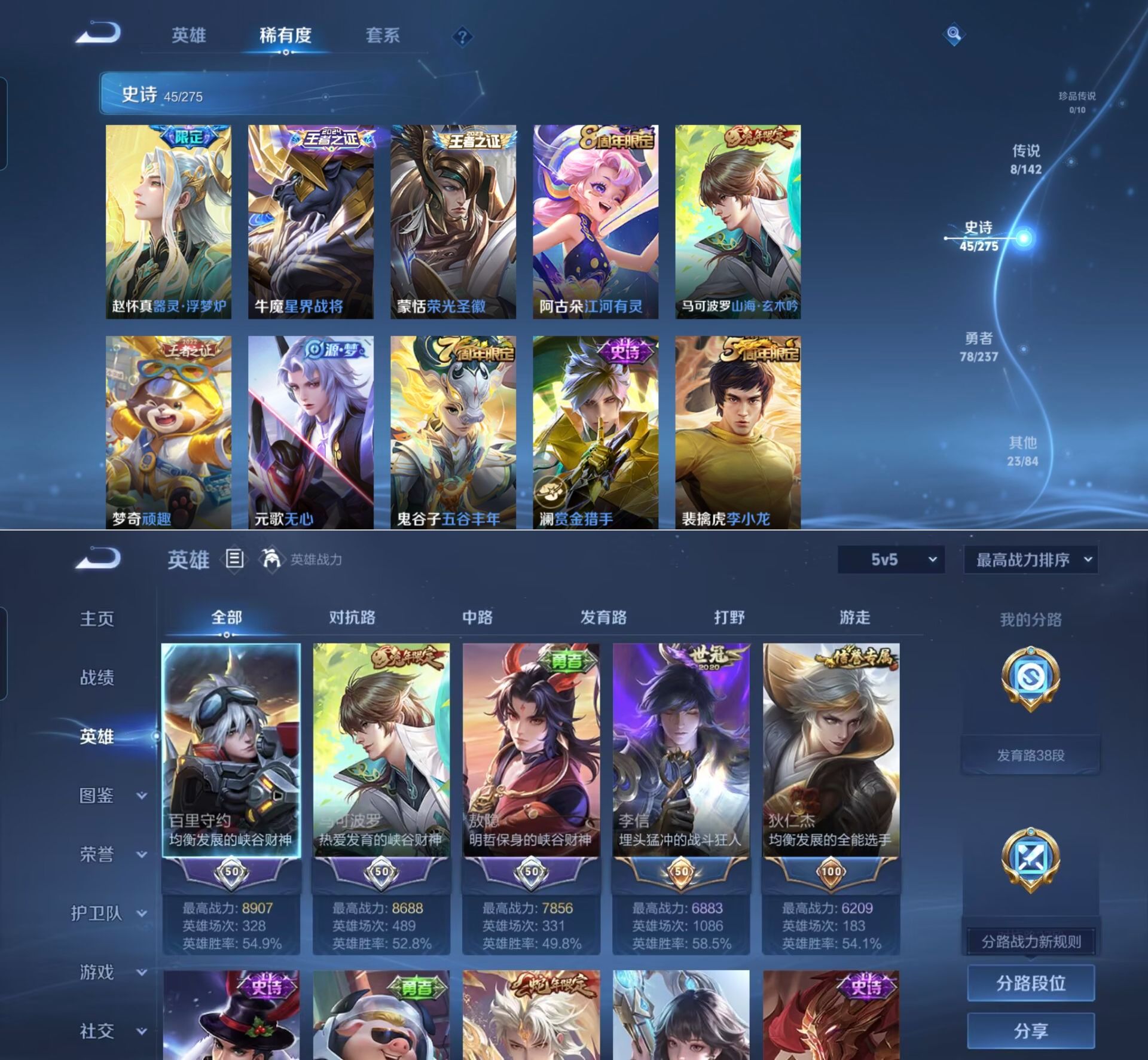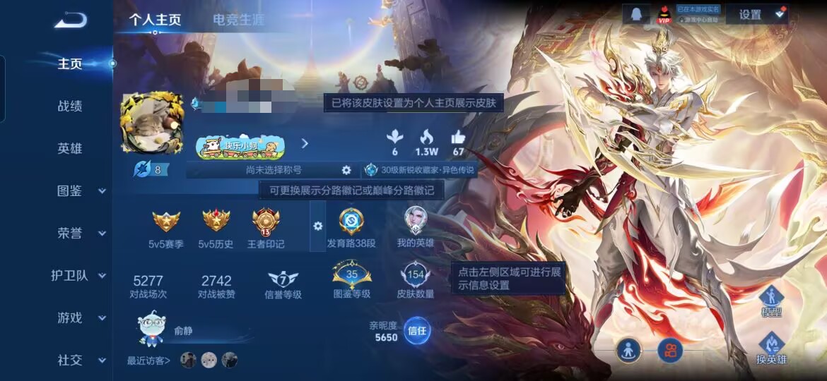 贵族等级:v7皮肤数:154传说品质8 生肖限定5 英雄数:114