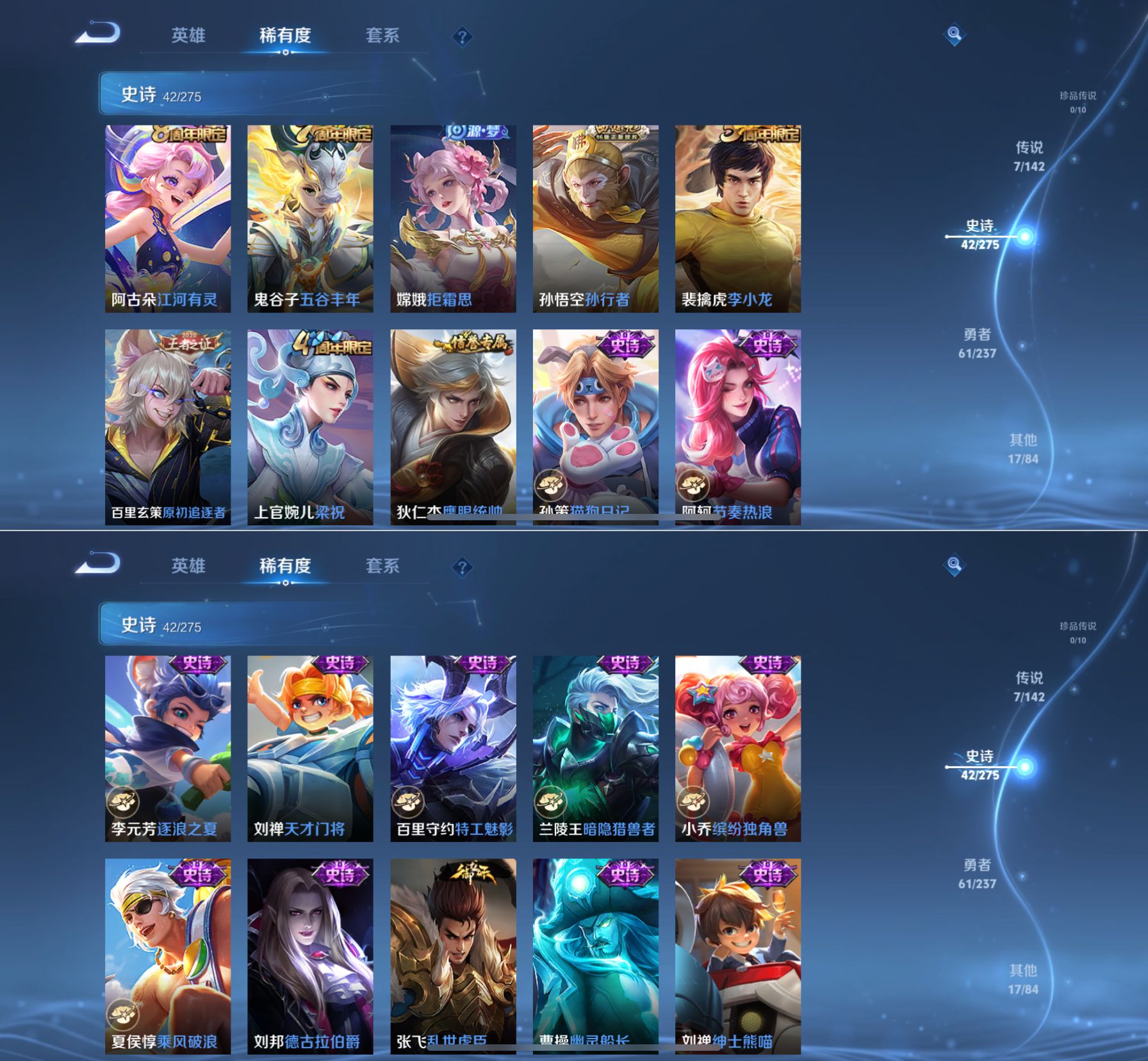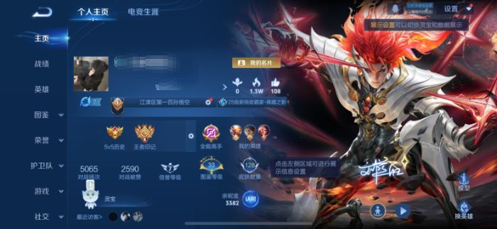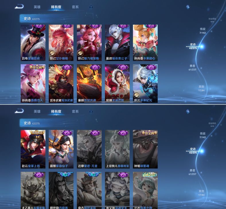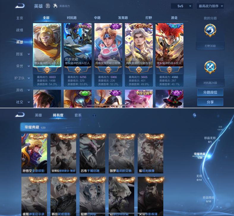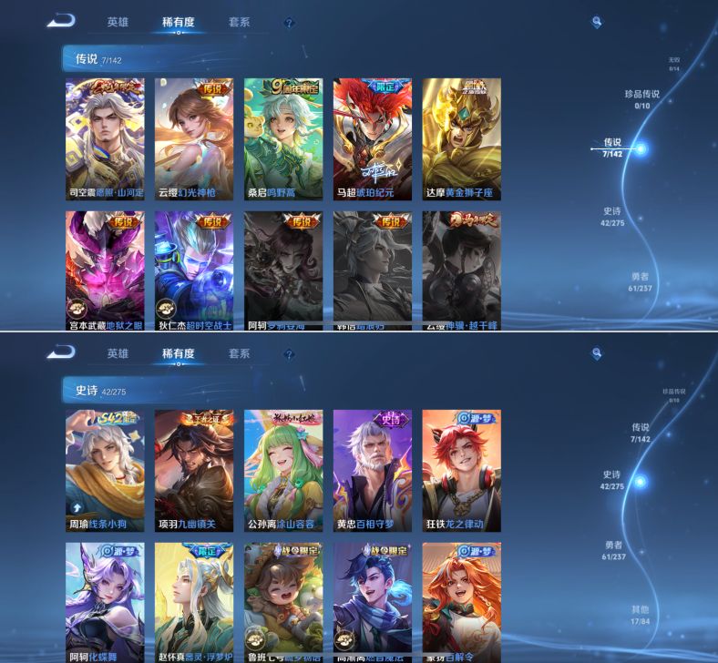 贵族等级:v5皮肤数:128传说品质7 生肖限定1 荣耀典藏1 英雄数:125