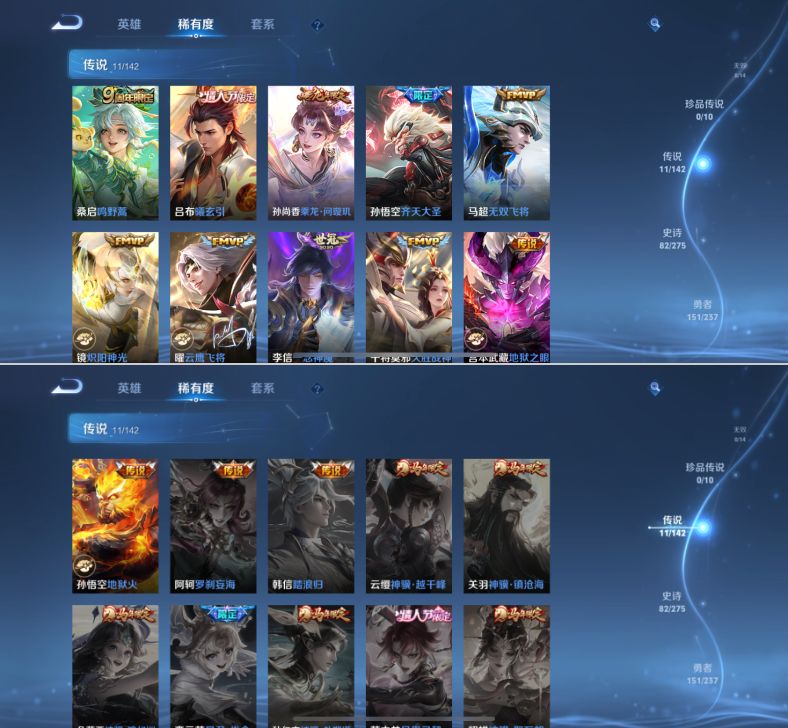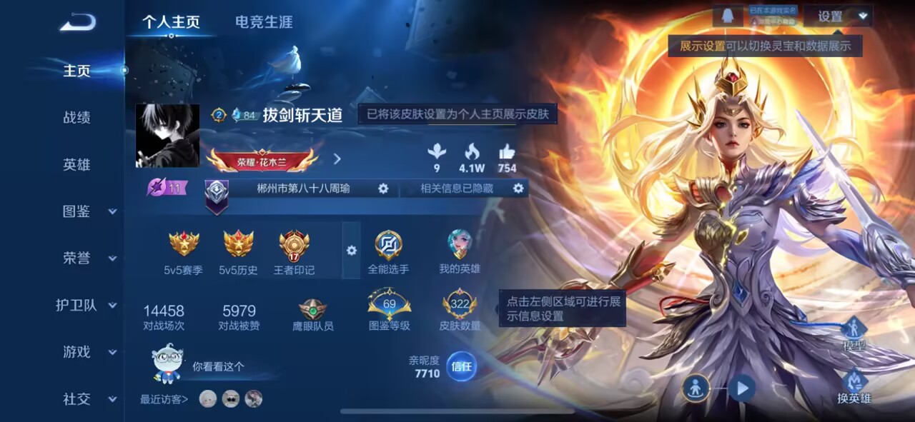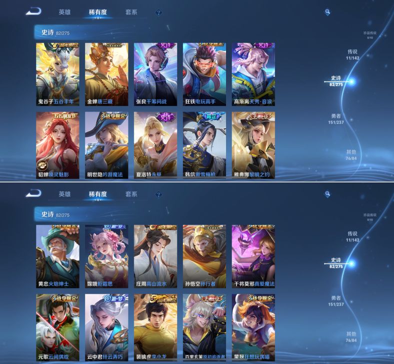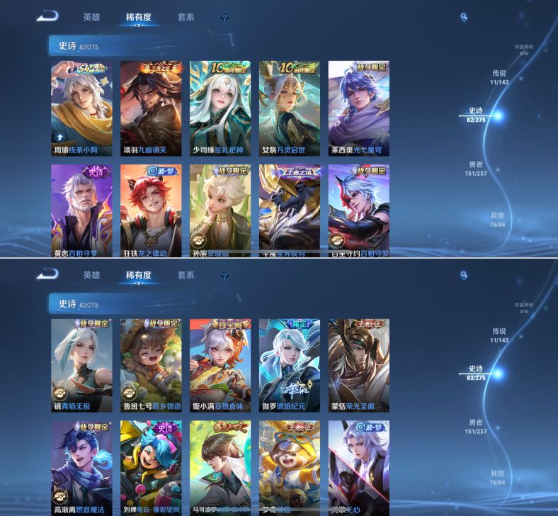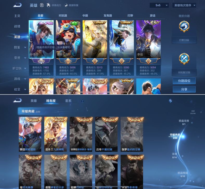 贵族等级:v7皮肤数:322情人节限定3 传说品质11 荣耀典藏2 生肖限定3 英雄数:128