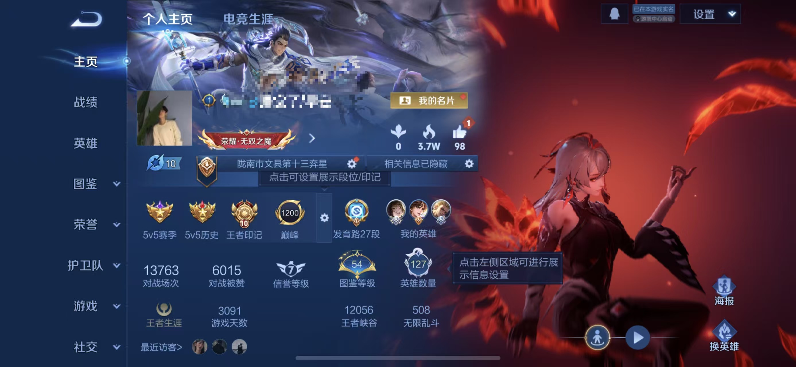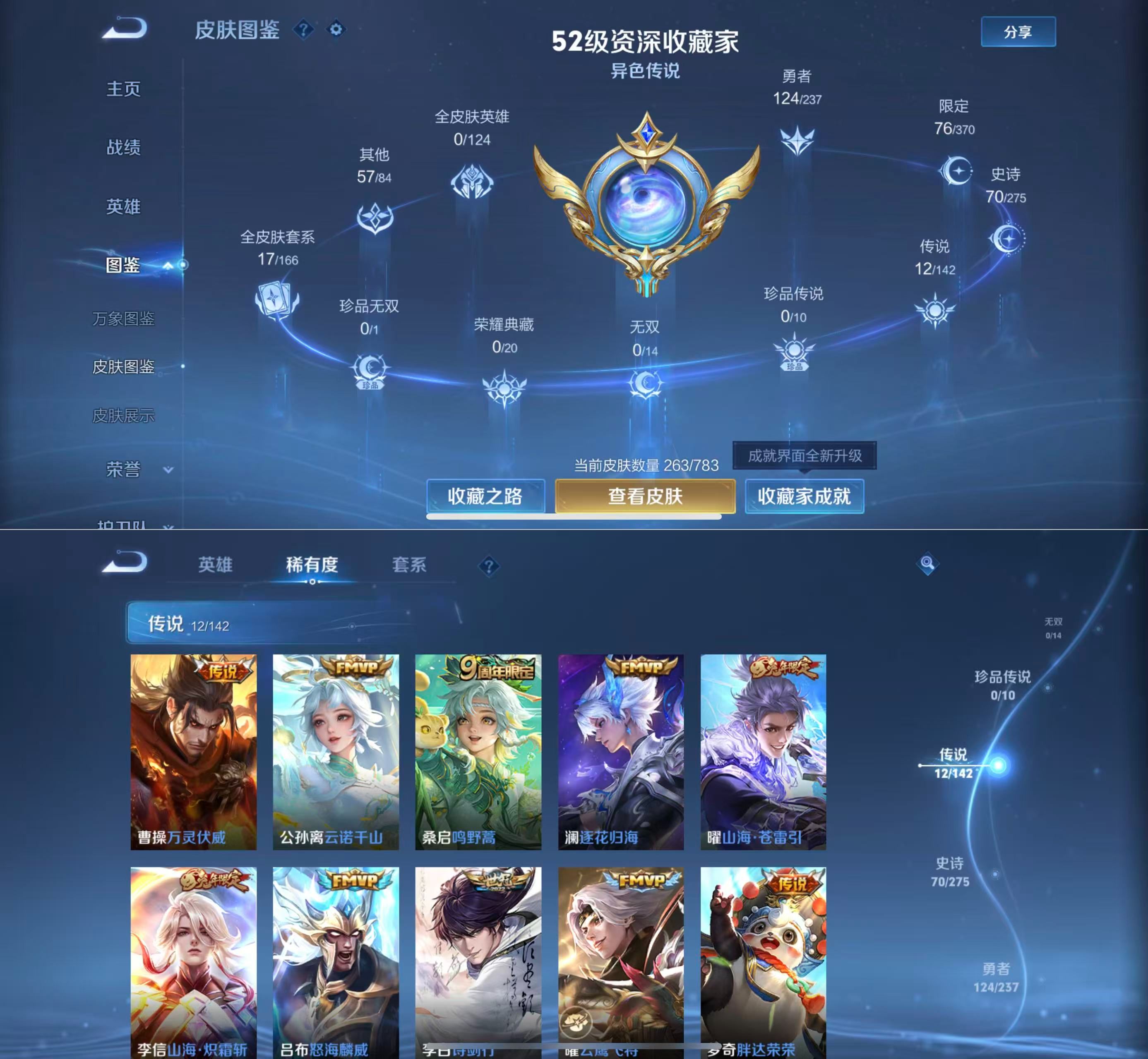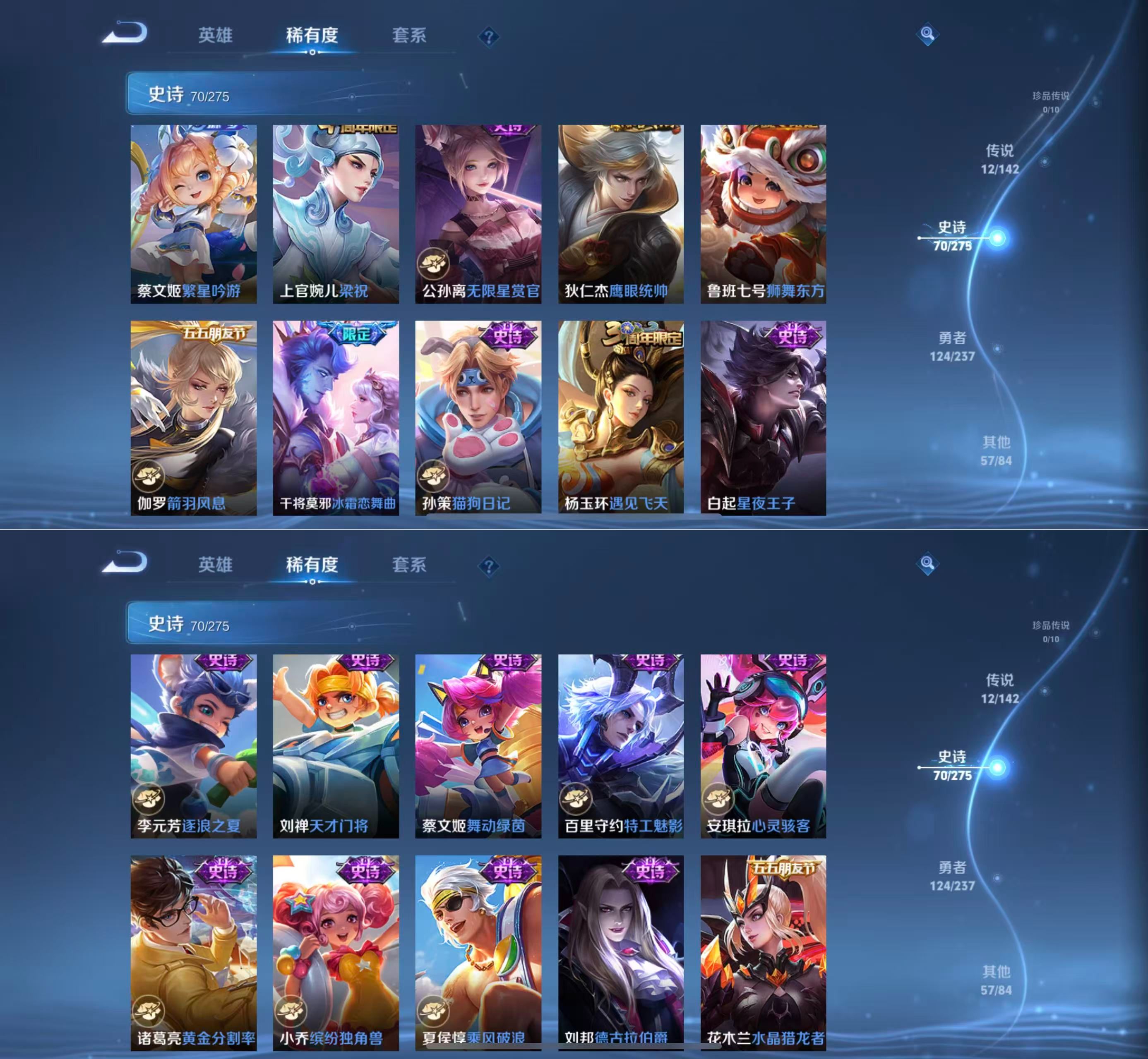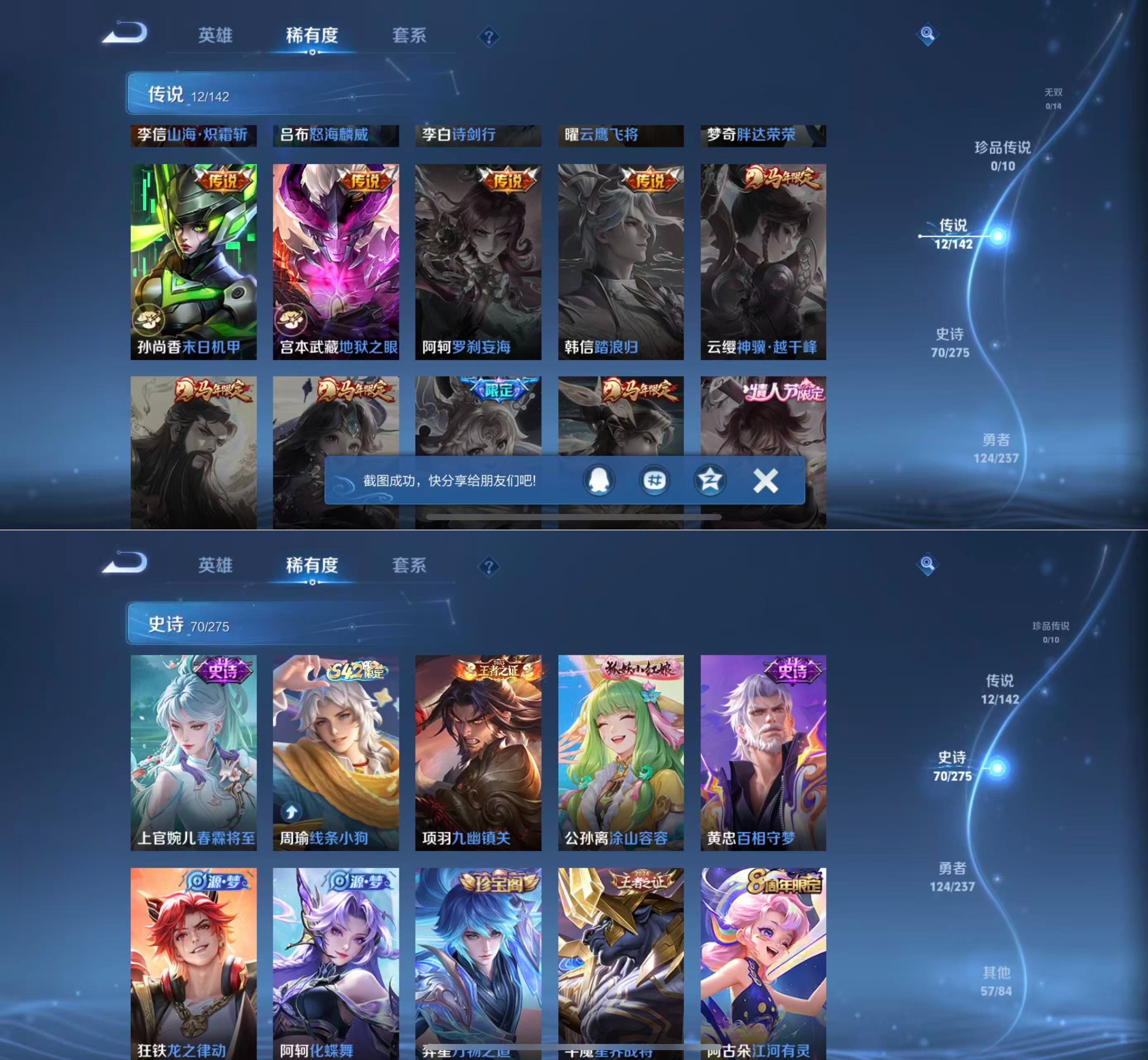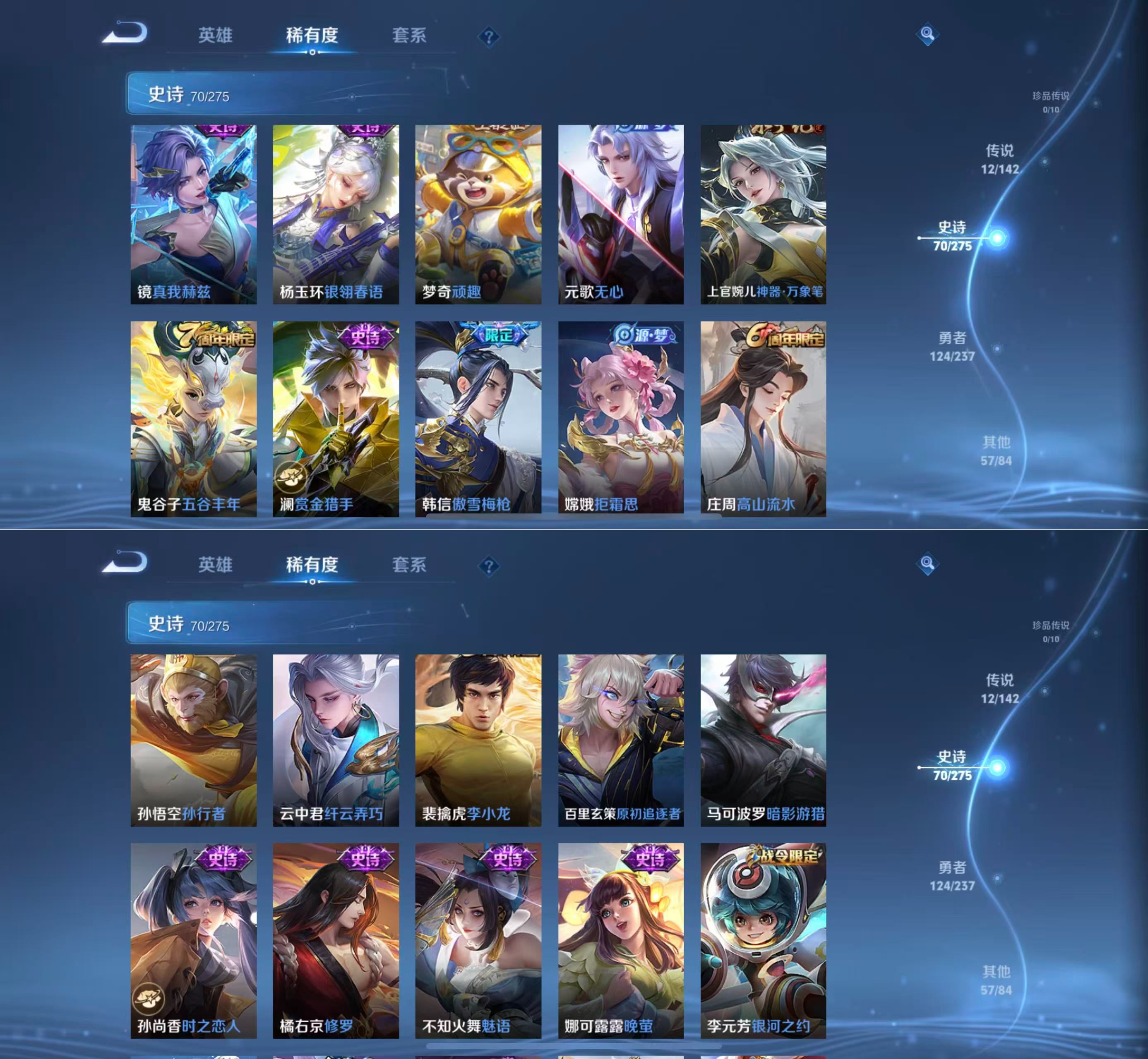 贵族等级:v7皮肤数:263传说品质12 生肖限定2 英雄数:127