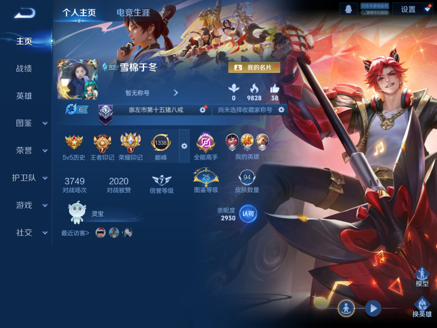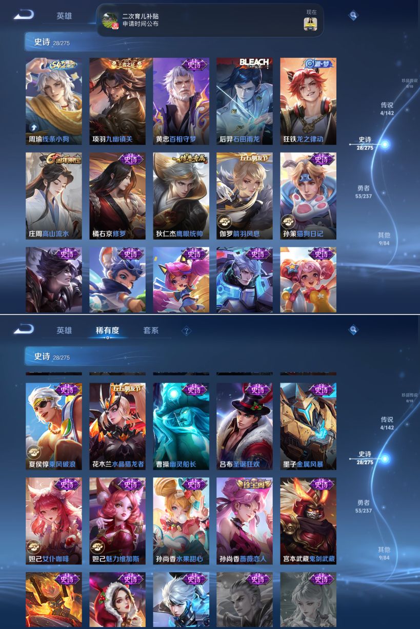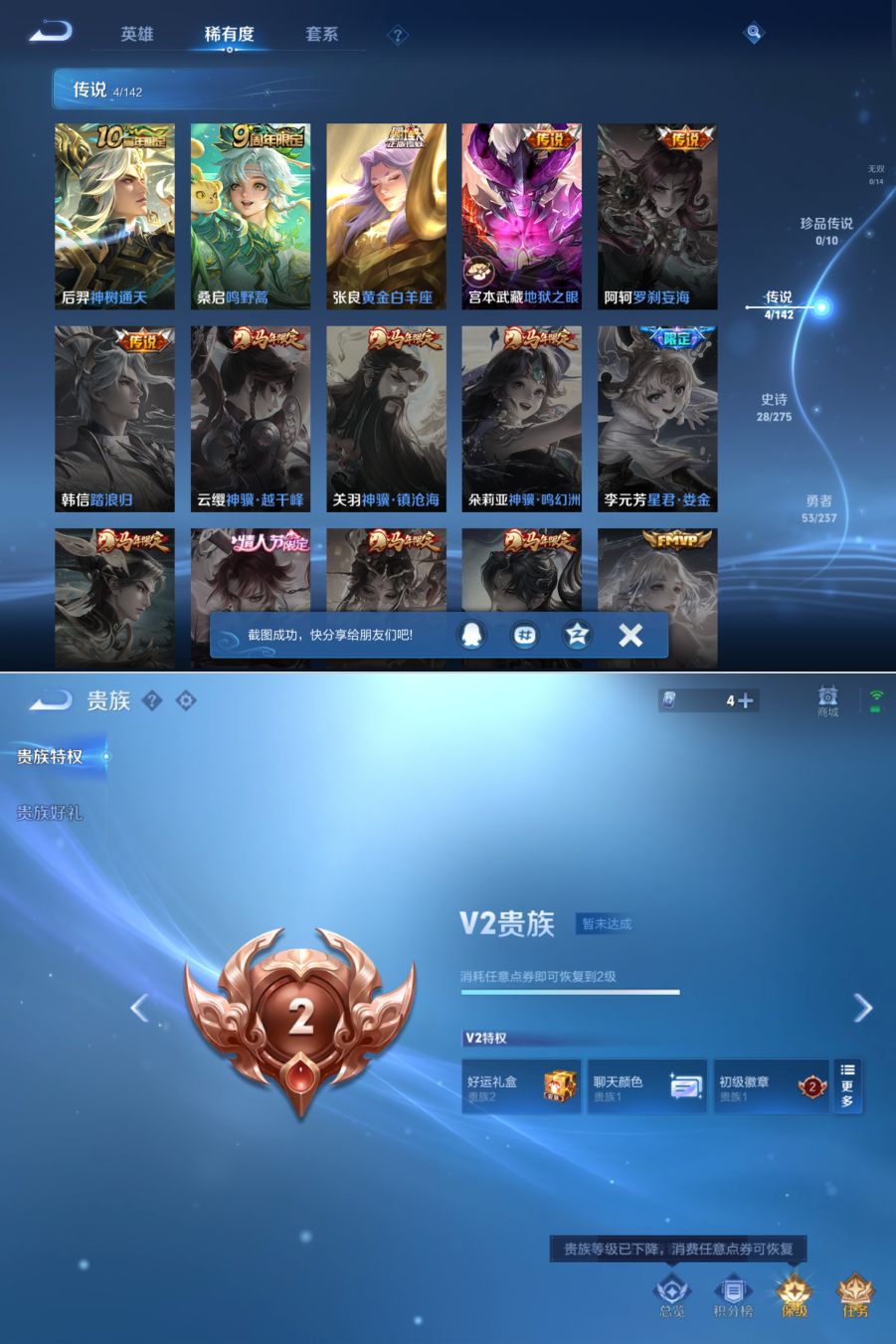 贵族等级:v2皮肤数:94传说品质4 英雄数:126
