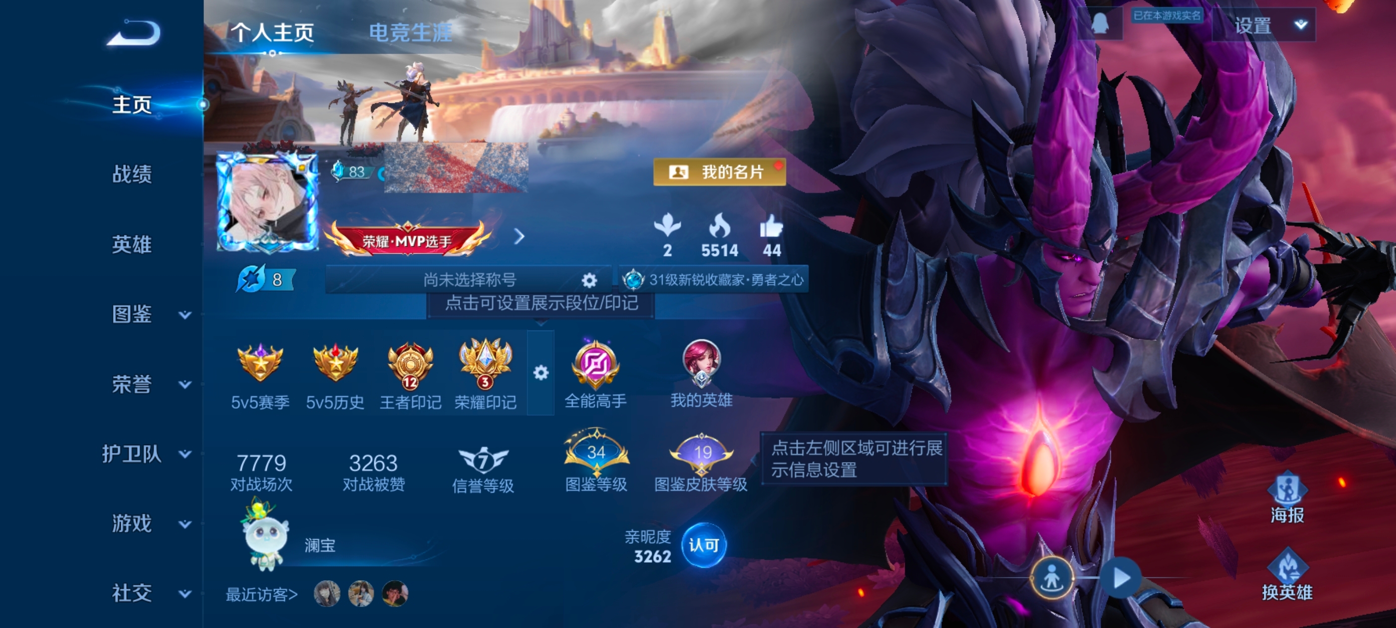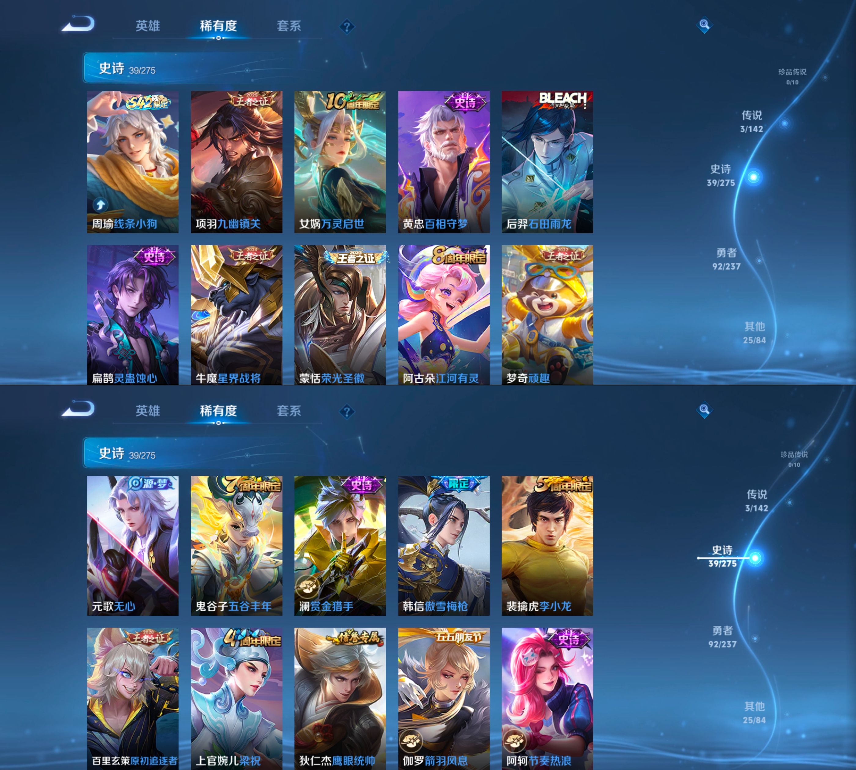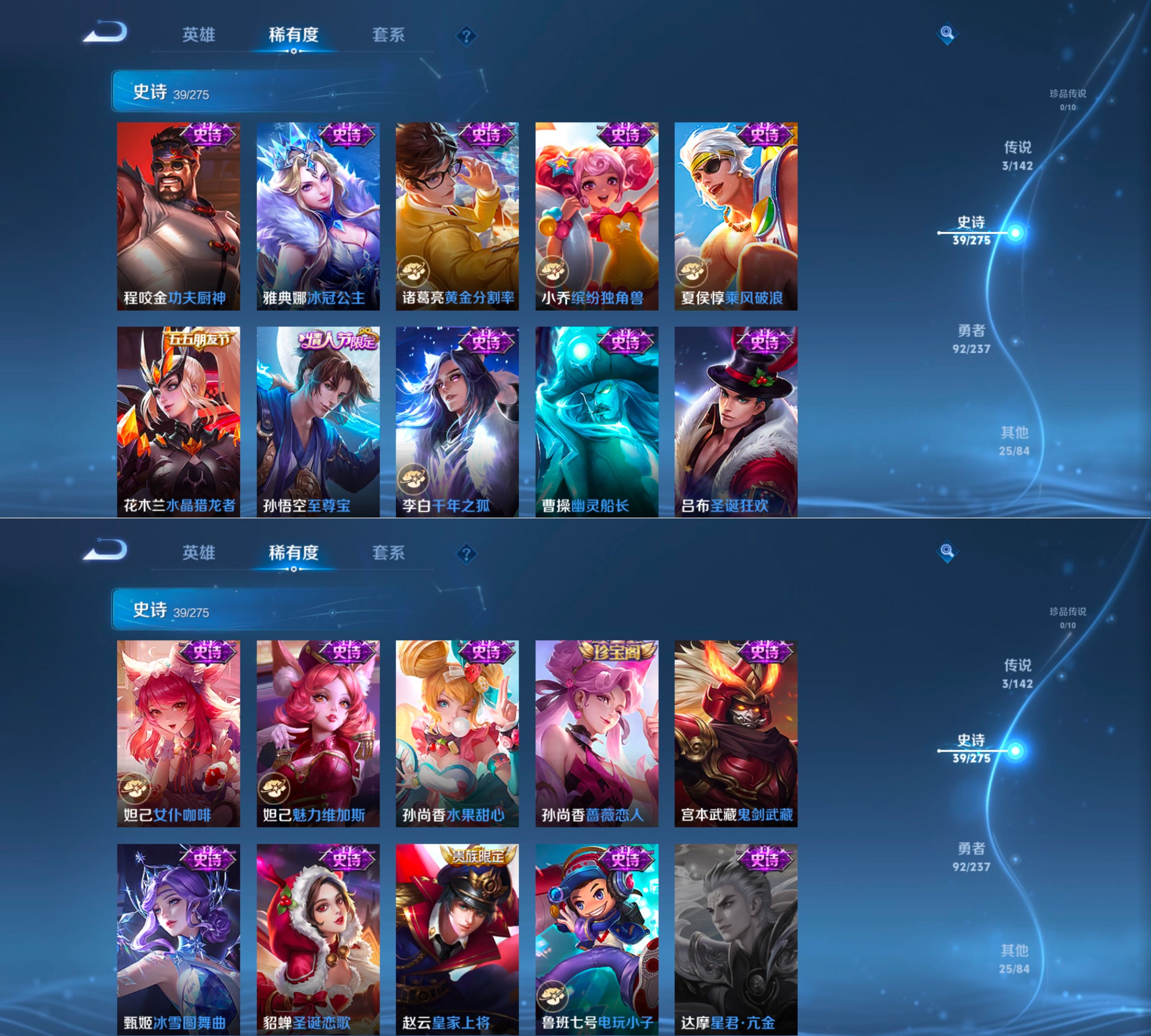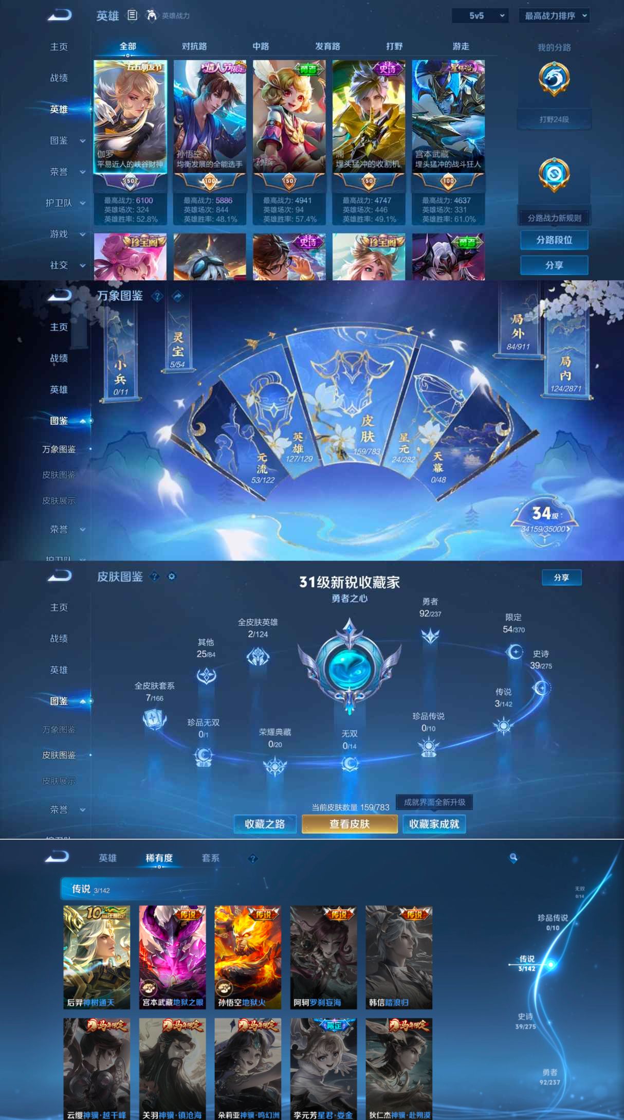 贵族等级:v5皮肤数:159传说品质3 情人节限定1 英雄数:127