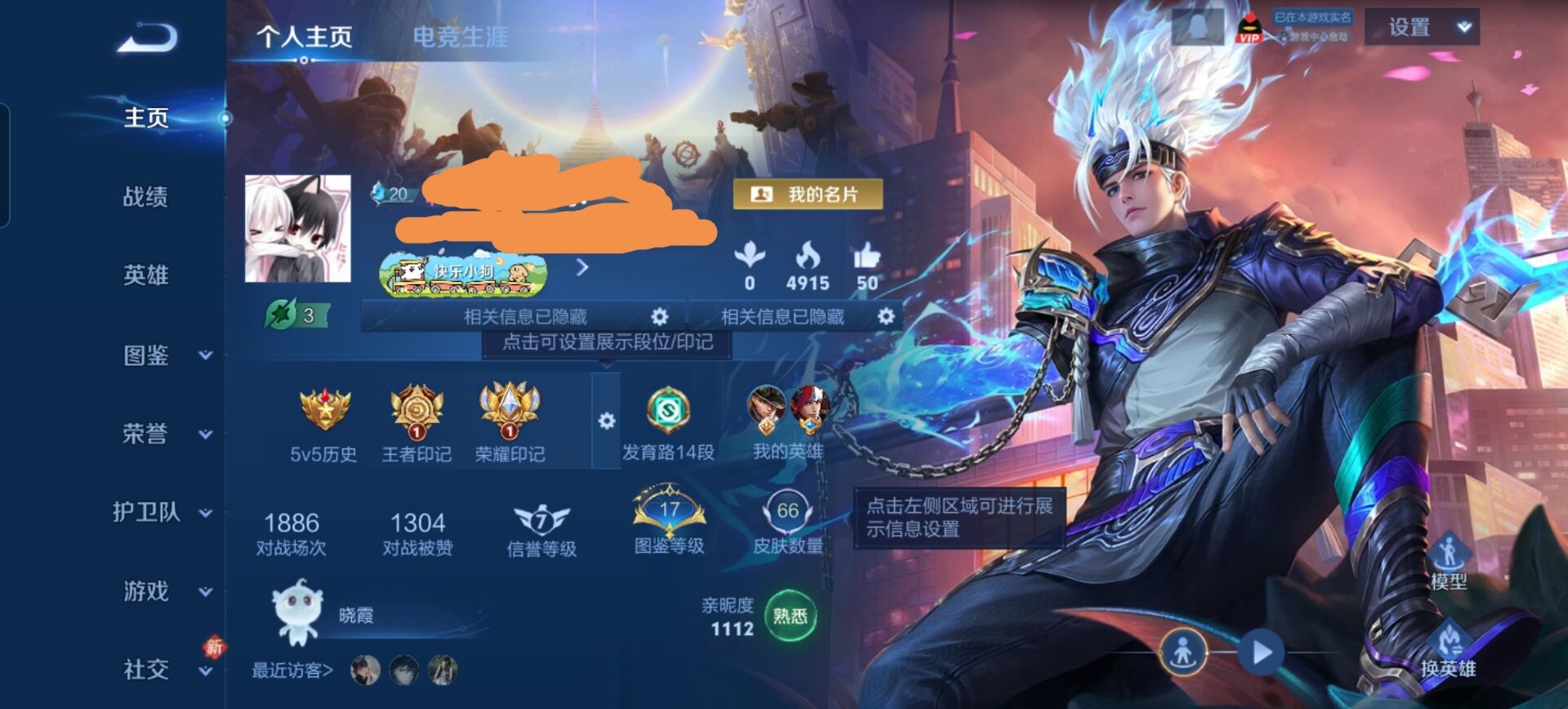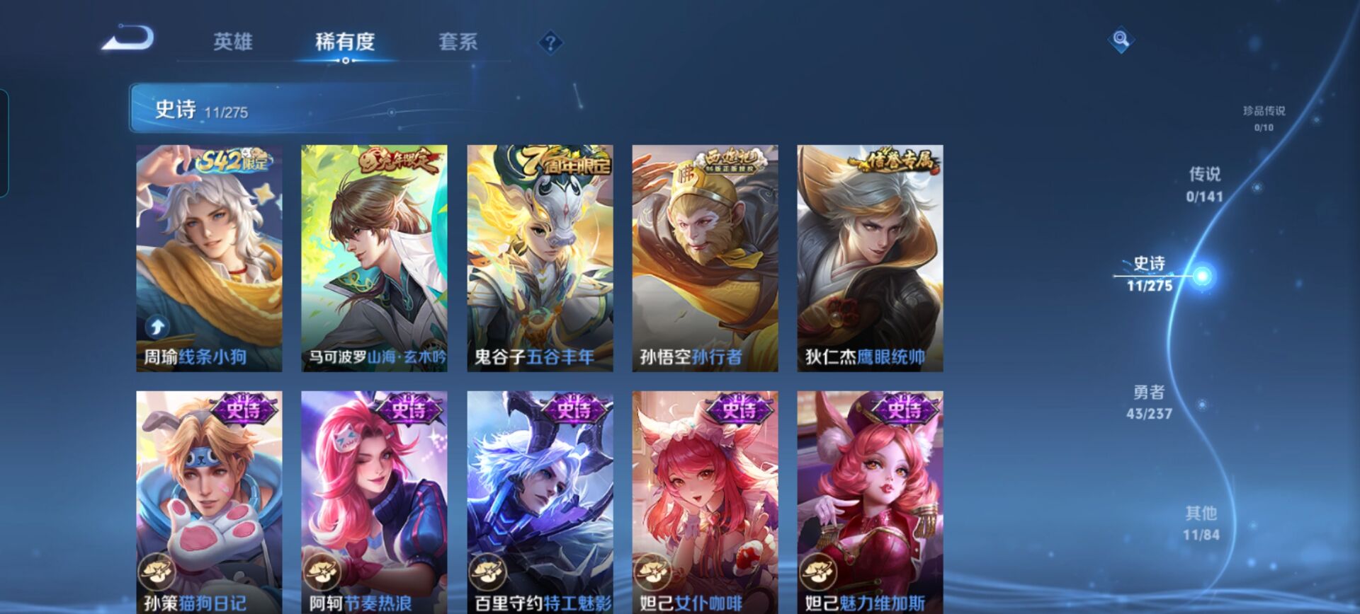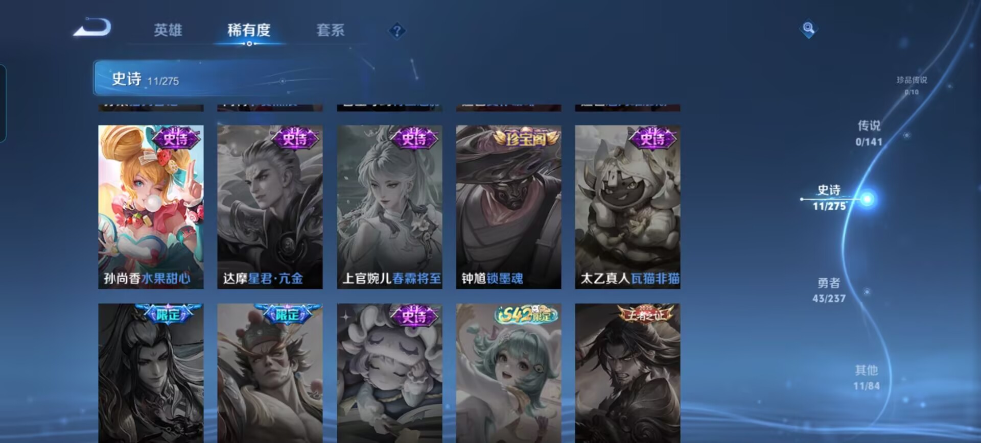 贵族等级:v4皮肤数:66生肖限定1 荣耀典藏1 英雄数:109