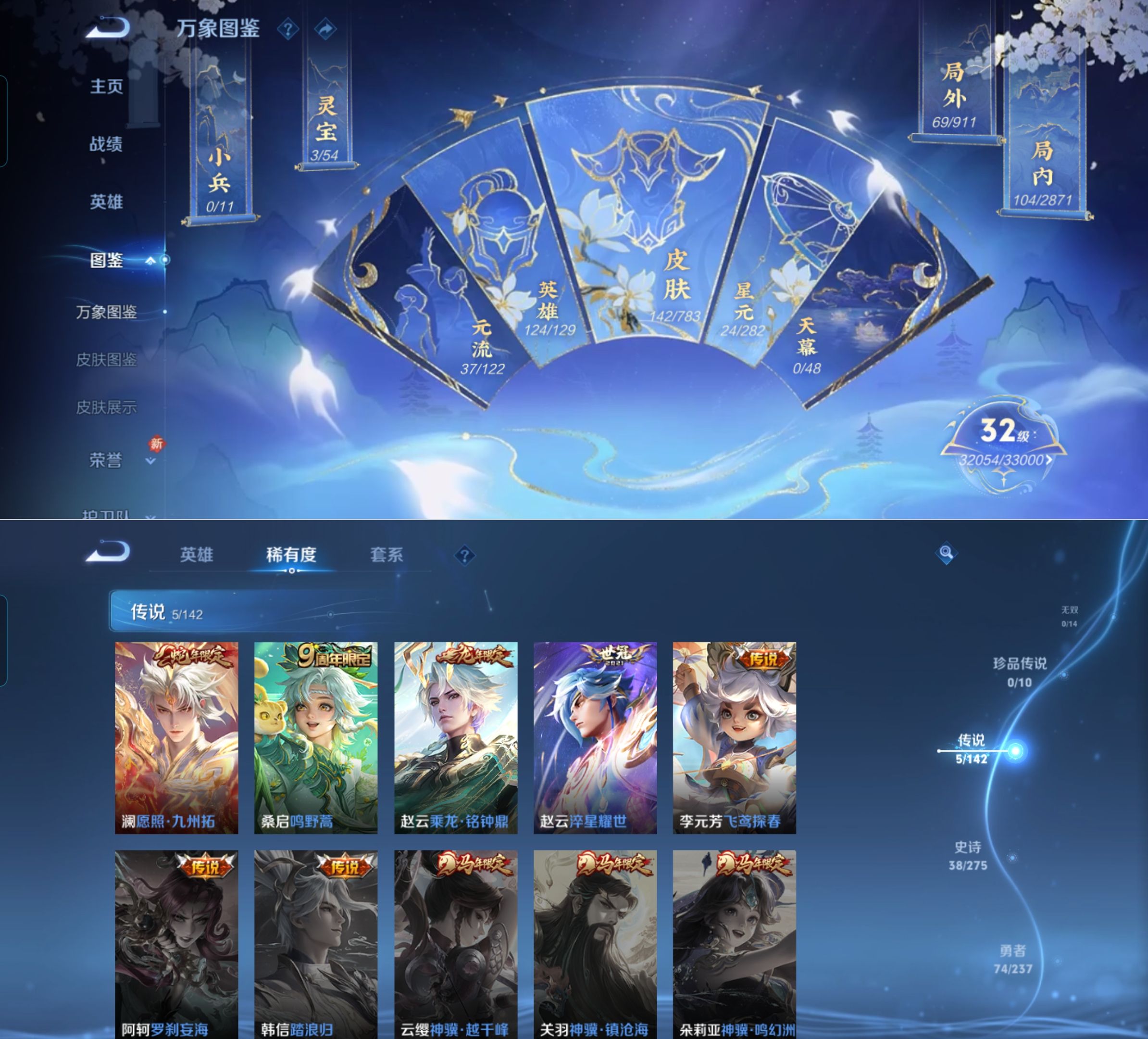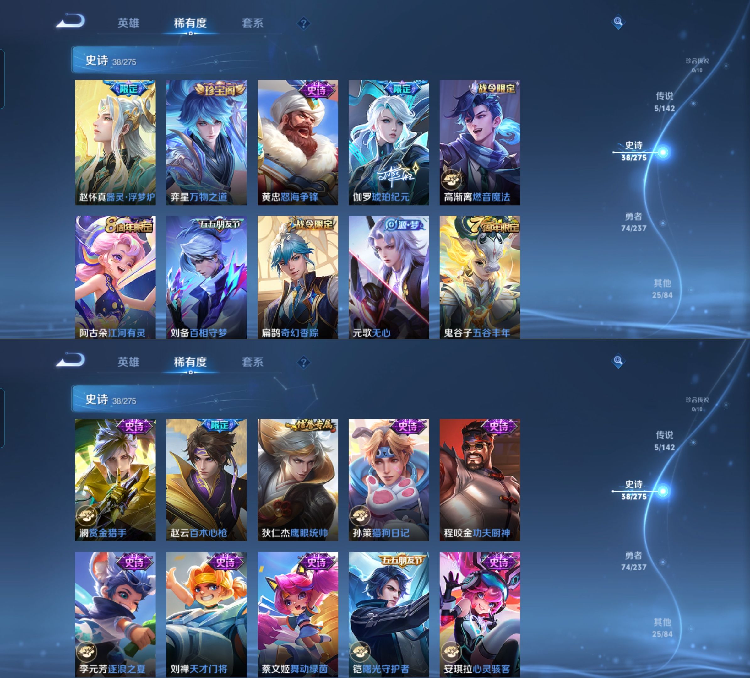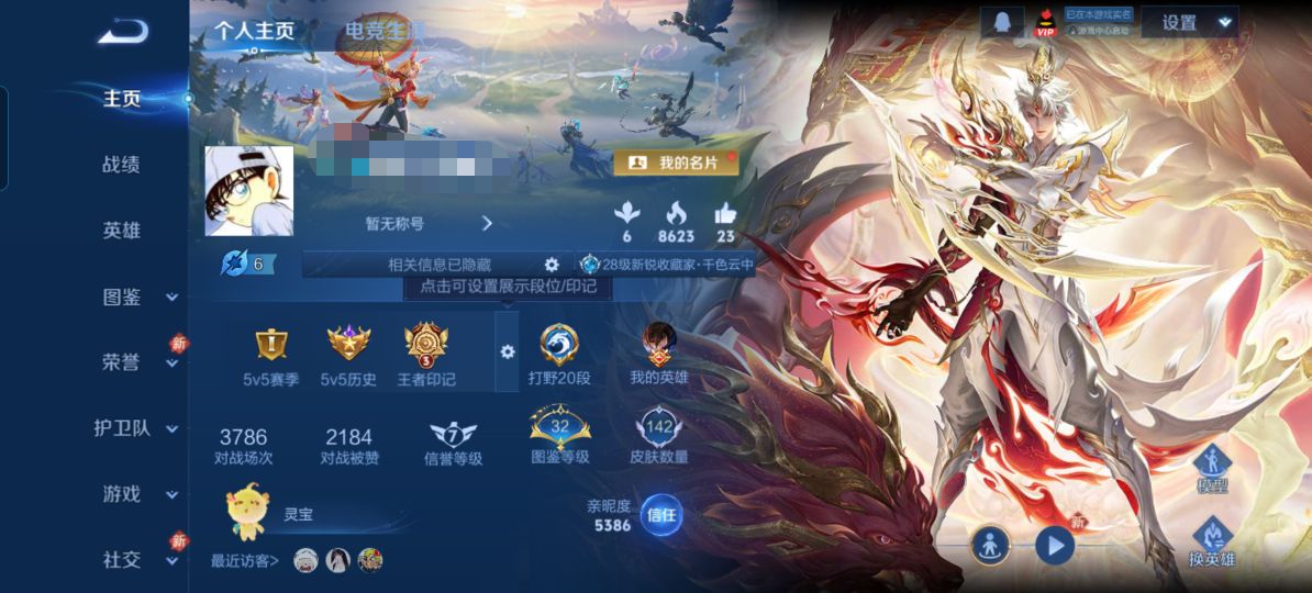 贵族等级:v7皮肤数:142传说品质5 生肖限定2 英雄数:124