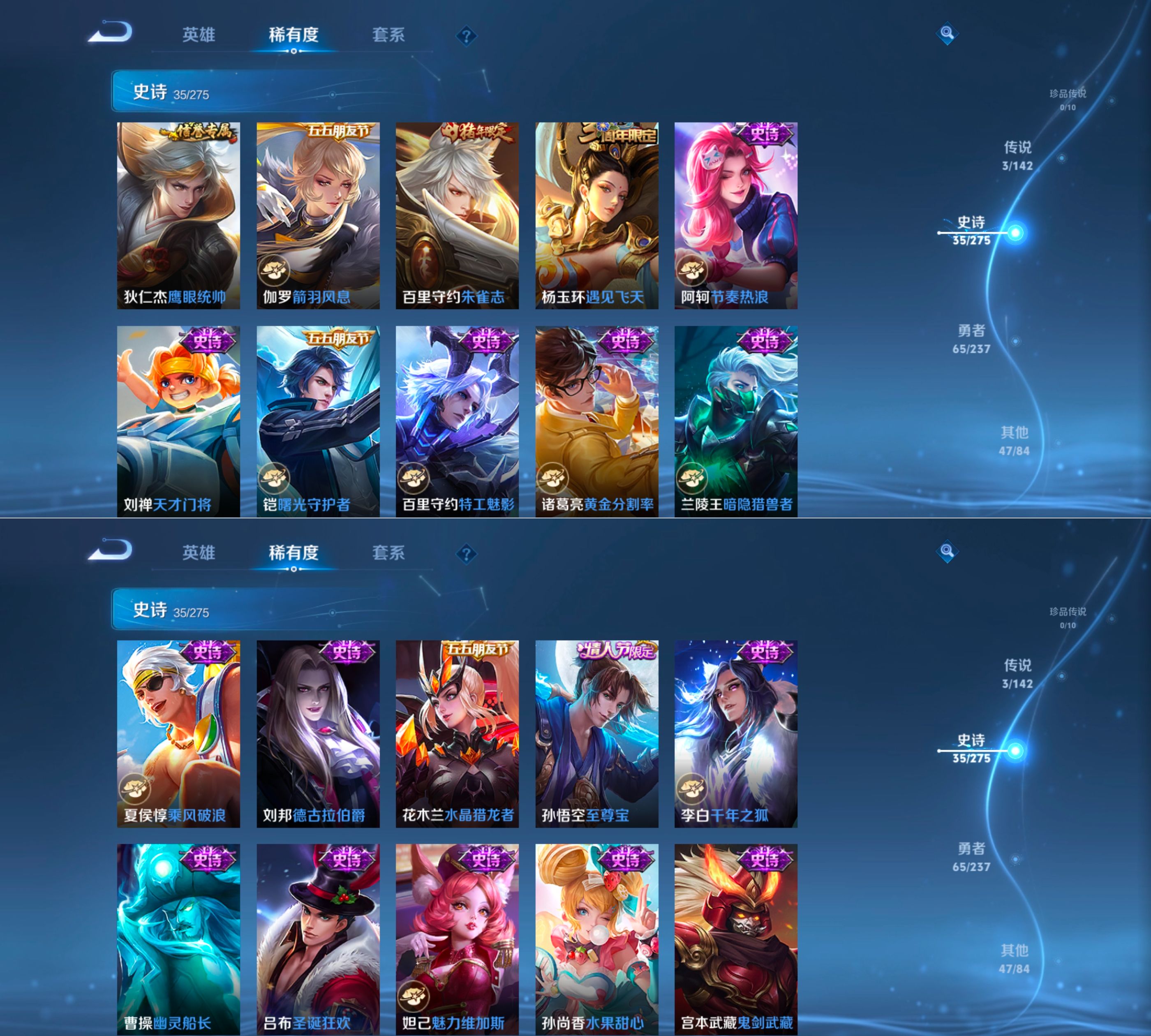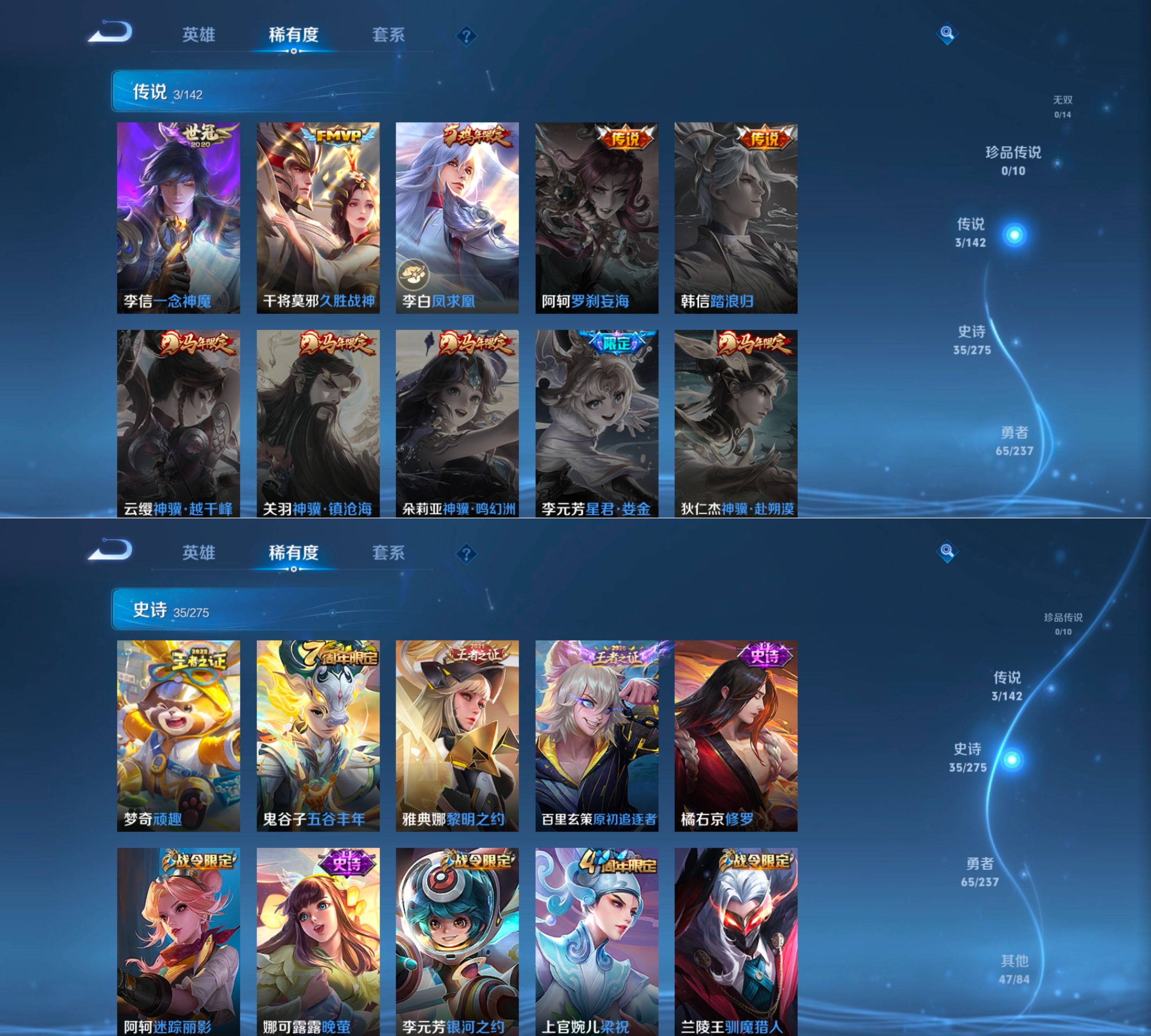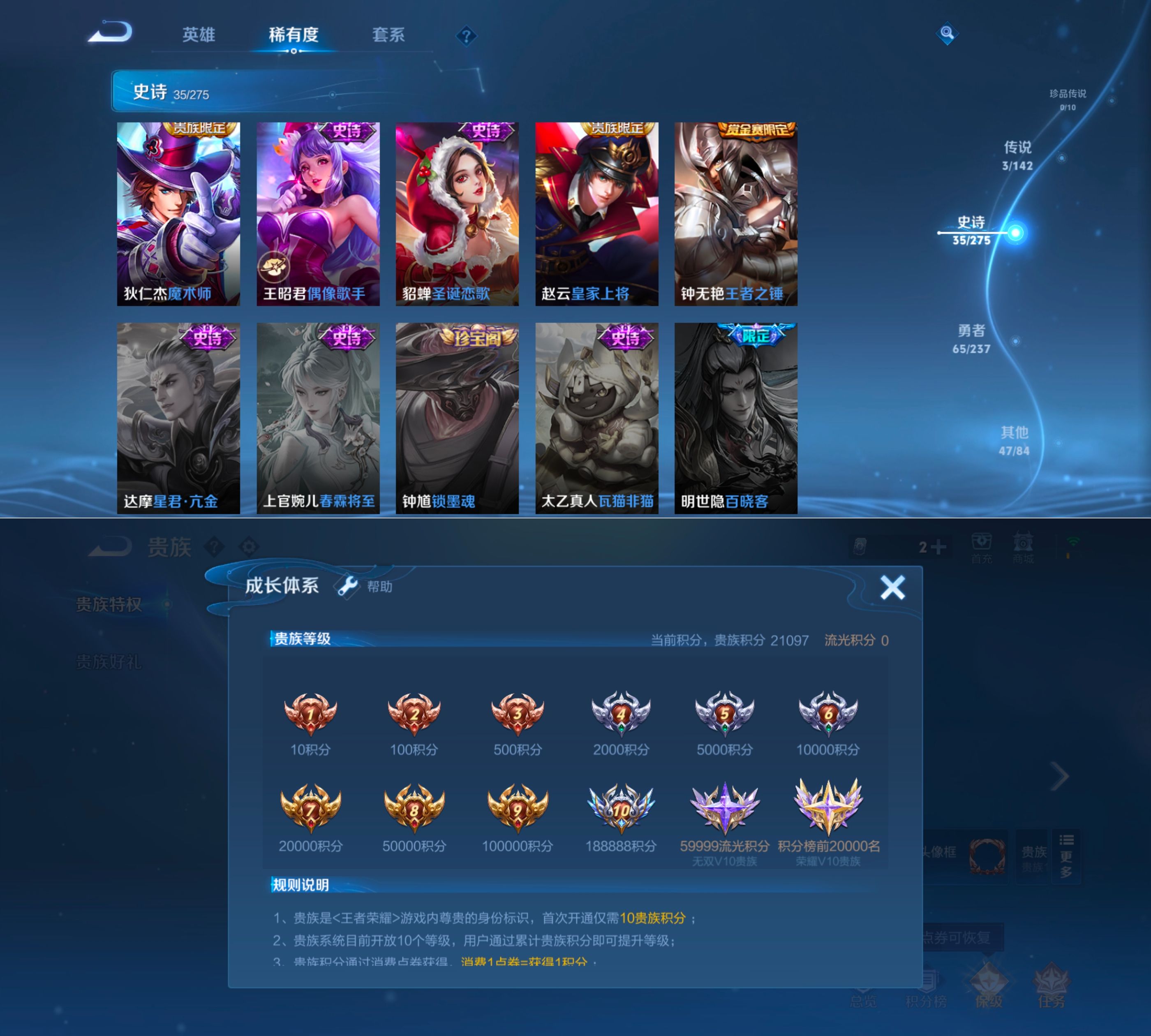 贵族等级:v7皮肤数:150情人节限定1 传说品质3 生肖限定2 英雄数:123