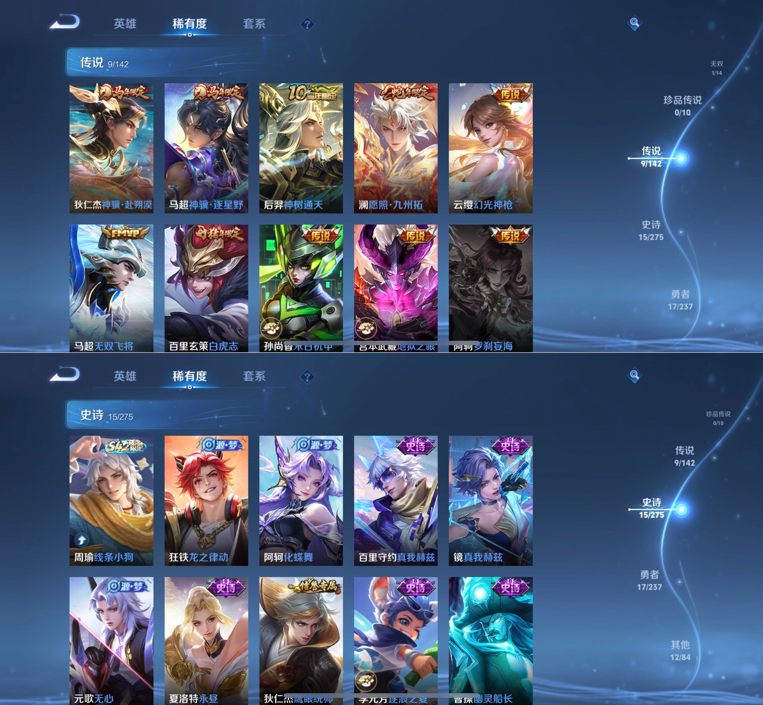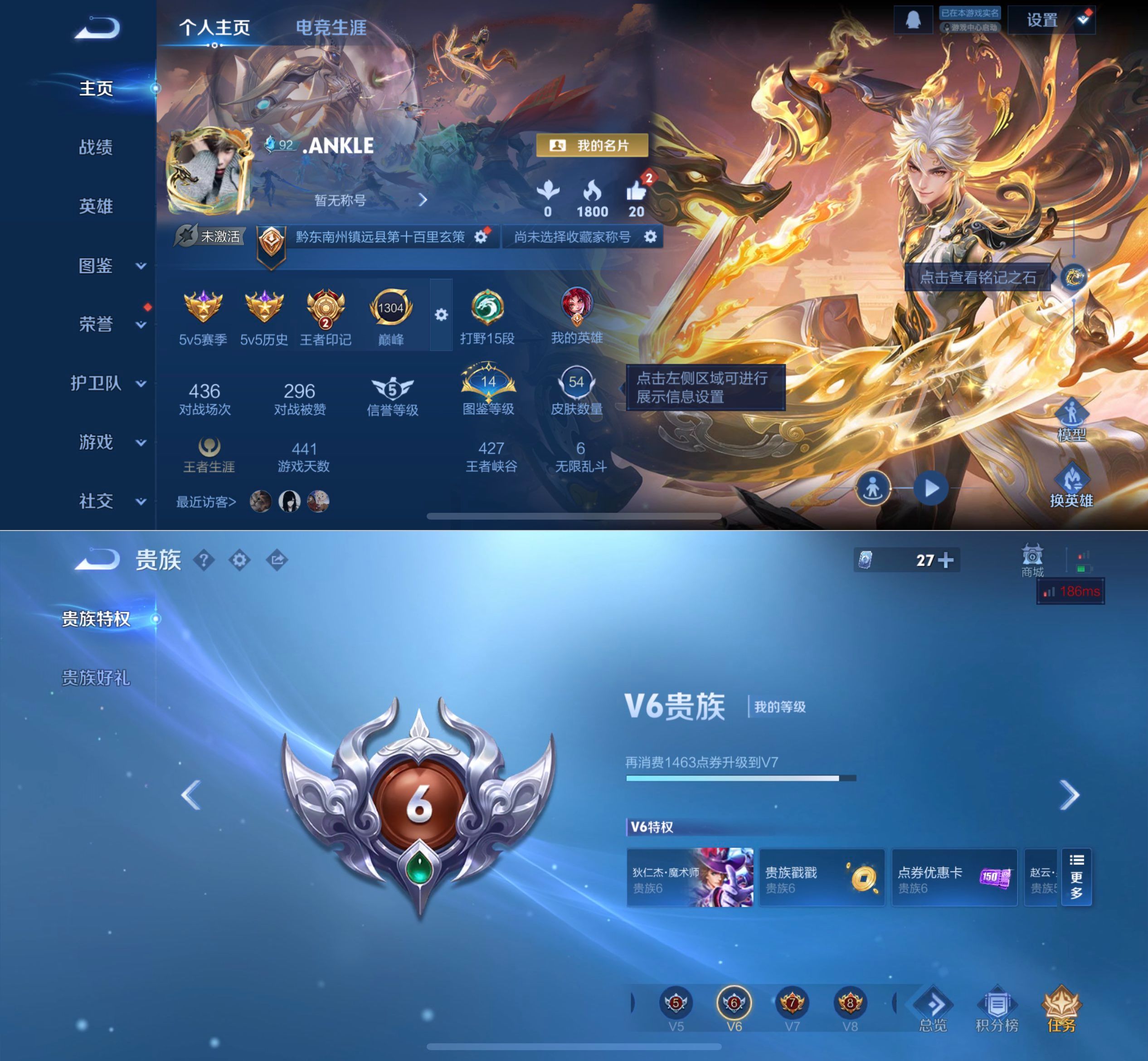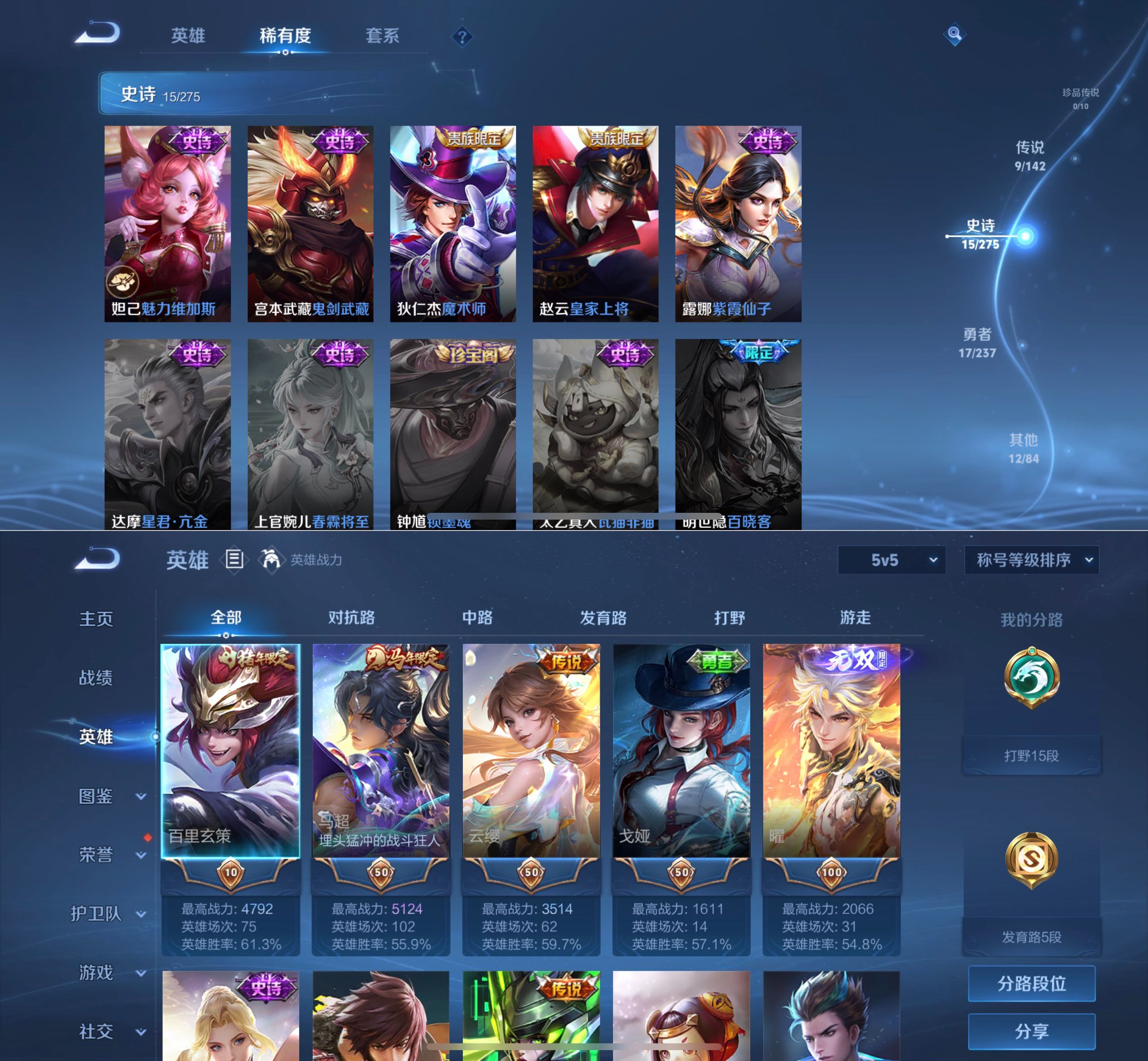 贵族等级:v6皮肤数:52传说品质2 英雄数:79
