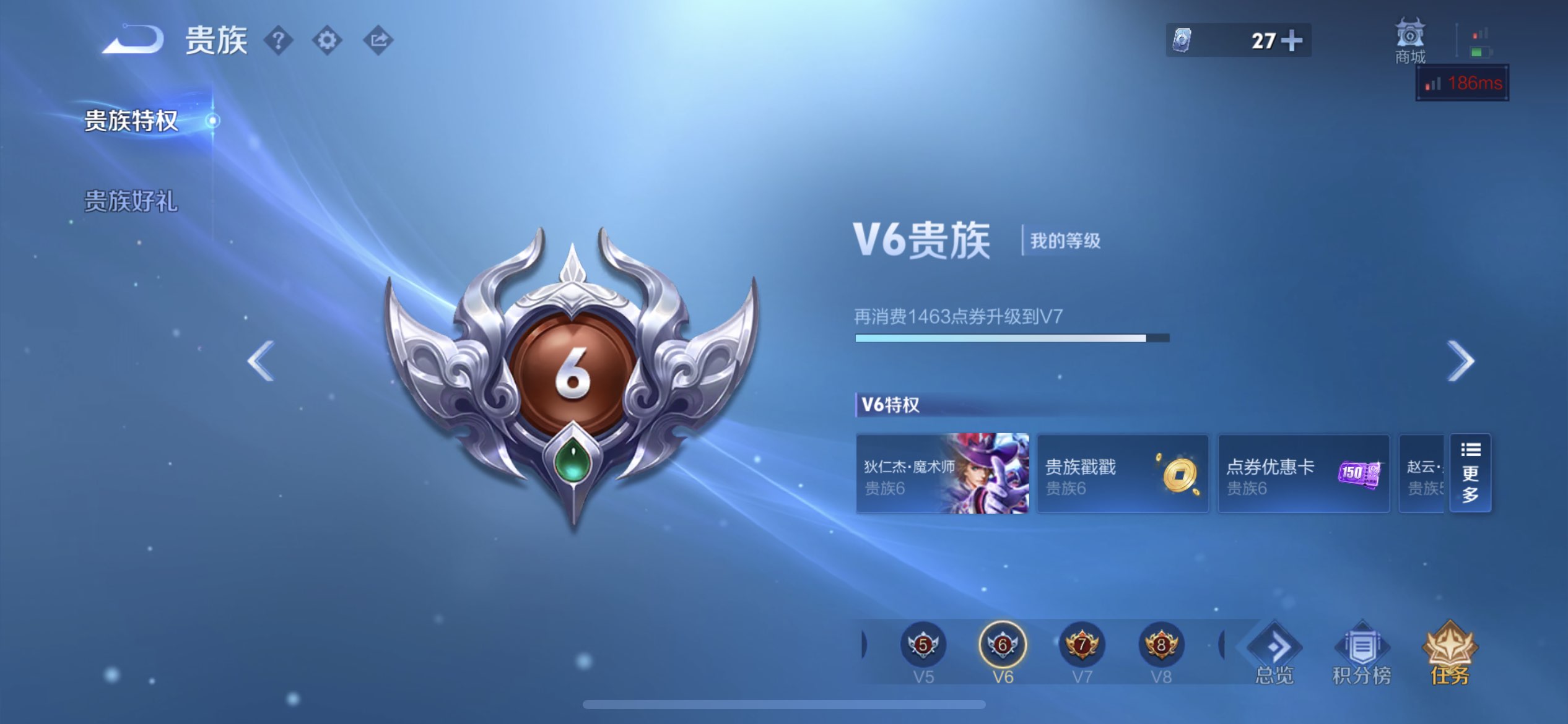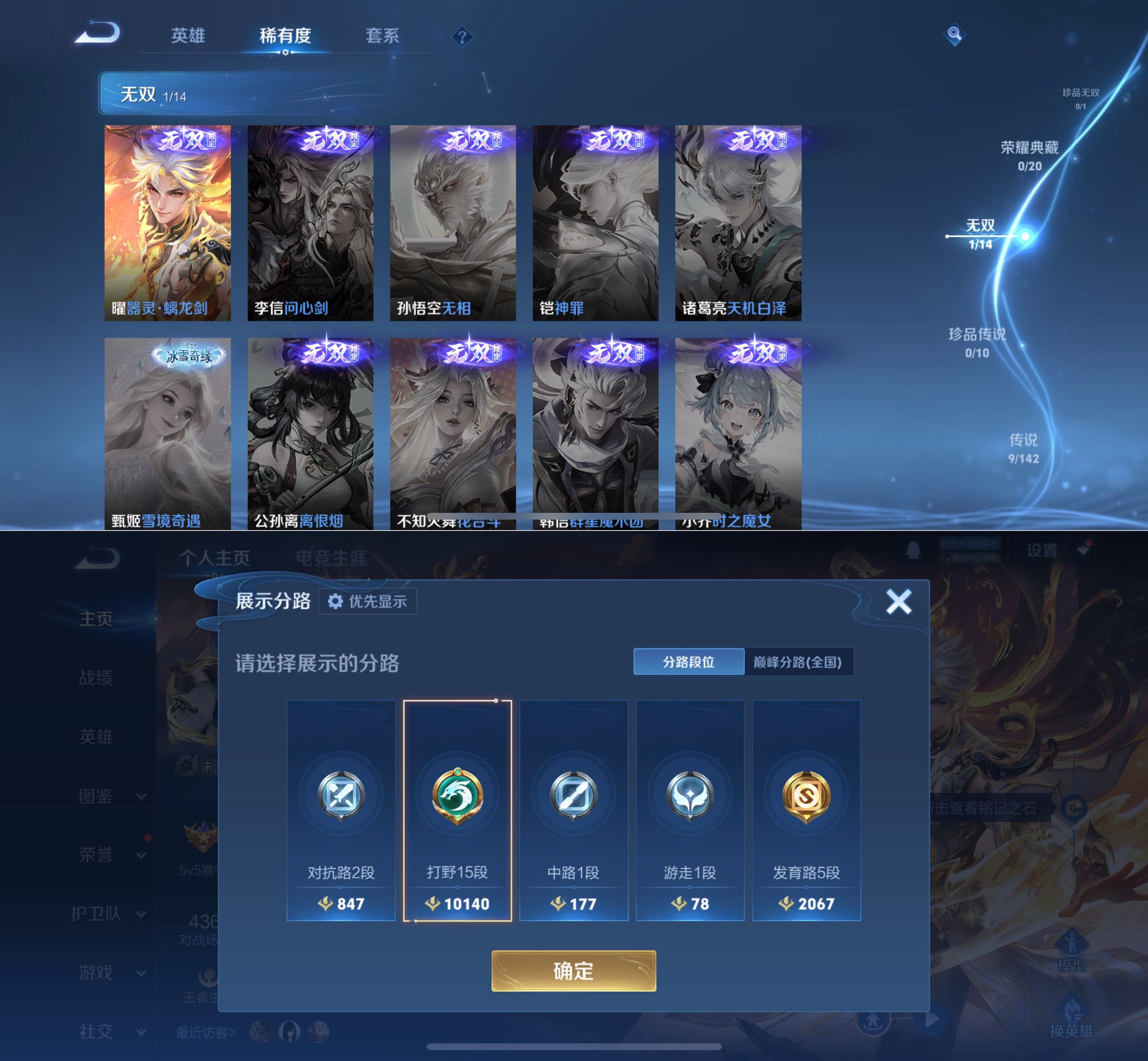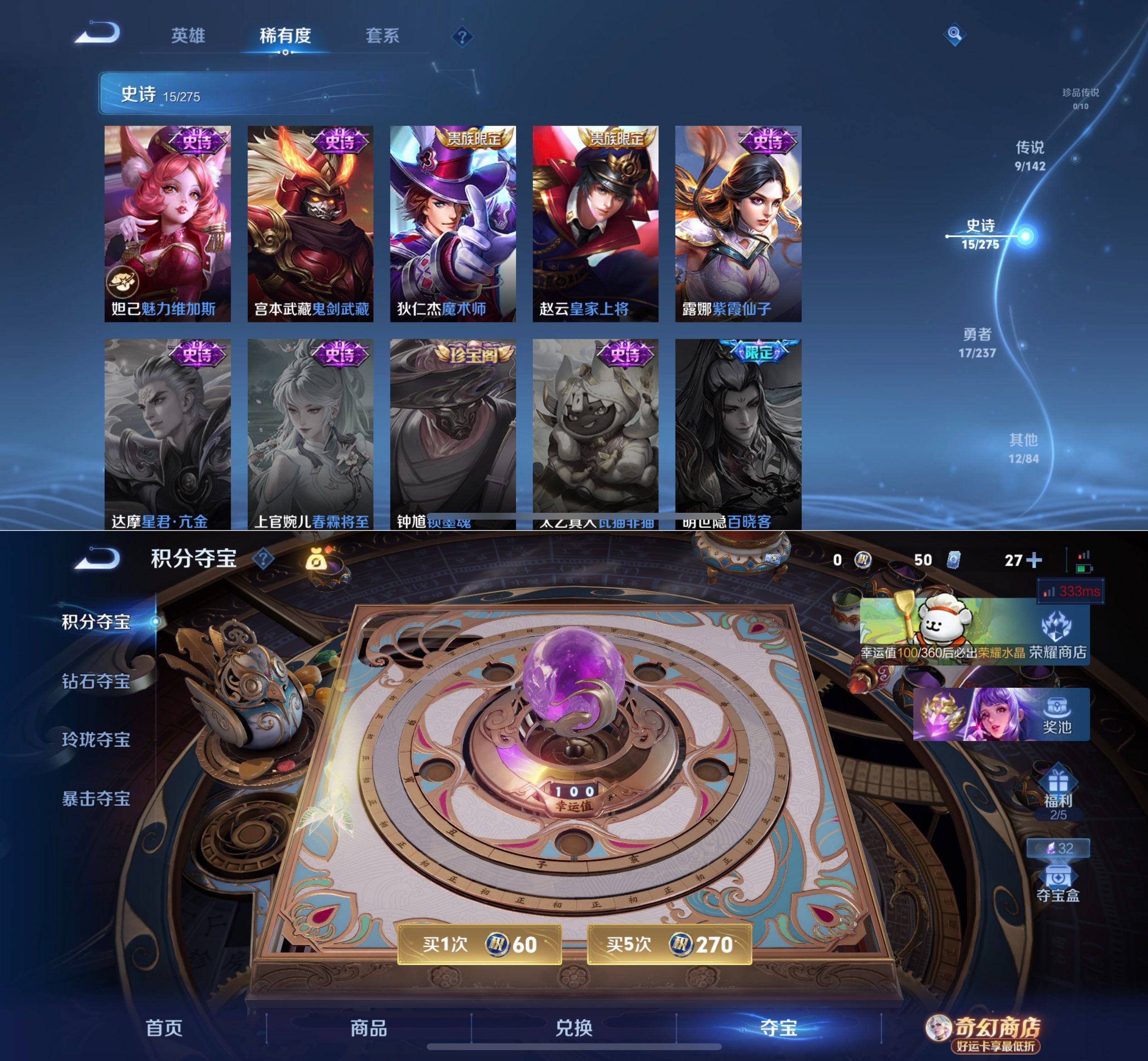贵族等级:v6皮肤数:52传说品质2 英雄数:79