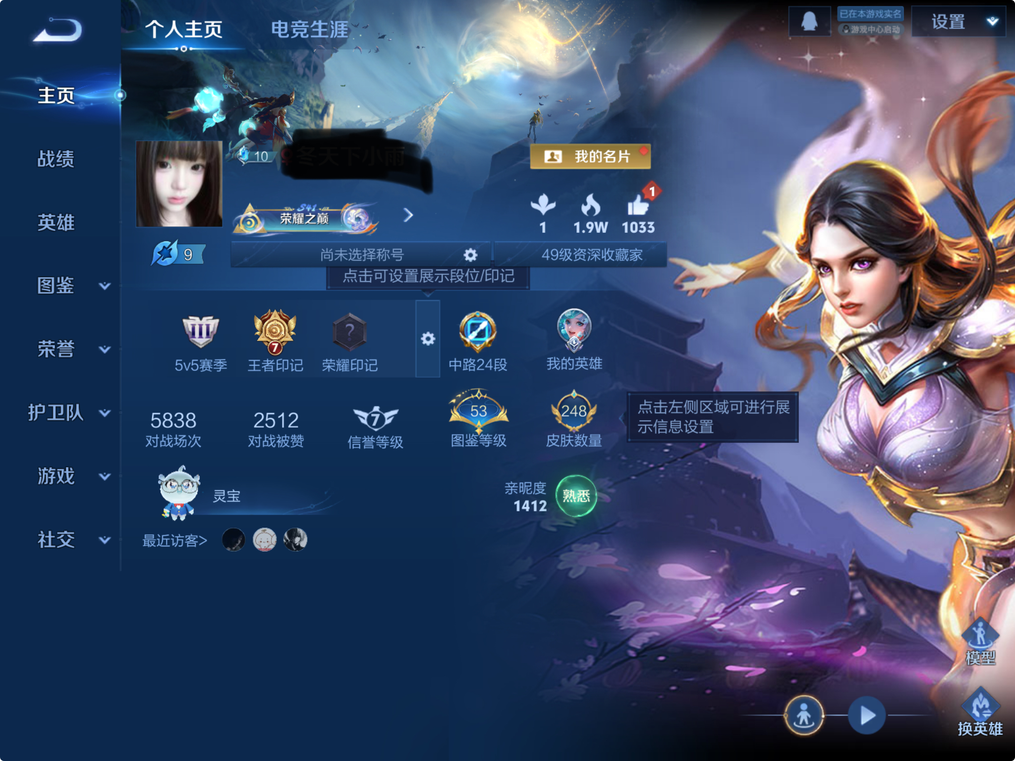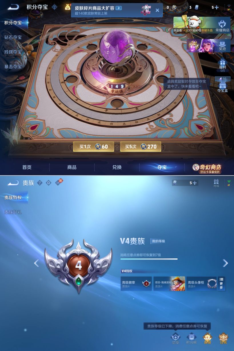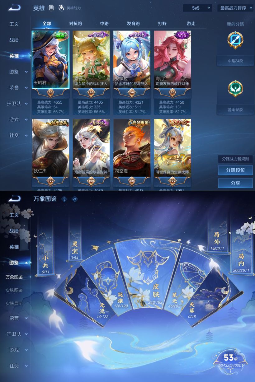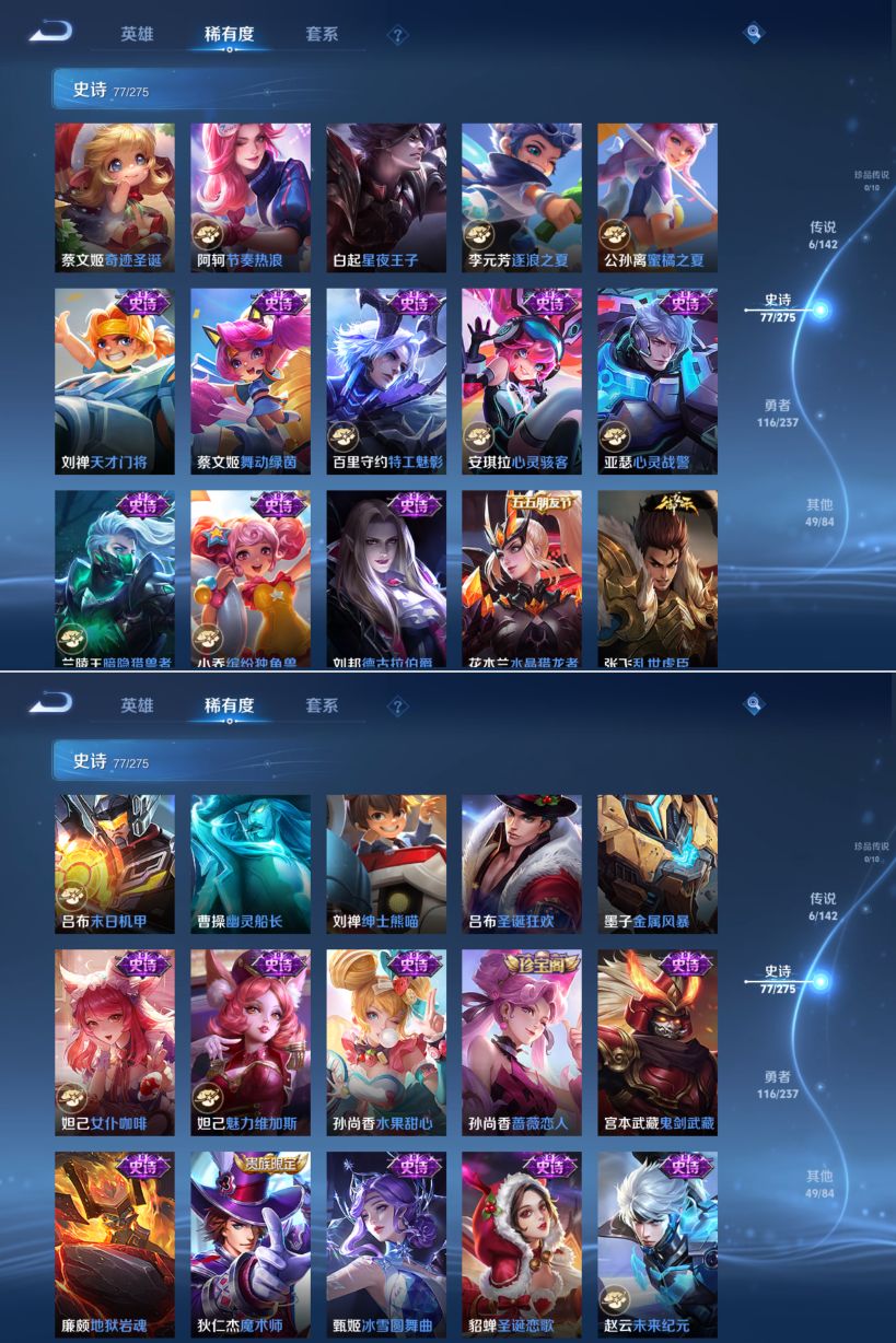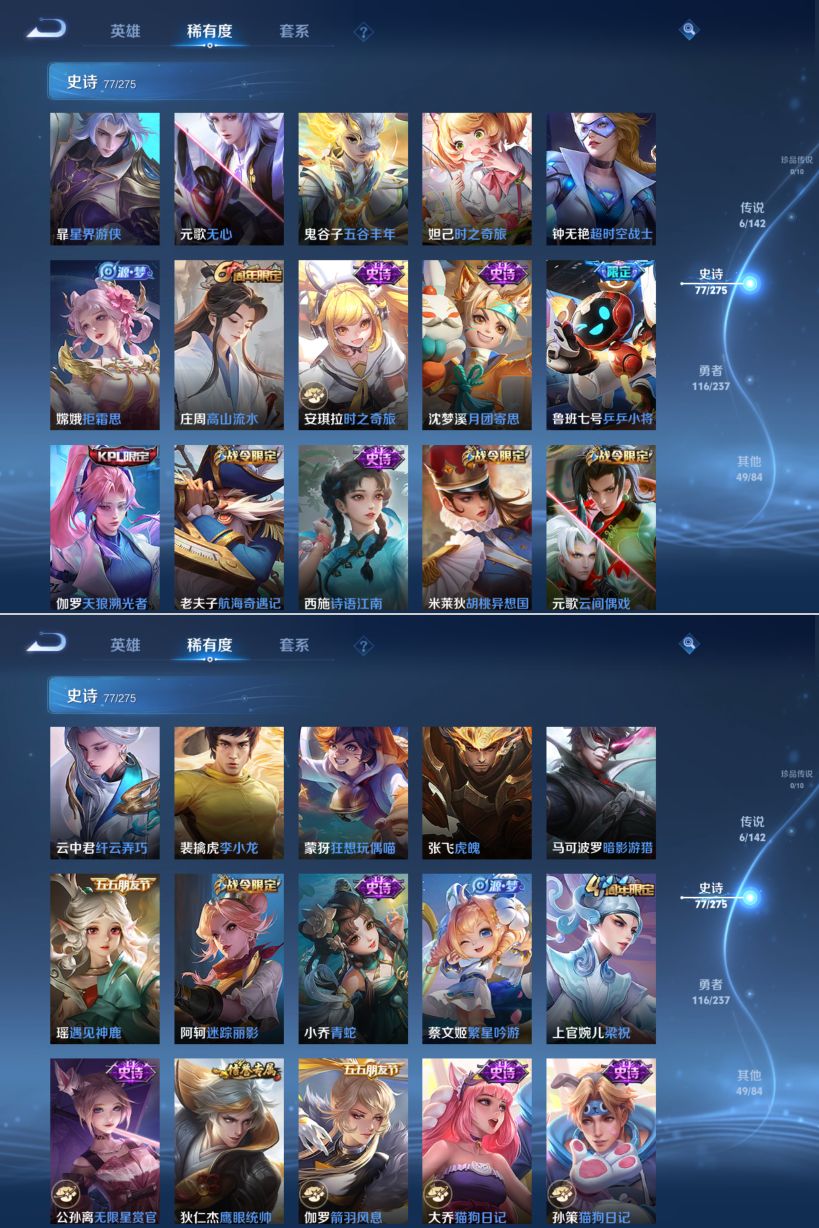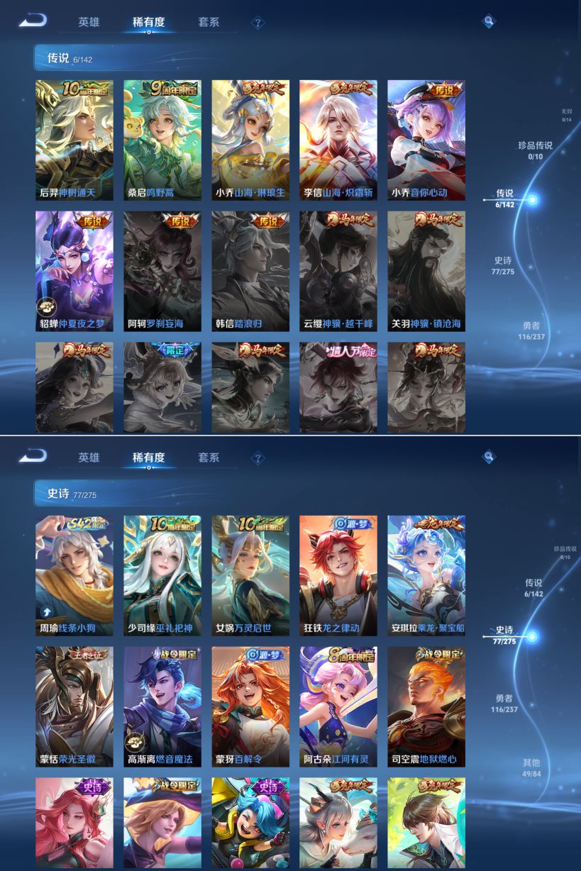 贵族等级:v7皮肤数:248传说品质6 生肖限定5 英雄数:126